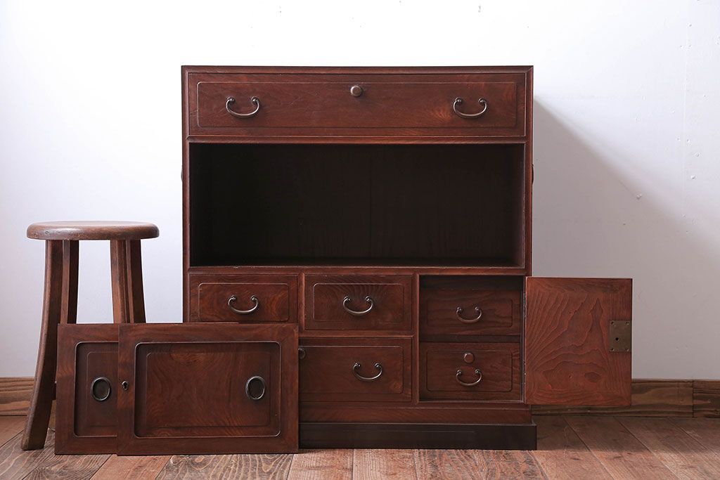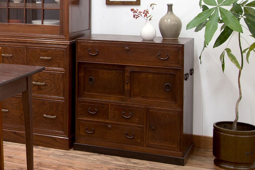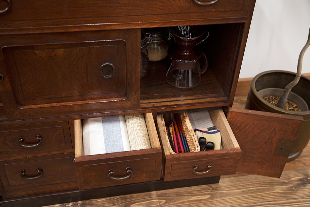 和箪笥> 小箪笥 > アンティーク家具 古民具・骨董 前面桑材、天板・側面エンジュ材、内部桐材!銅の金具の最高級小箪笥(桐箪笥、桐たんす)