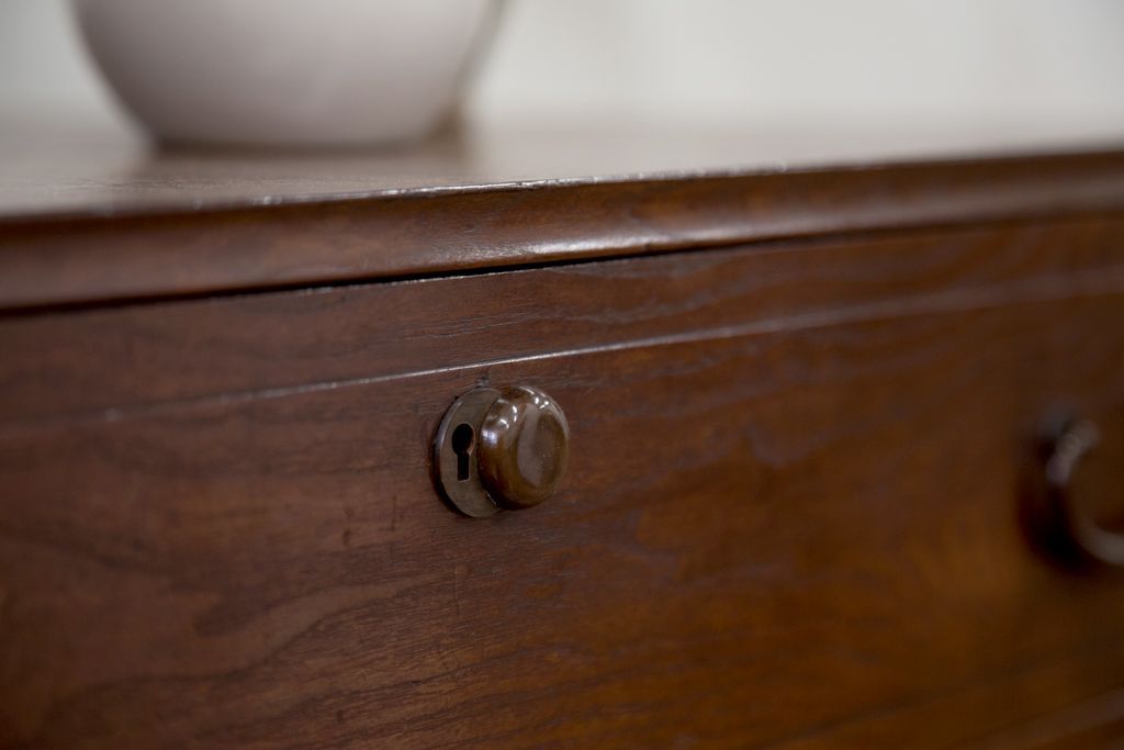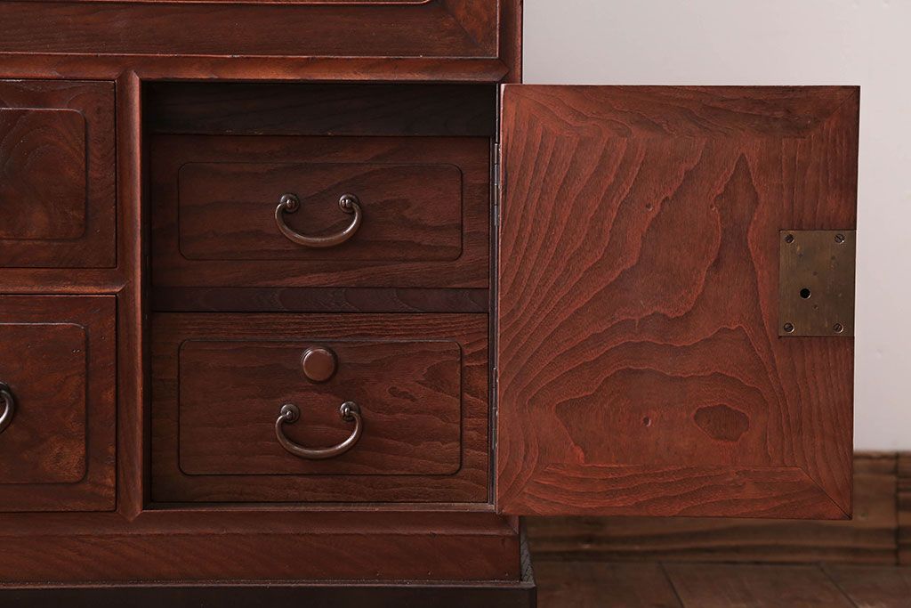 和箪笥 > アンティーク家具 古民具・骨董 前面桑材、天板・側面エンジュ材、内部桐材!銅の金具の最高級小箪笥(桐箪笥、桐たんす)