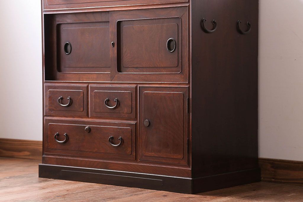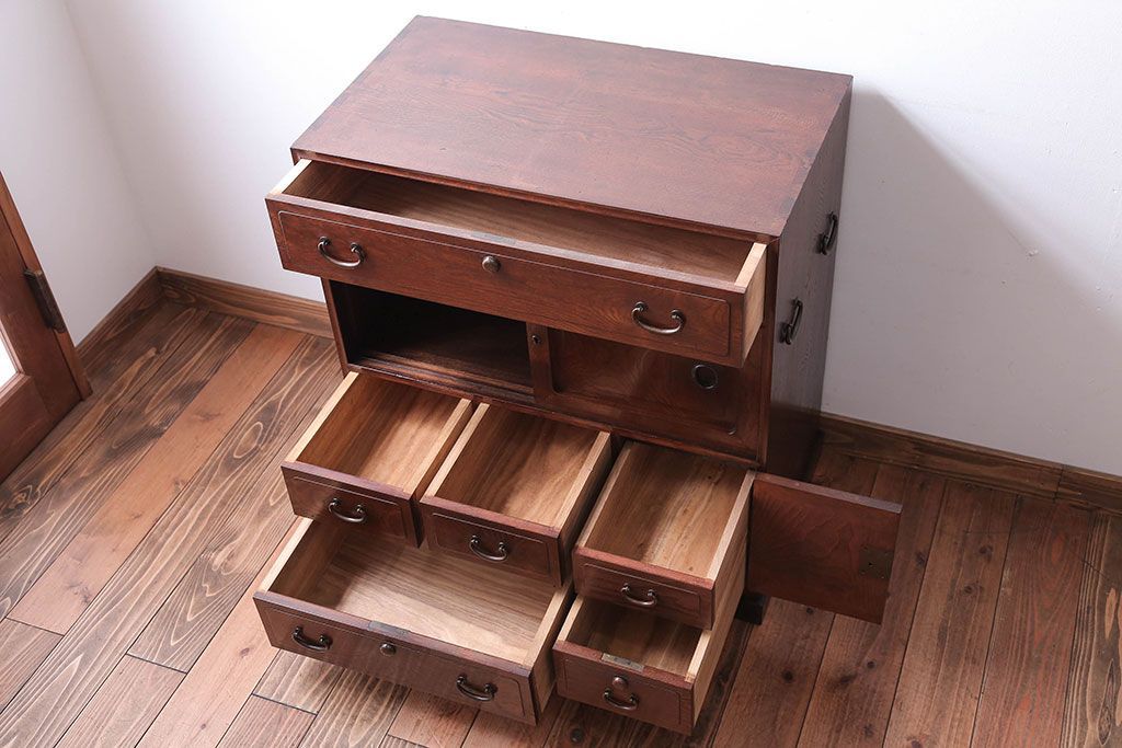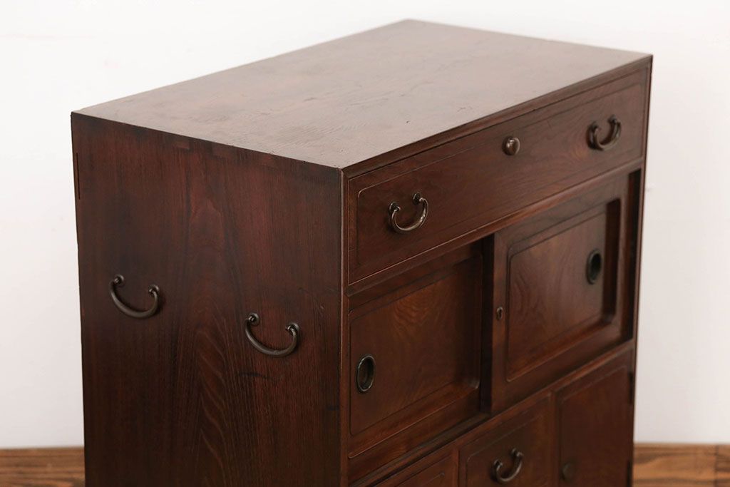和箪笥> 衣装箪笥 > アンティーク家具 古民具・骨董 前面桑材、天板・側面エンジュ材、内部桐材!銅の金具の最高級小箪笥(桐箪笥、桐たんす)