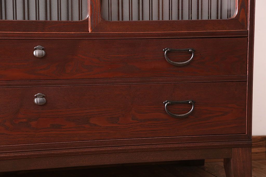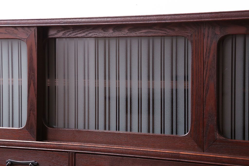 レトロ家具 アンティーク レトロガラスがかわいいシンプルで上品な脚付きローボード