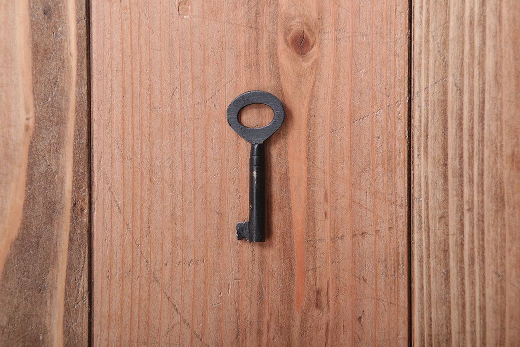 鍵は付属します。画像にありますように、袋に入れお付けします。スムーズに動くように調整していますが、あくまでも古いものや中古品ですので、長期の使用保証は出来かねます。ご購入後不具合が発生した場合は、当店でサポートさせていただきますので、お気軽にご相談くださいませ。