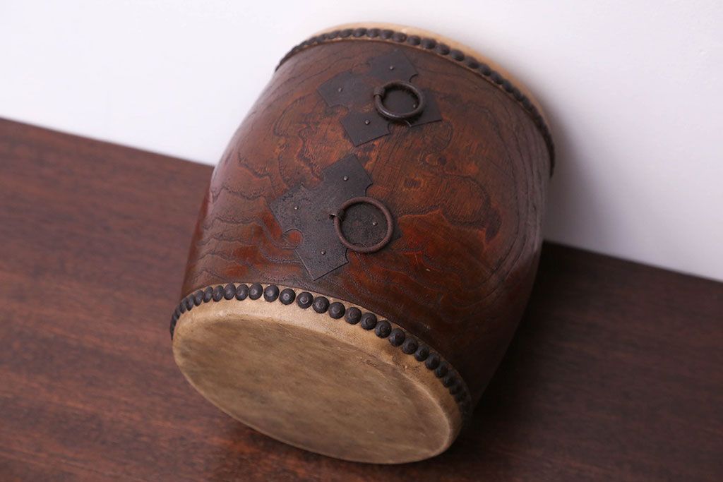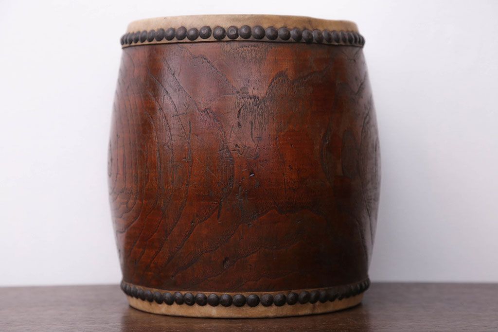 ラフジュ工房> 骨董・美術品 > アンティーク雑貨 古民具・骨董 古い欅材の小さなアンティーク太鼓