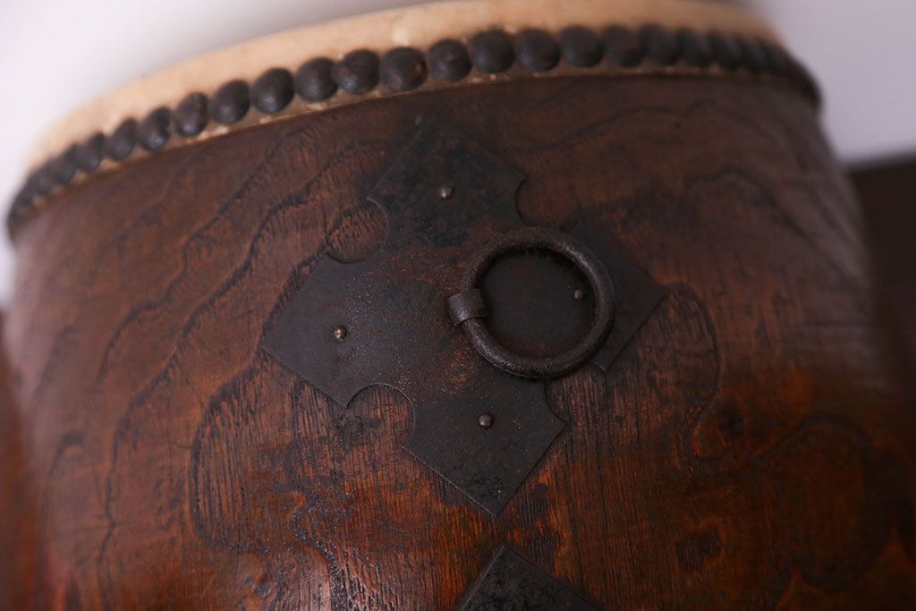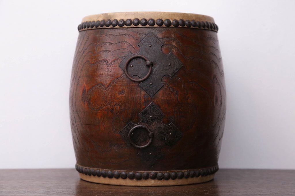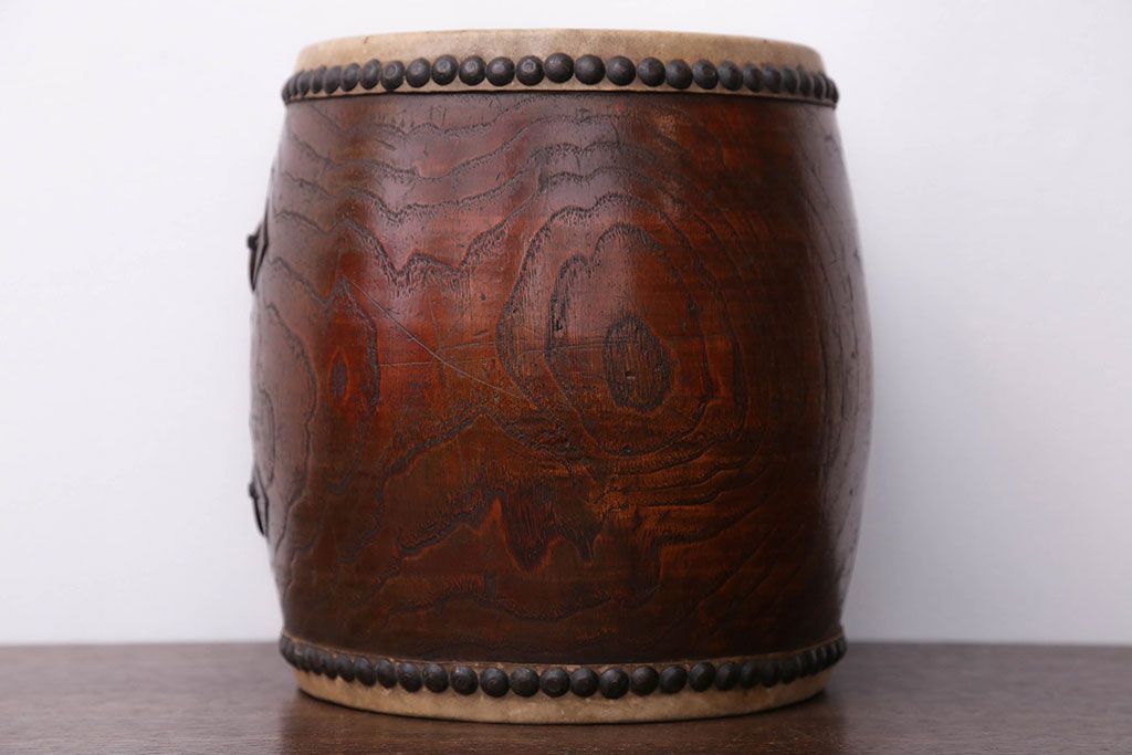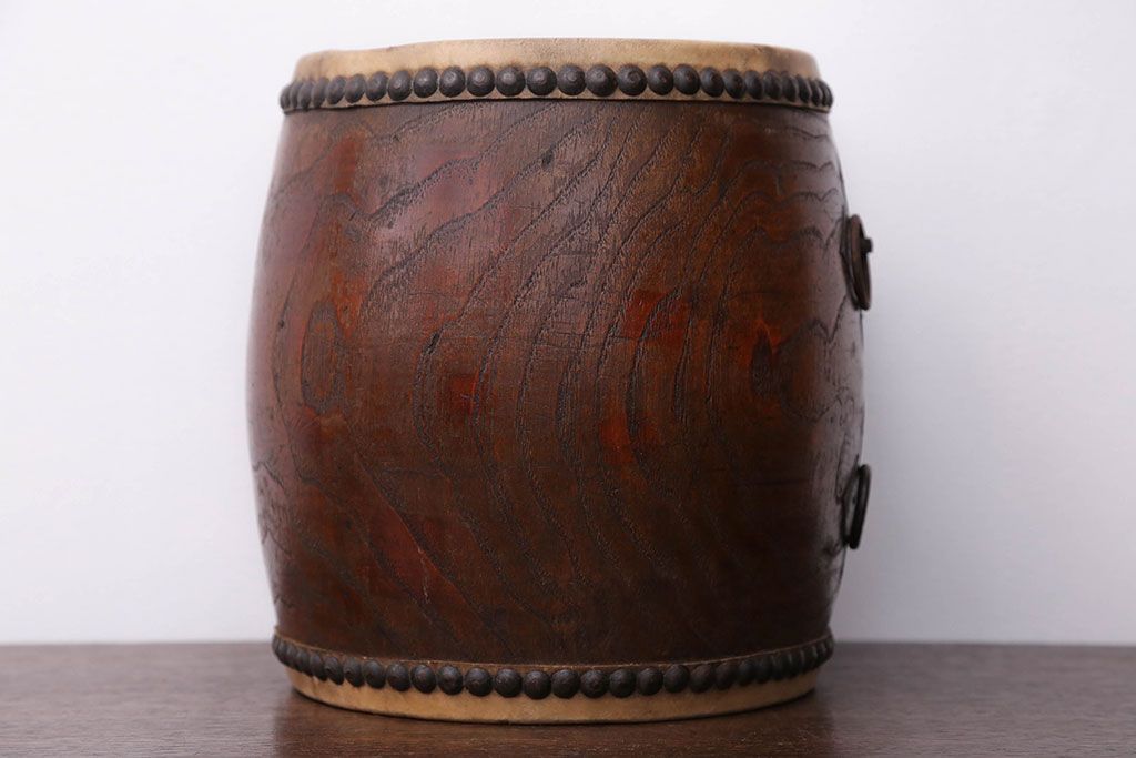 ラフジュ工房> 骨董・美術品> 和楽器 > アンティーク雑貨 古民具・骨董 古い欅材の小さなアンティーク太鼓