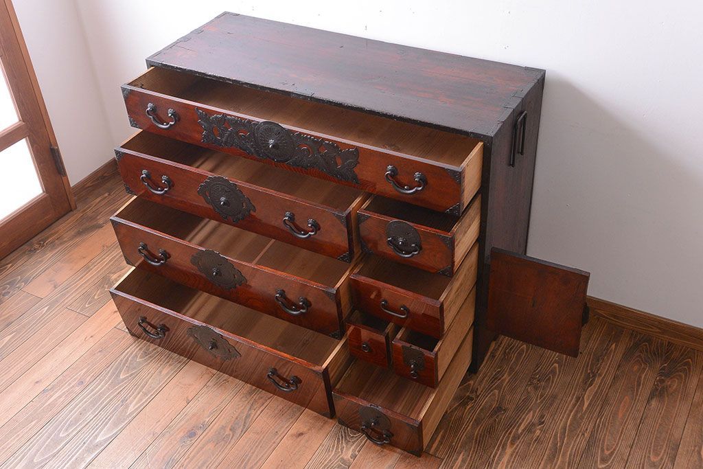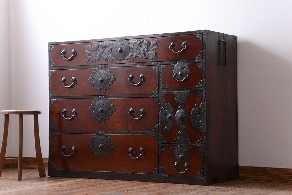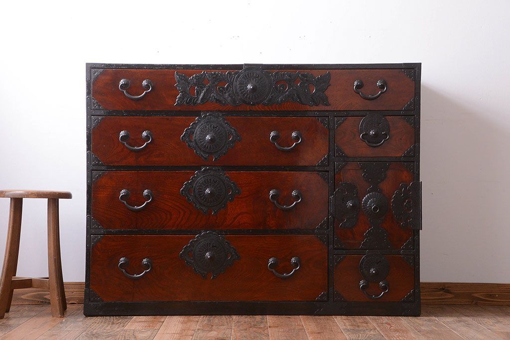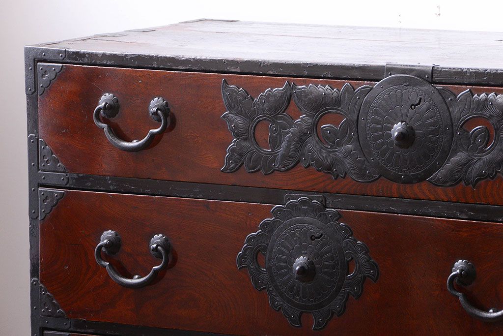 アンティーク家具 古民具・骨董 前面欅材 漆の美しい上品な仙台箪笥