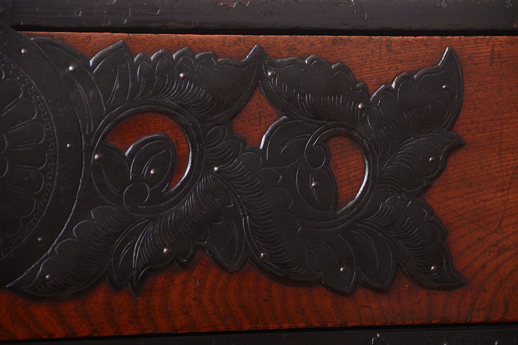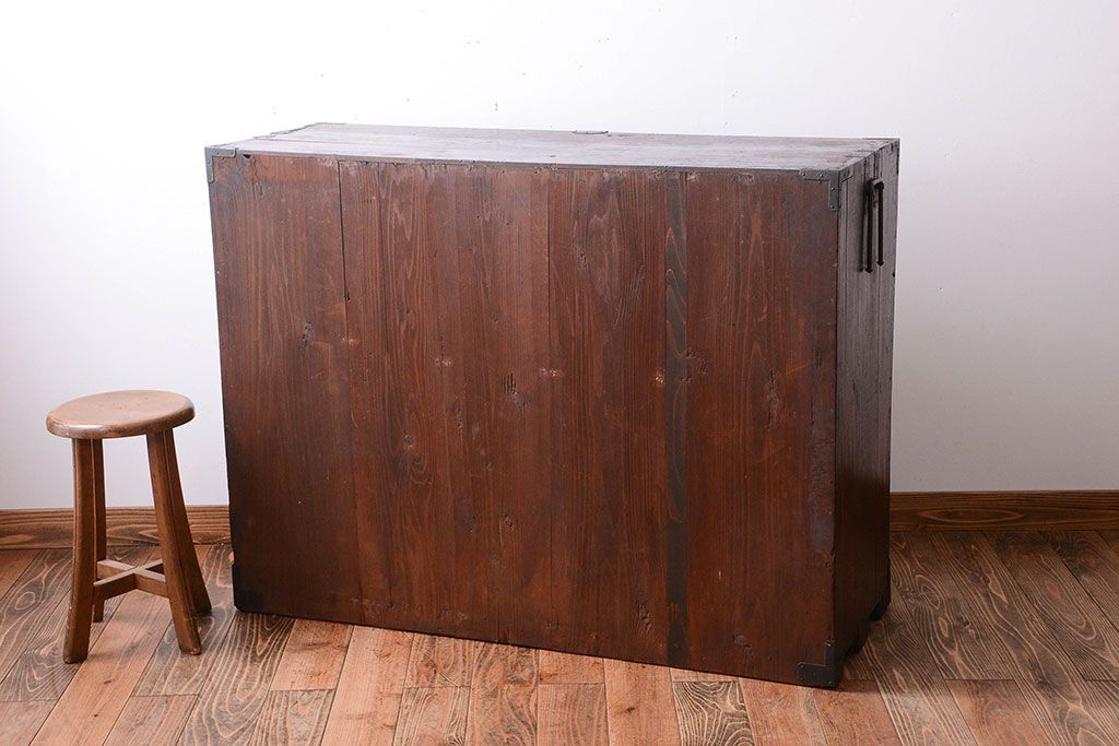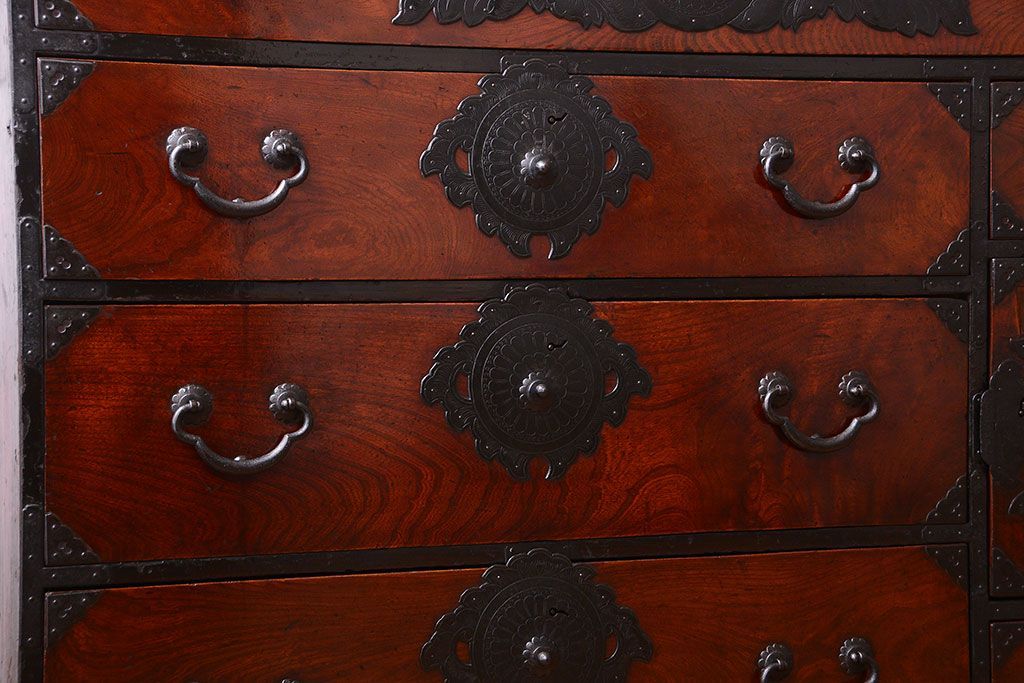欅の木目を活かした漆塗りが美しい、和製アンティークの仙台箪笥です。