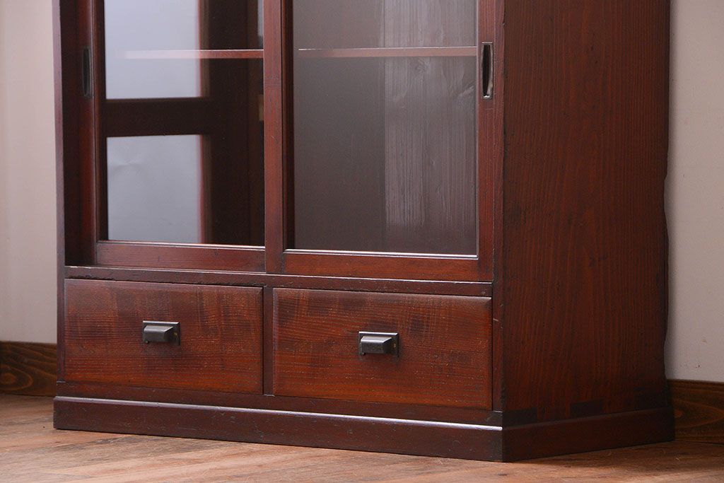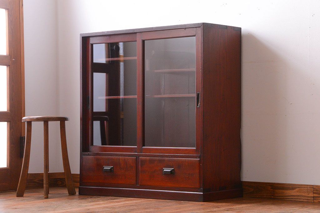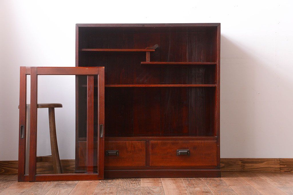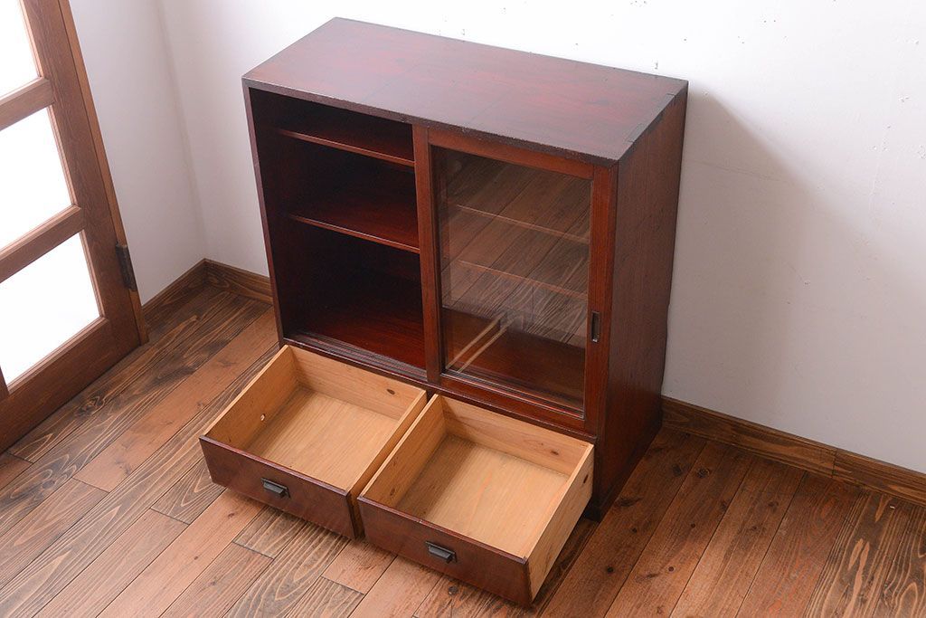 アンティーク家具 和製アンティーク 引き出し付きのガラス戸棚