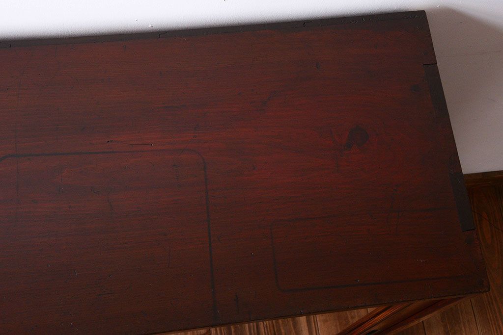 和製アンティーク 引き出し付きのガラス戸棚です。