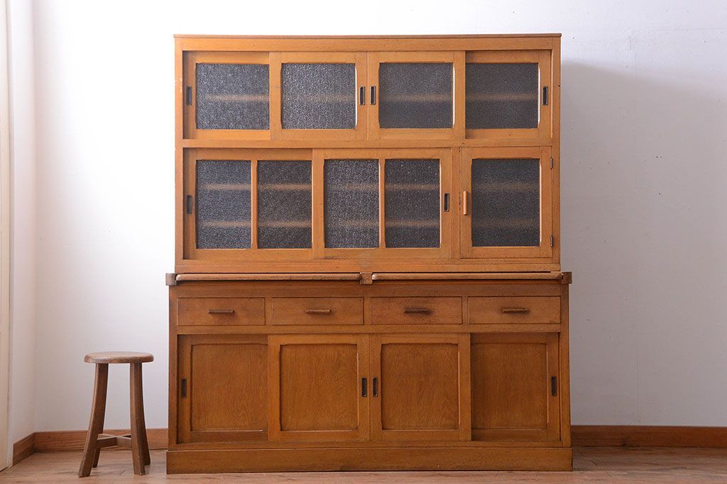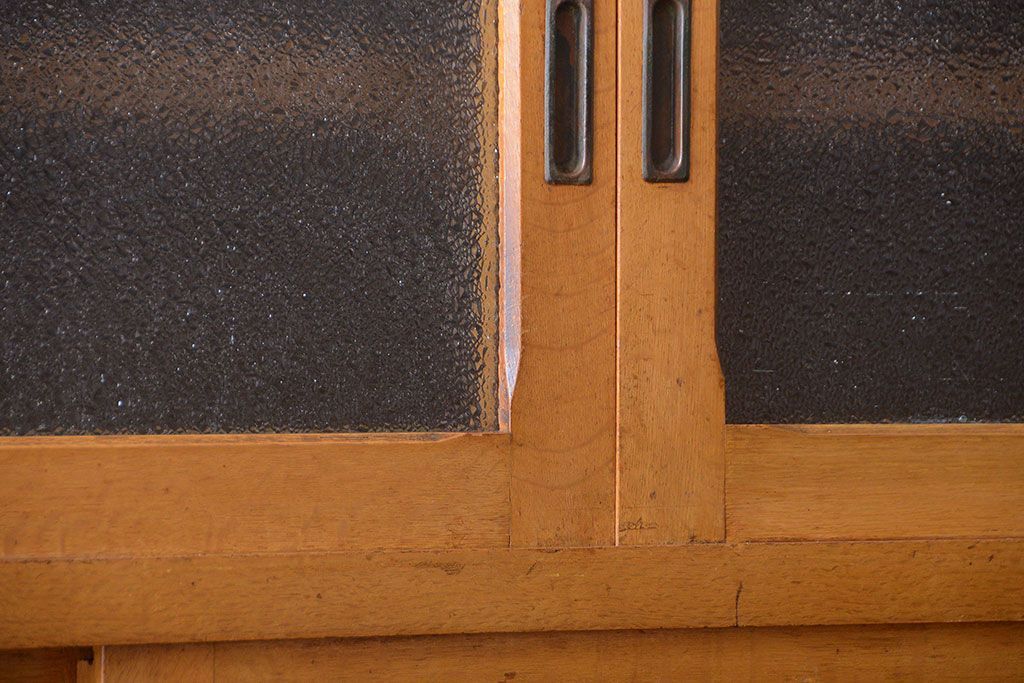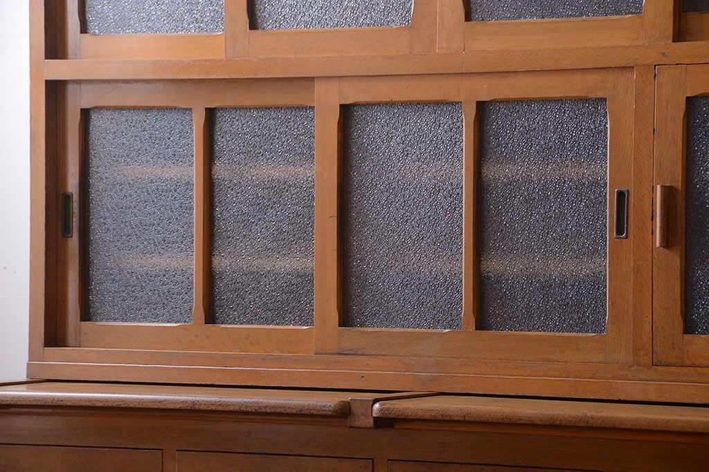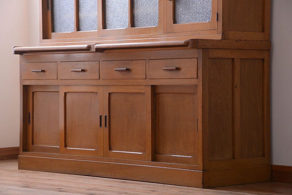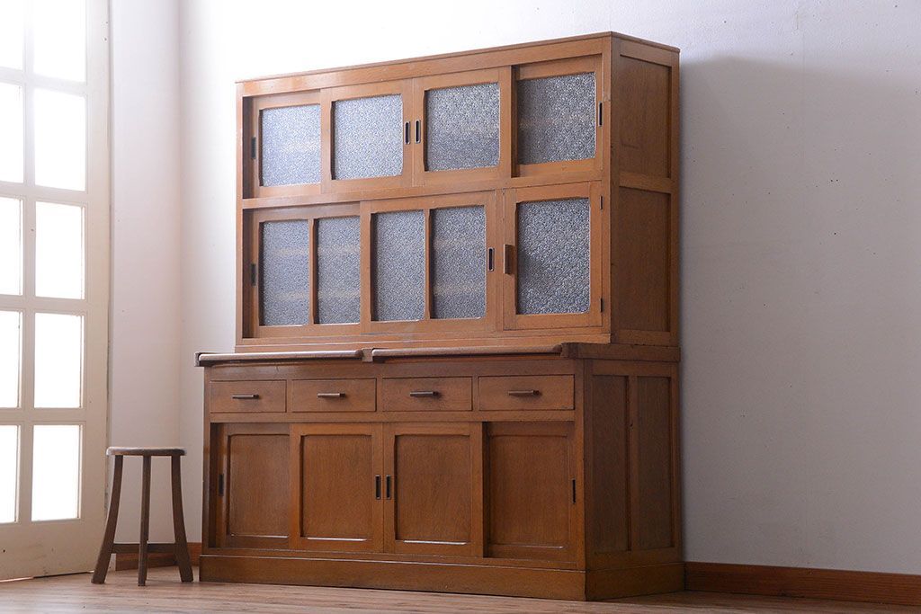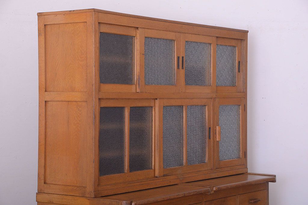 和製アンティーク ダイヤガラス入り!ナラ材の食器棚(カップボード)です。
