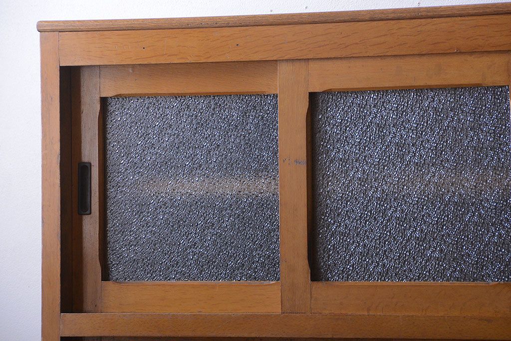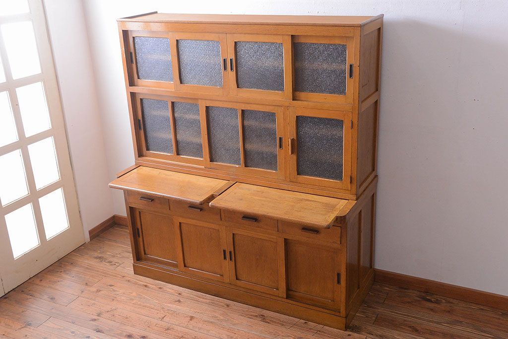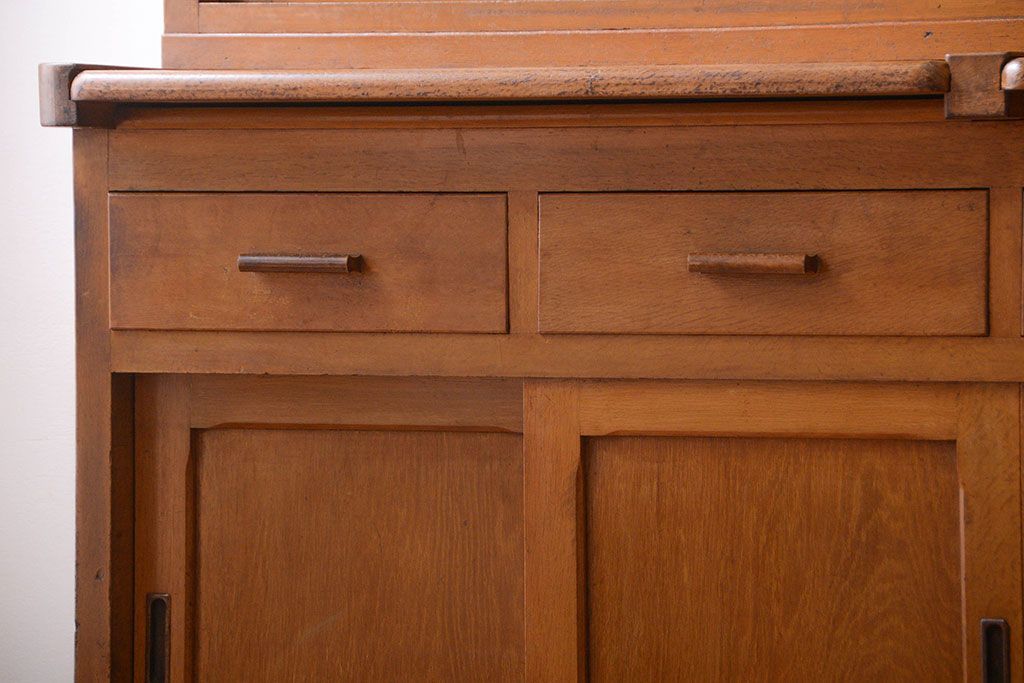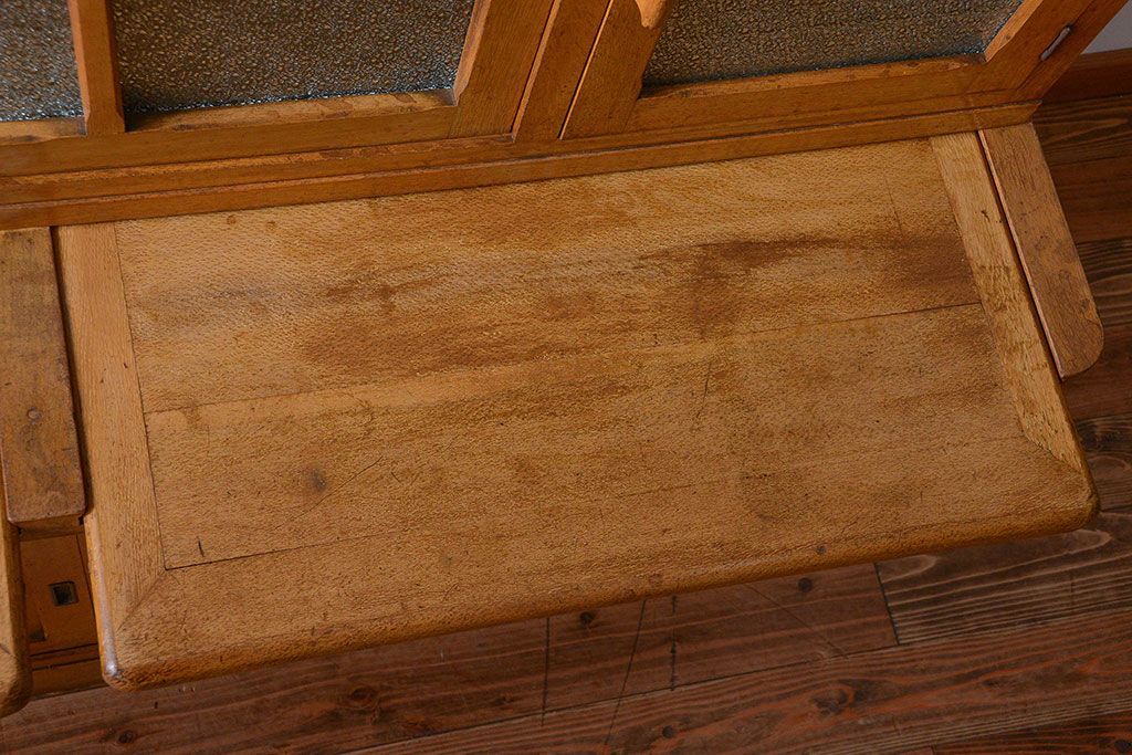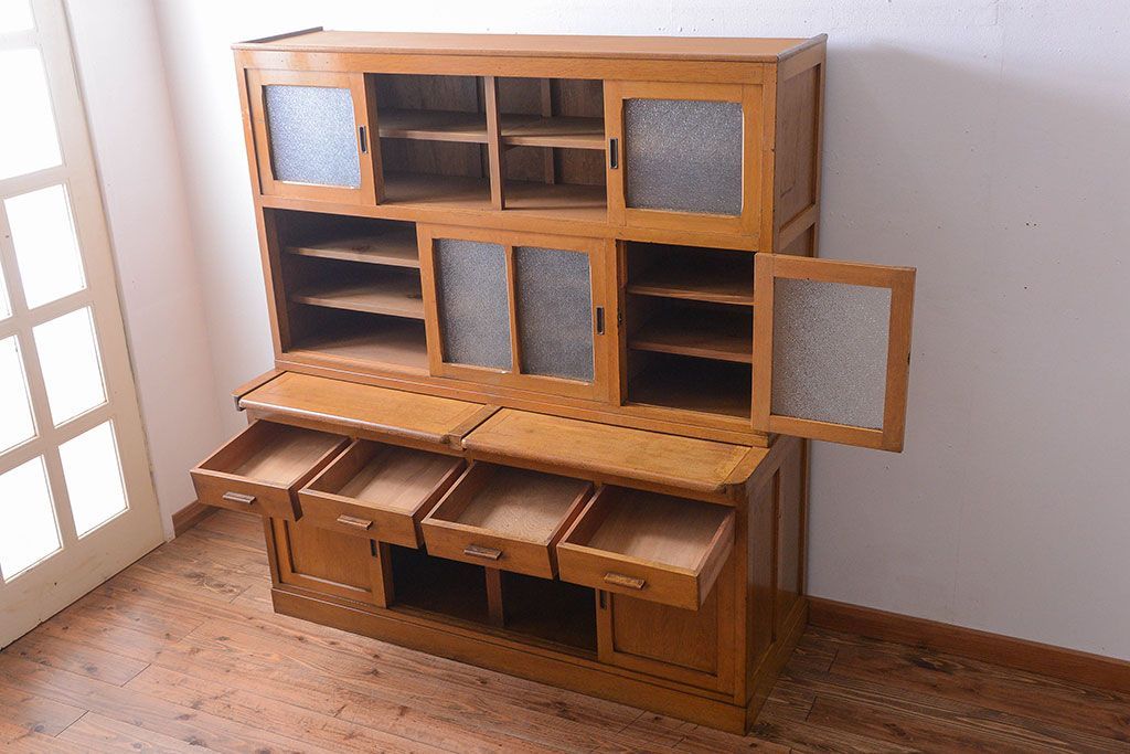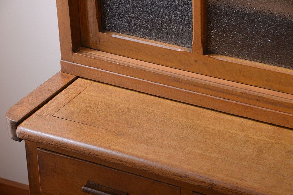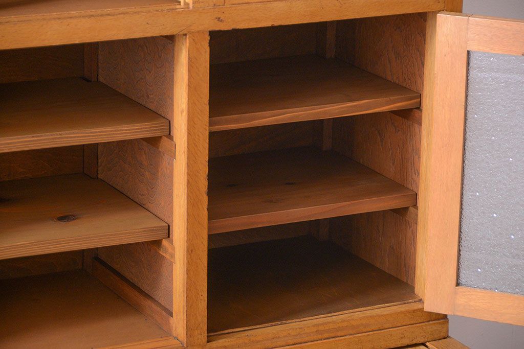 和製アンティーク ダイヤガラス入り!ナラ材の食器棚(カップボード)です。