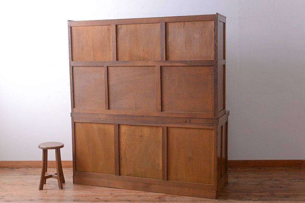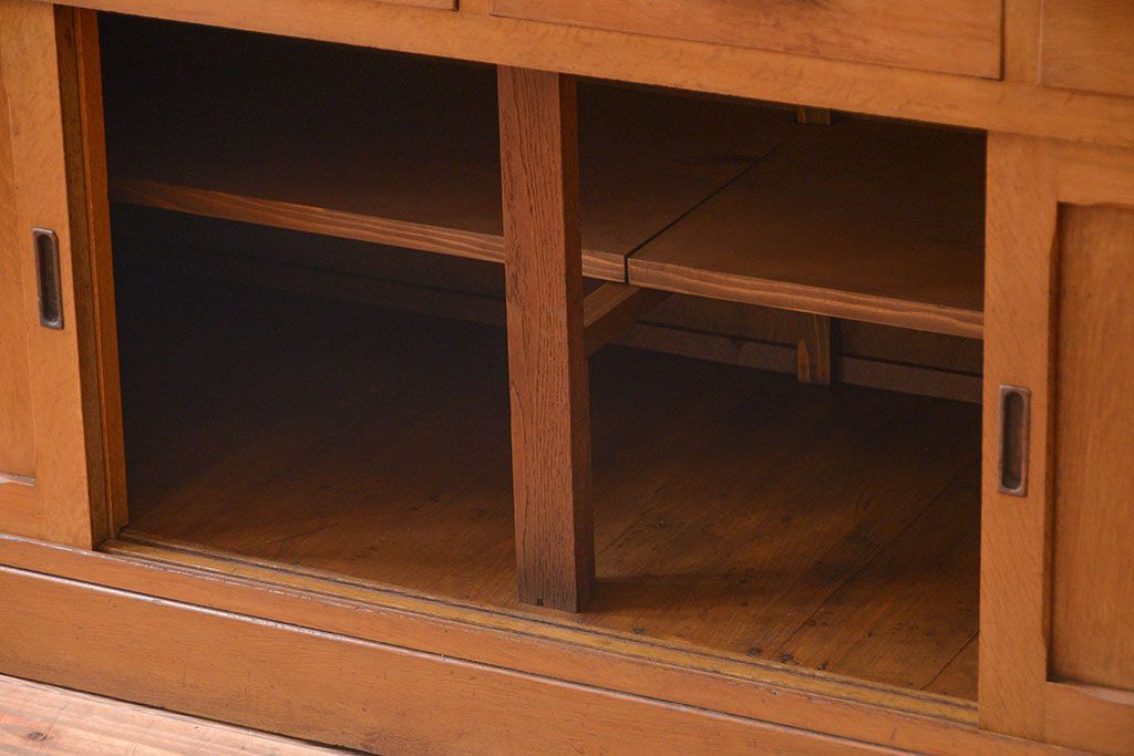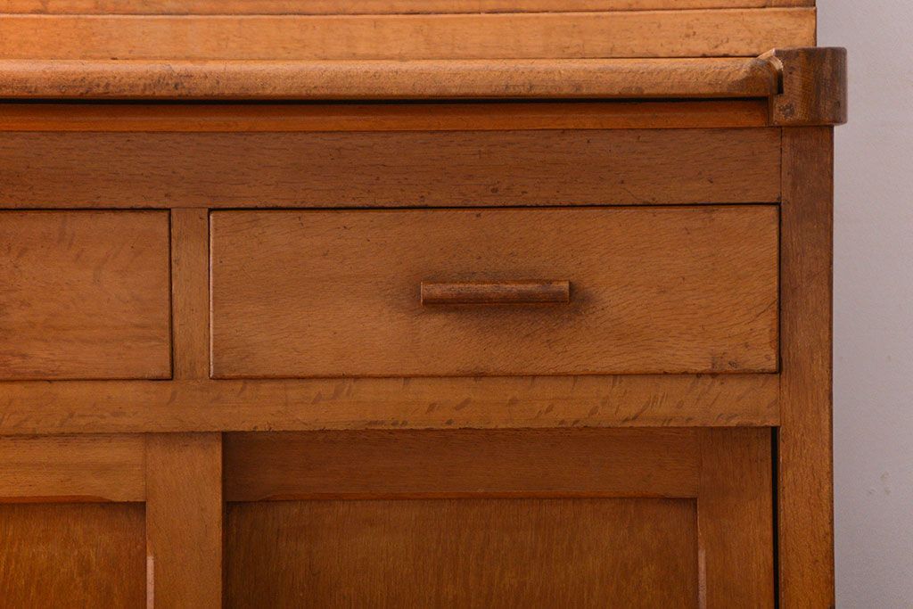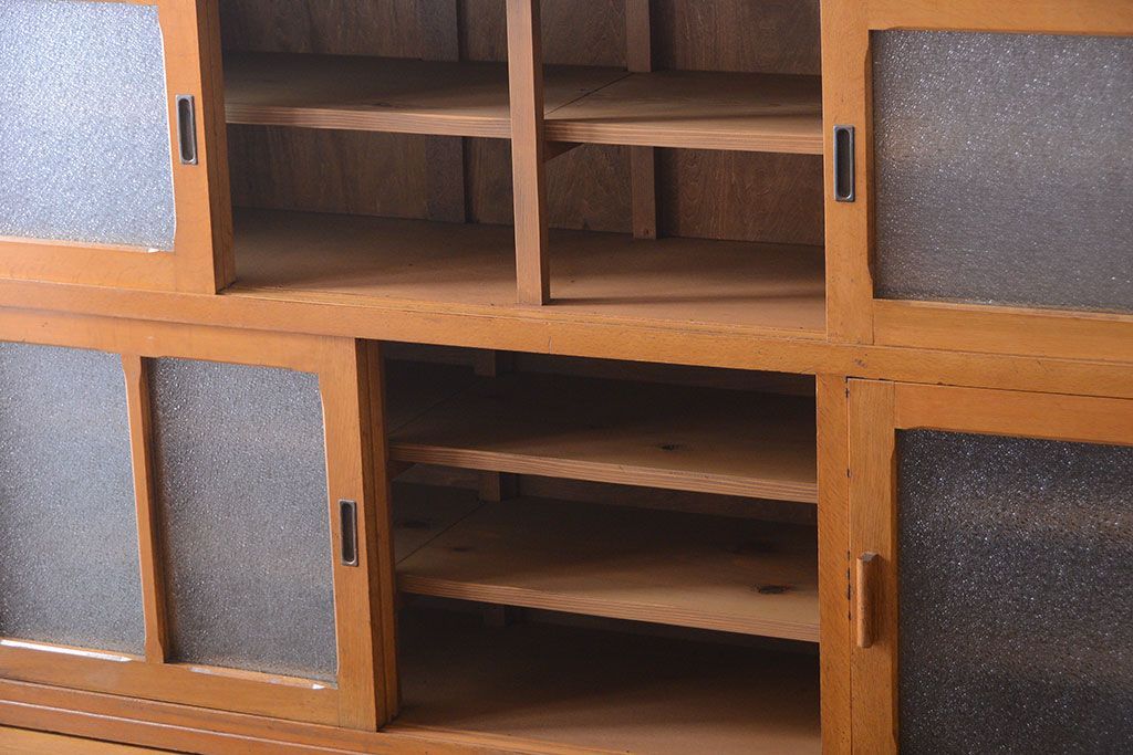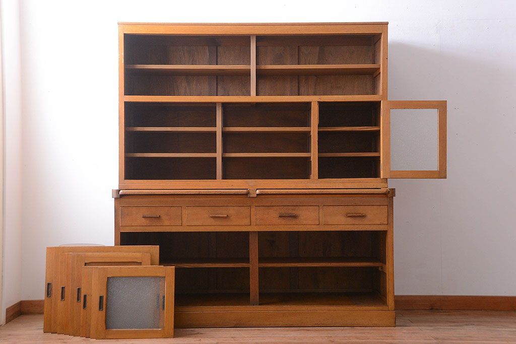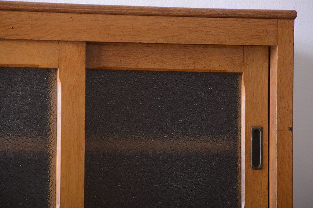和製アンティーク ダイヤガラス入り!ナラ材の食器棚(カップボード)です。