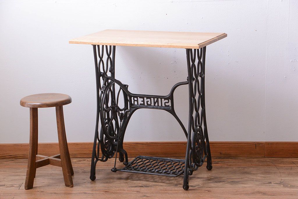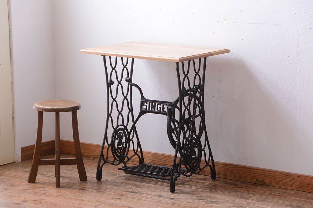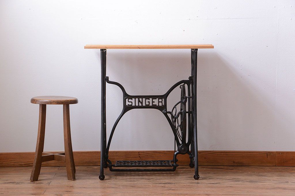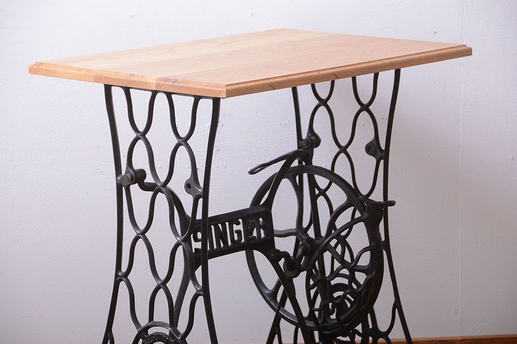 アンティーク シンガーミシンレッグをリメイクしたデスク(1)です。