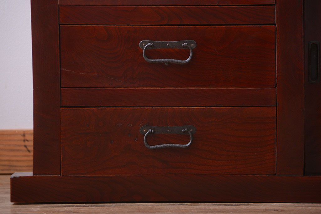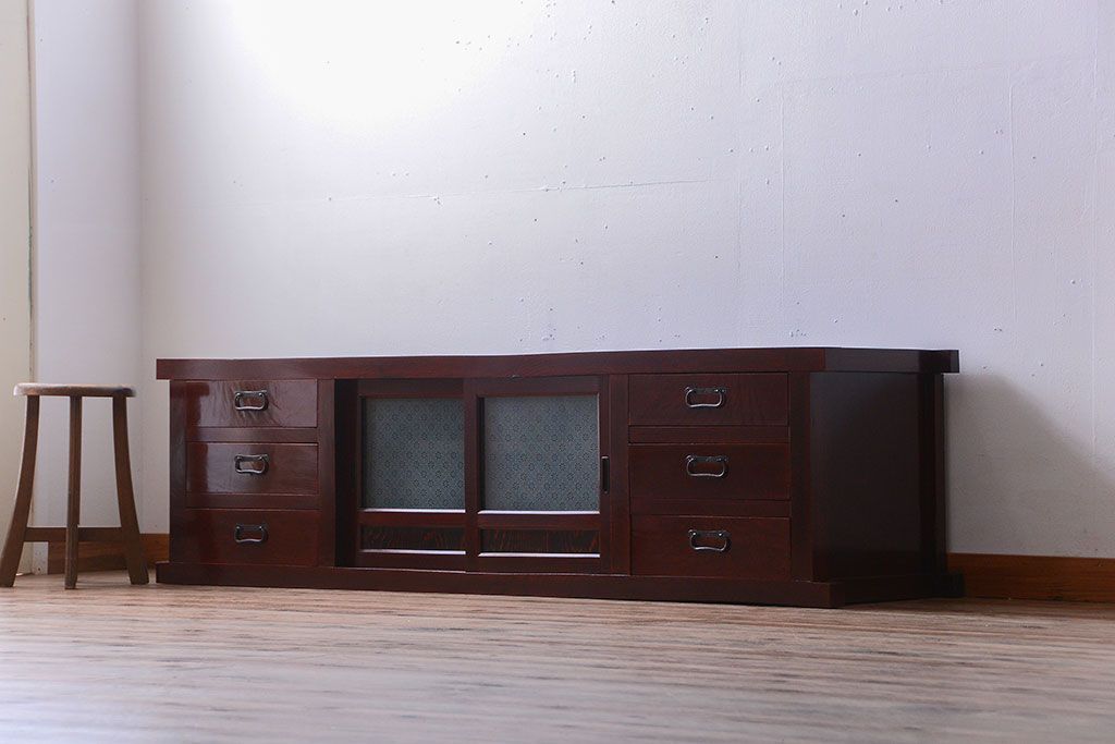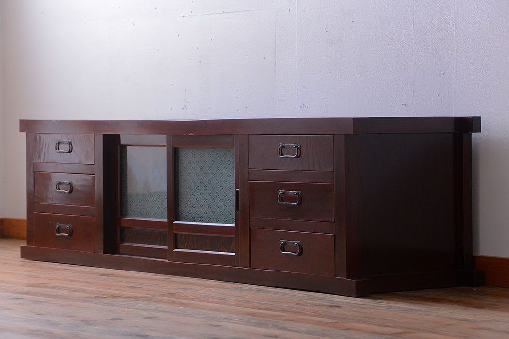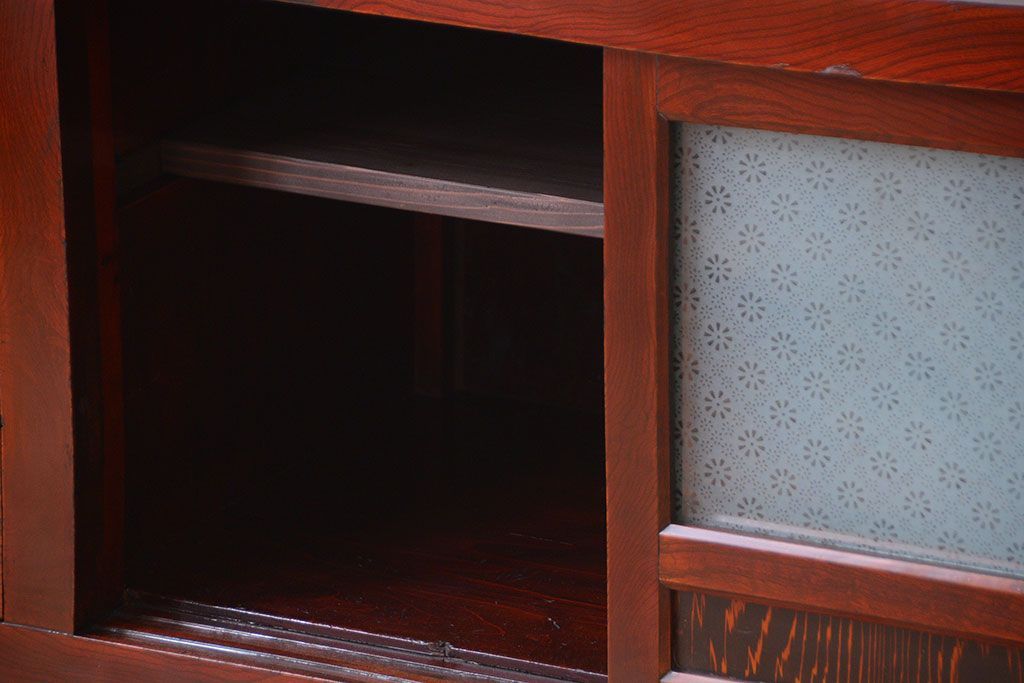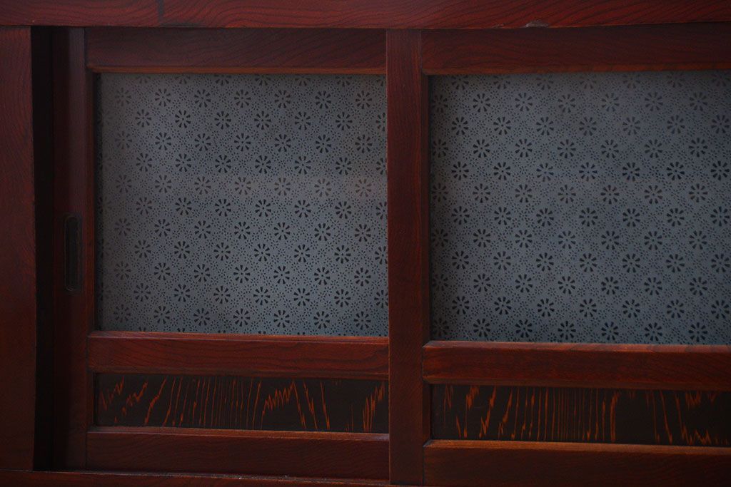 アンティーク家具 古民具・骨董 六尺 デザインガラスがモダンでお洒落な水屋箪笥テレビボード