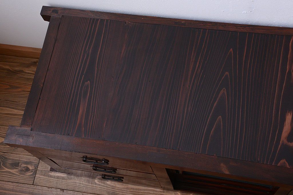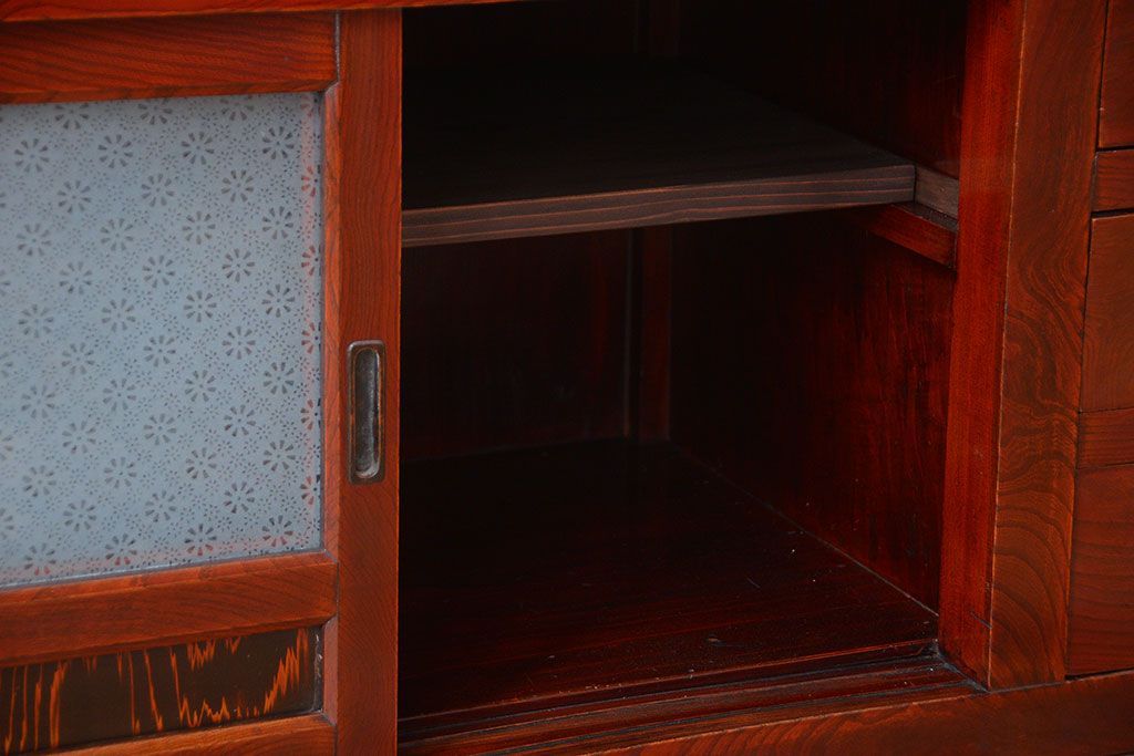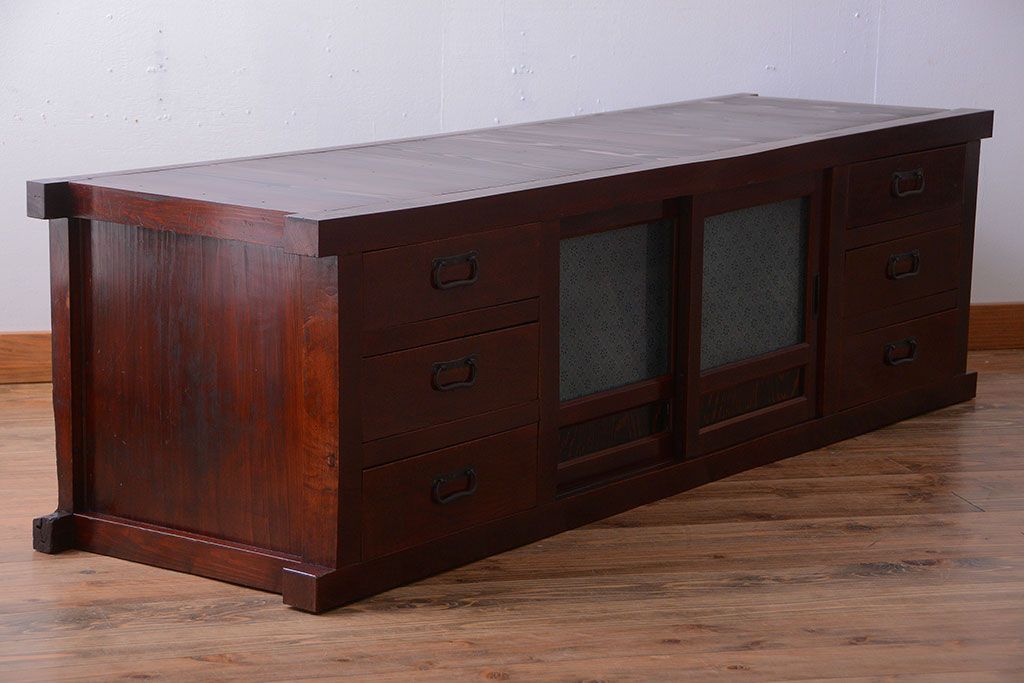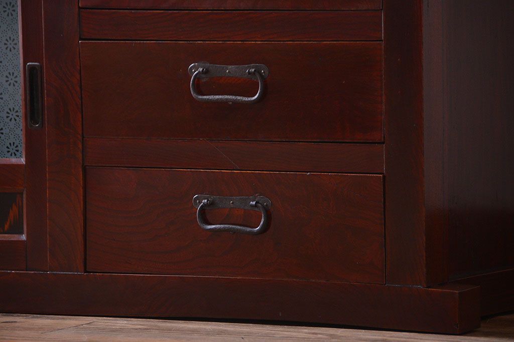 ラフジュ工房> 和箪笥> 水屋箪笥 > アンティーク家具 古民具・骨董 六尺 デザインガラスがモダンでお洒落な水屋箪笥テレビボード