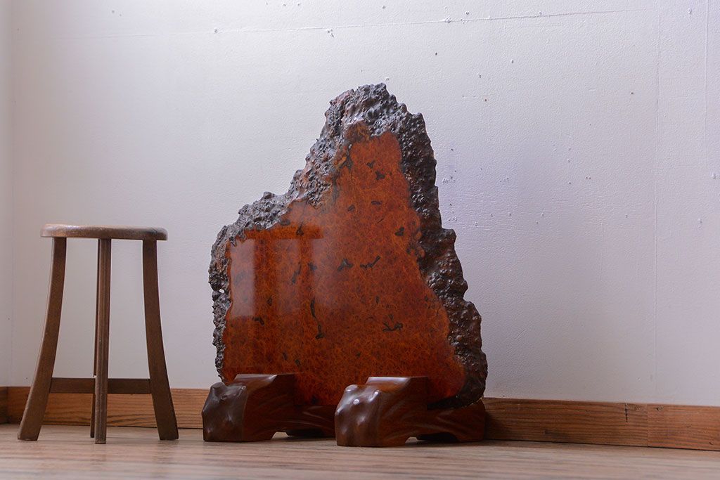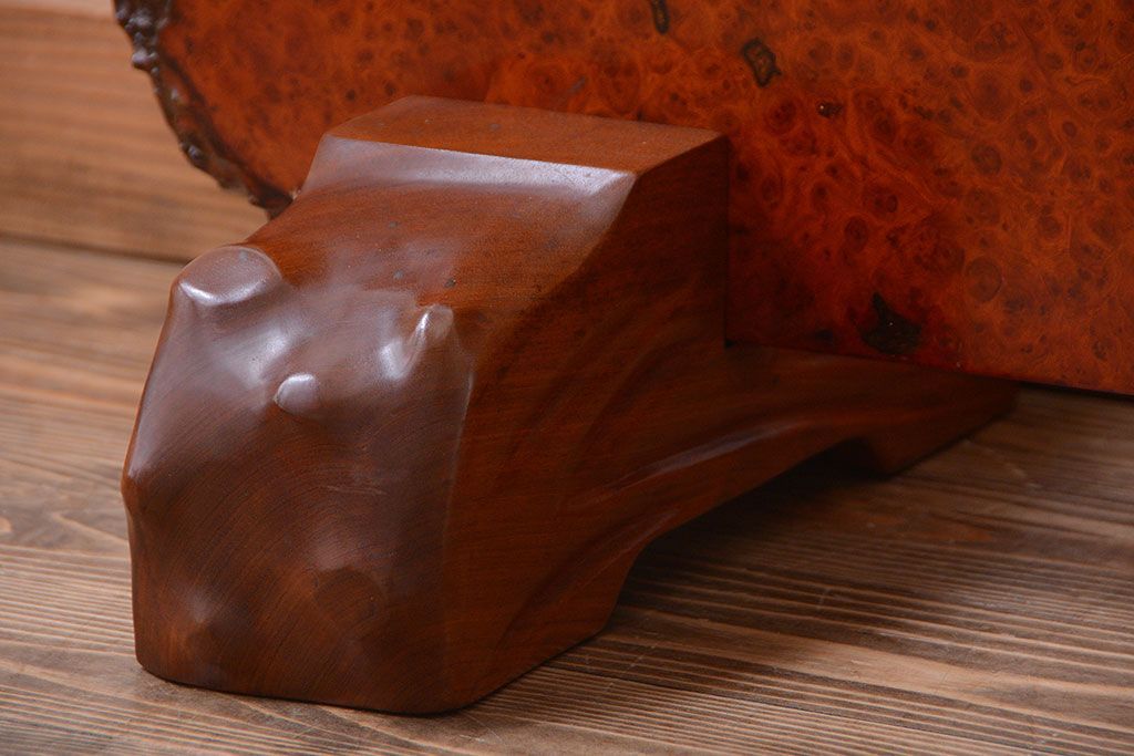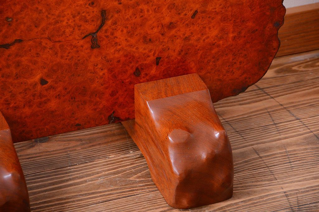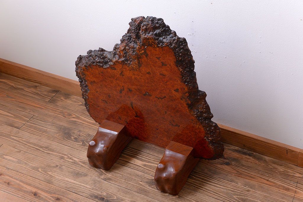 古民具・骨董 鳥眼杢・葡萄杢が美しい唐木花梨無垢材の輪切り高級衝立てです。