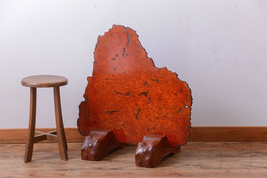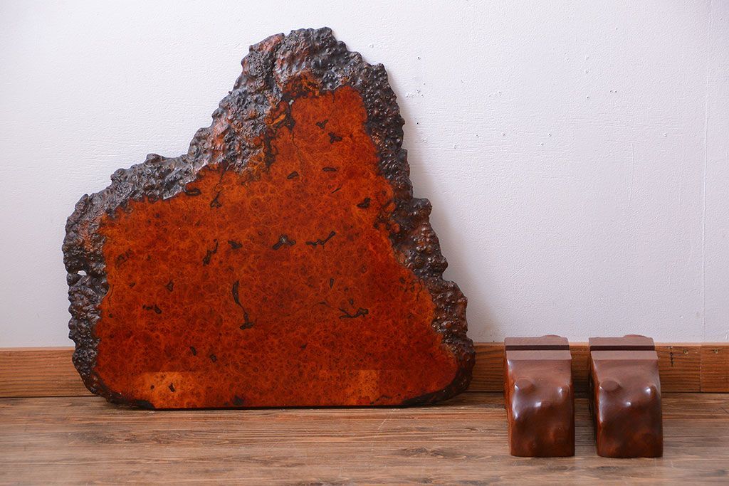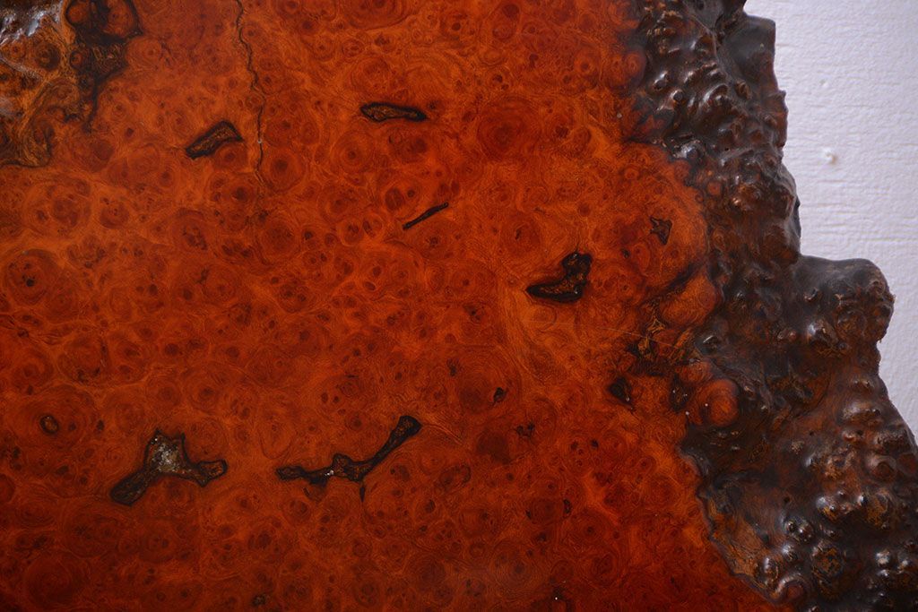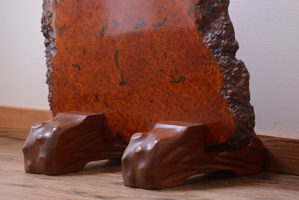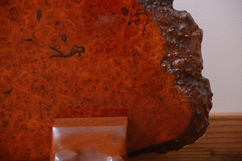古民具・骨董 鳥眼杢・葡萄杢が美しい唐木花梨無垢材の輪切り高級衝立て(カリン材)