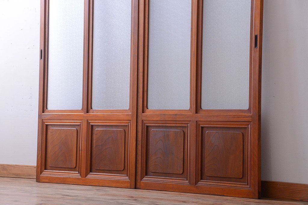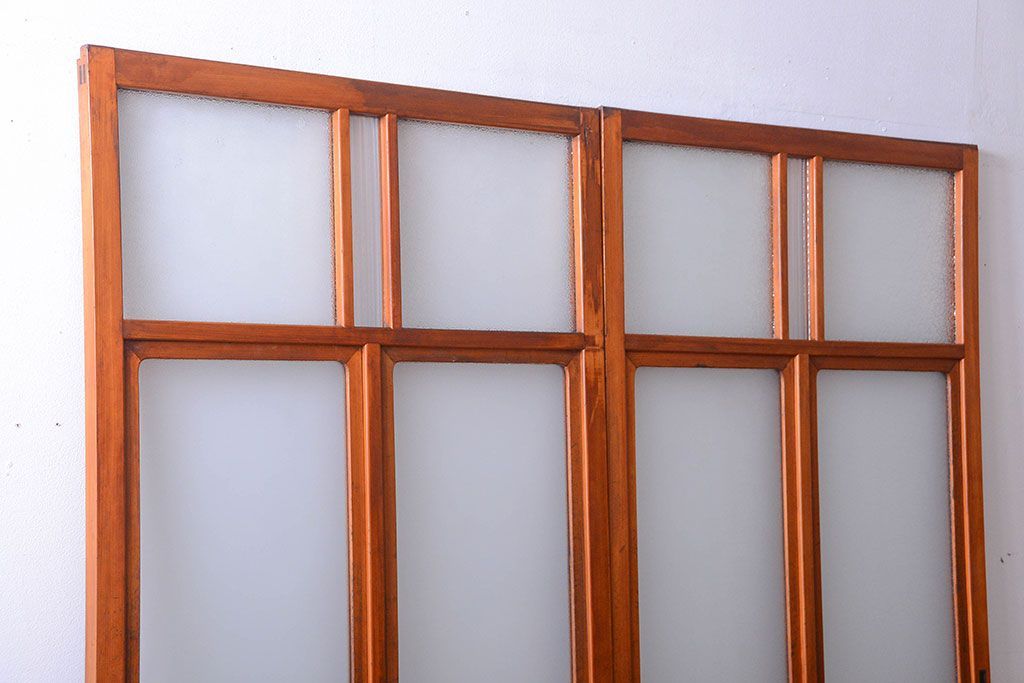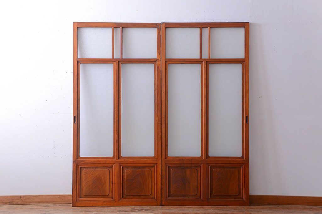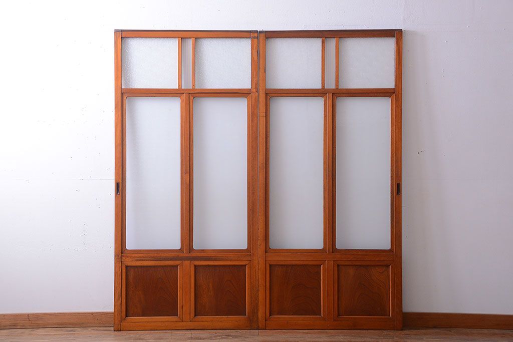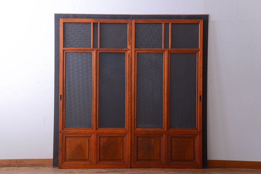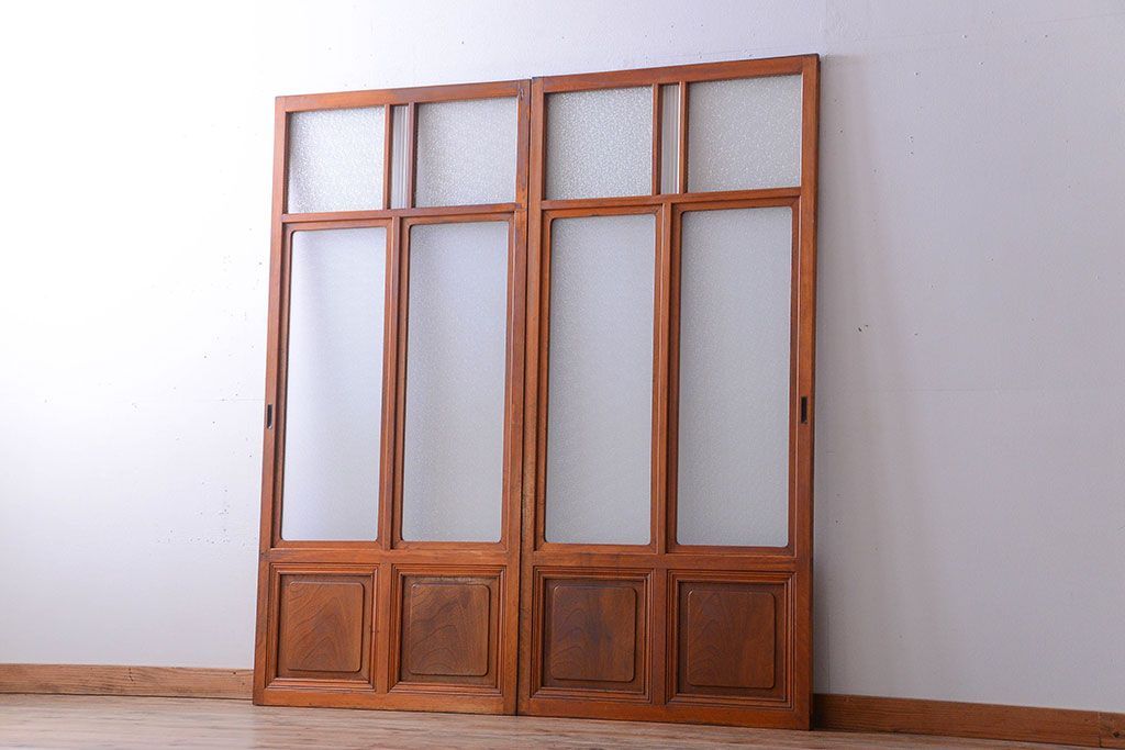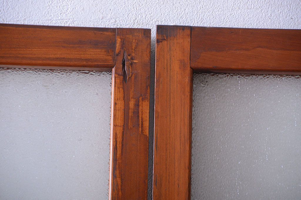 和製アンティークのガラス引き戸2枚セットです。