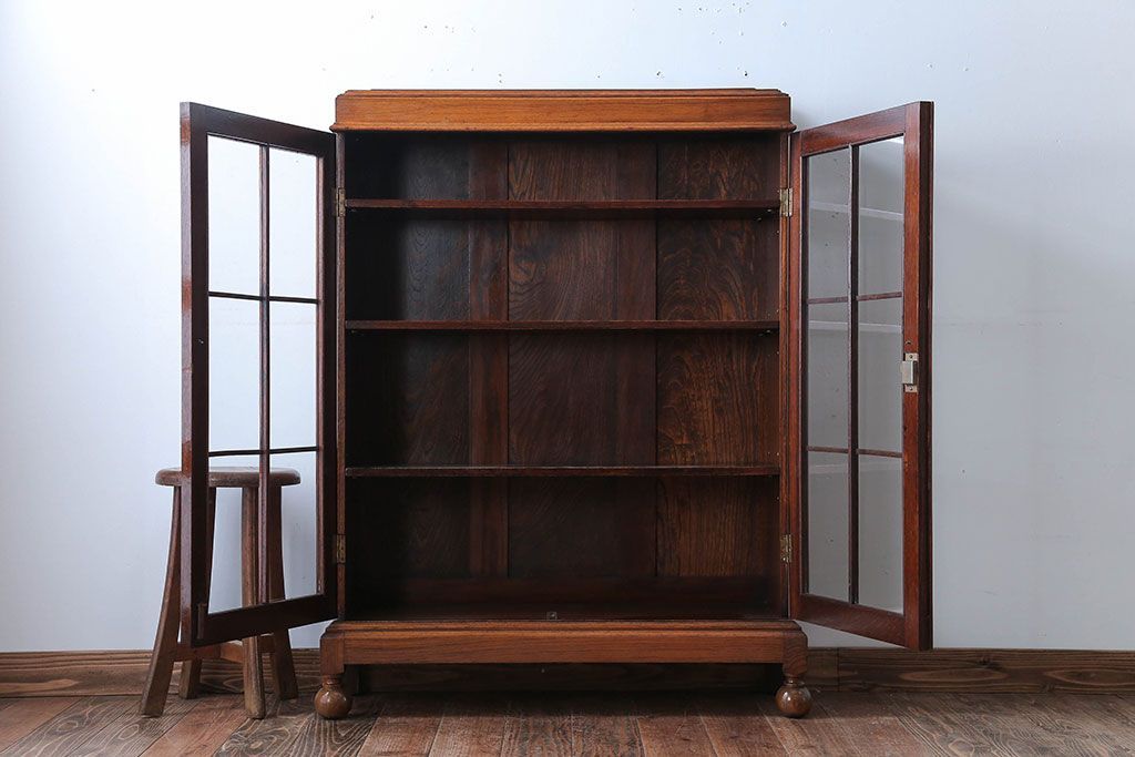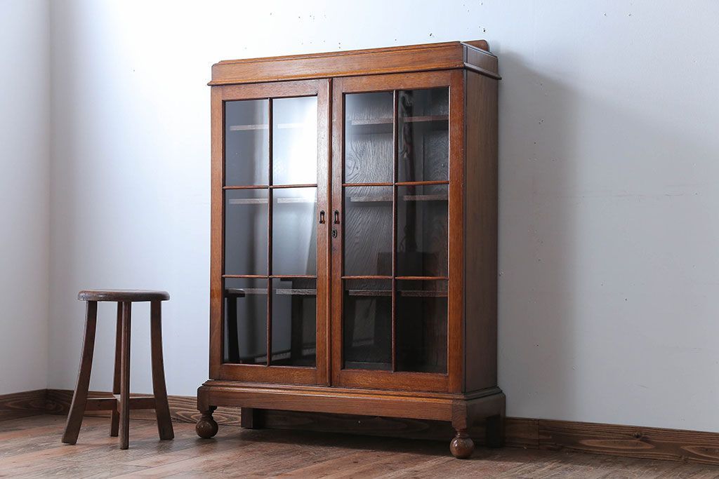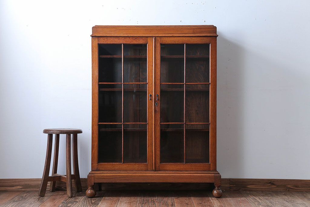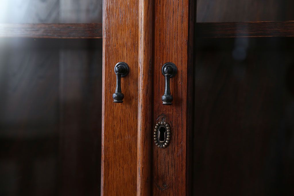 アンティーク家具 イギリスアンティーク 古いオーク材の小ぶりなキャビネット(本箱)
