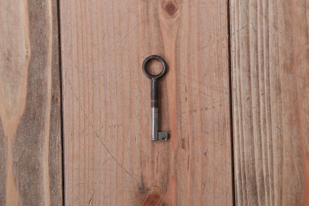 鍵は付属します。画像にありますように、袋に入れお付けします。スムーズに動くように調整していますが、あくまでも古いものや中古品ですので、長期の使用保証は出来かねます。ご購入後不具合が発生した場合は、当店でサポートさせていただきますので、お気軽にご相談くださいませ。