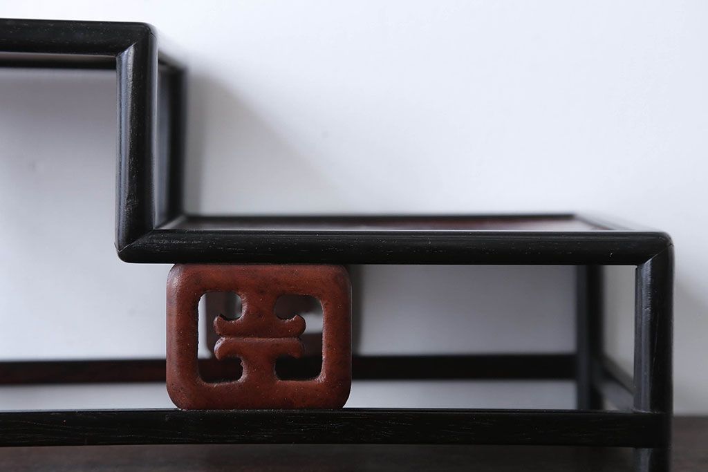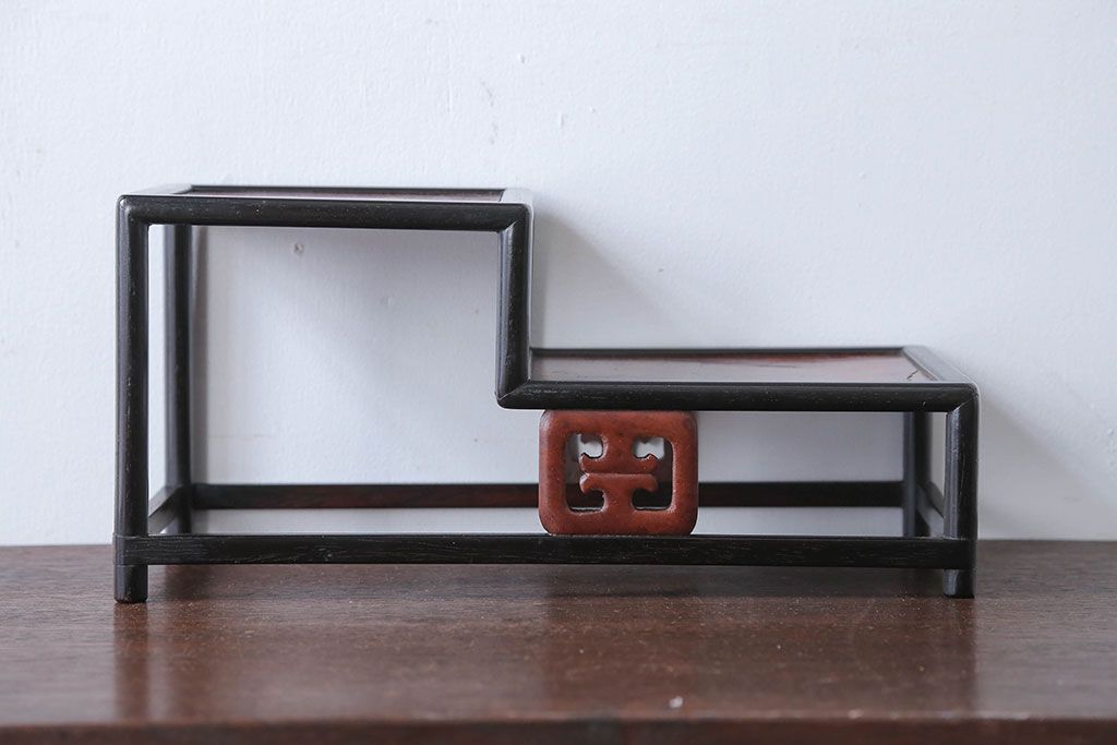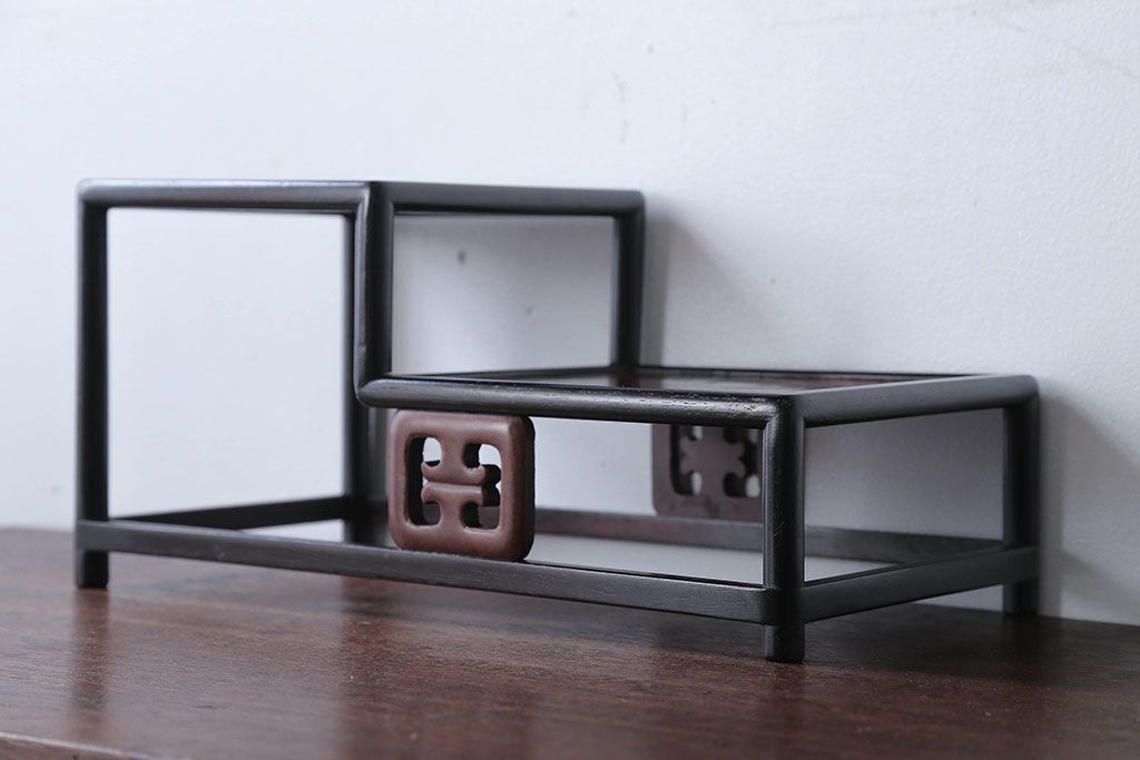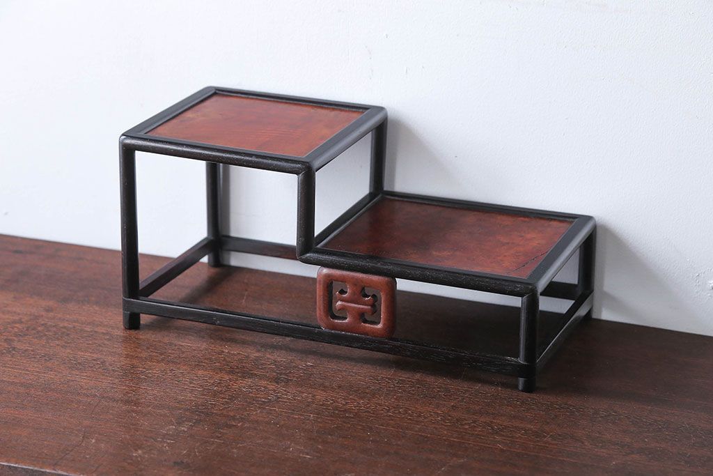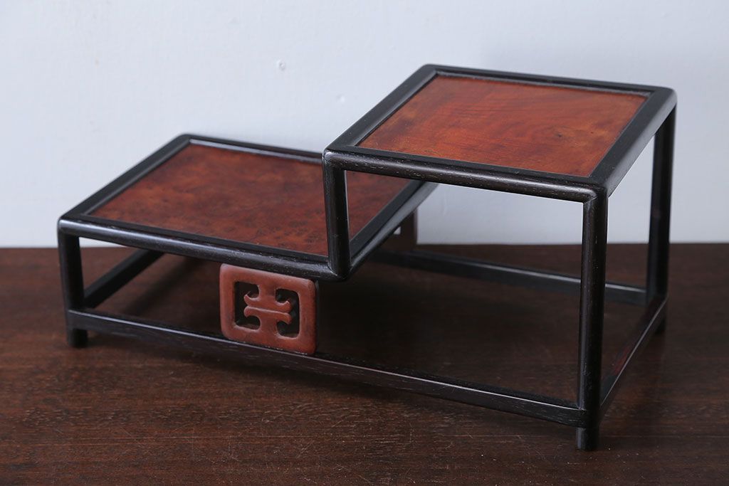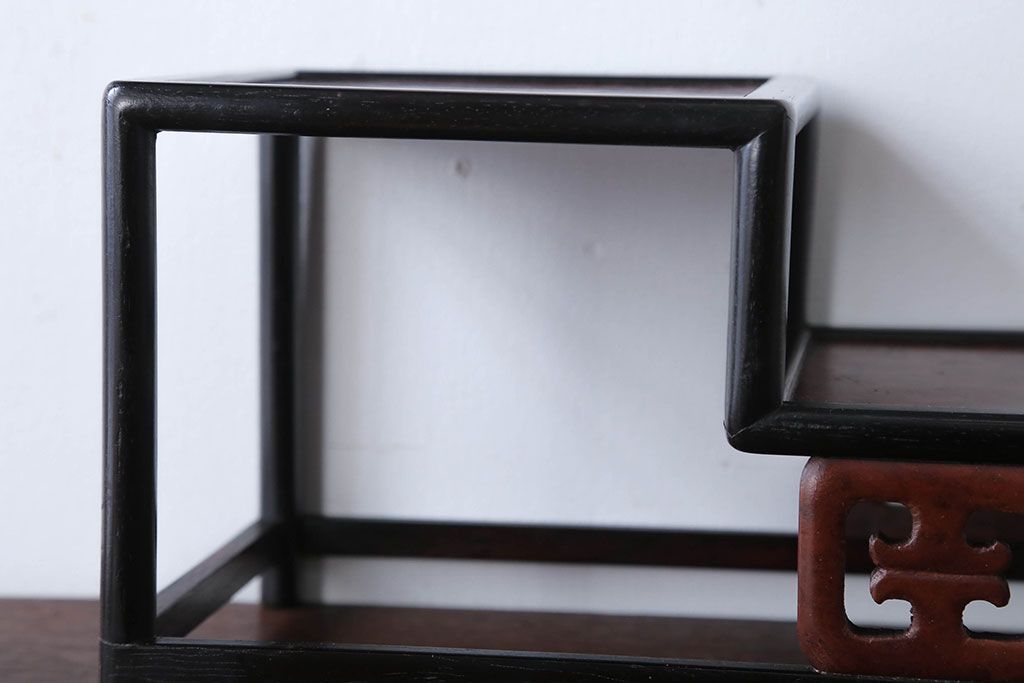 ラフジュ工房> オープンラック・シェルフ> ディスプレイラック > アンティーク雑貨 古民具・骨董 花梨材・紫檀材!古い唐木材の変わり型花台(カリン材)