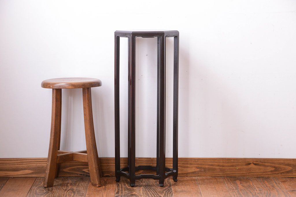 古民具・骨董 珍しいデザイン!唐木材のアンティーク花台です。