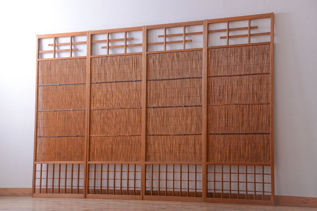 ラフジュ工房> 衝立・パーテーション> スタンド式衝立 > 古民具・骨董 風情あるアンティーク簾戸(簀戸、葦戸)4枚セット
