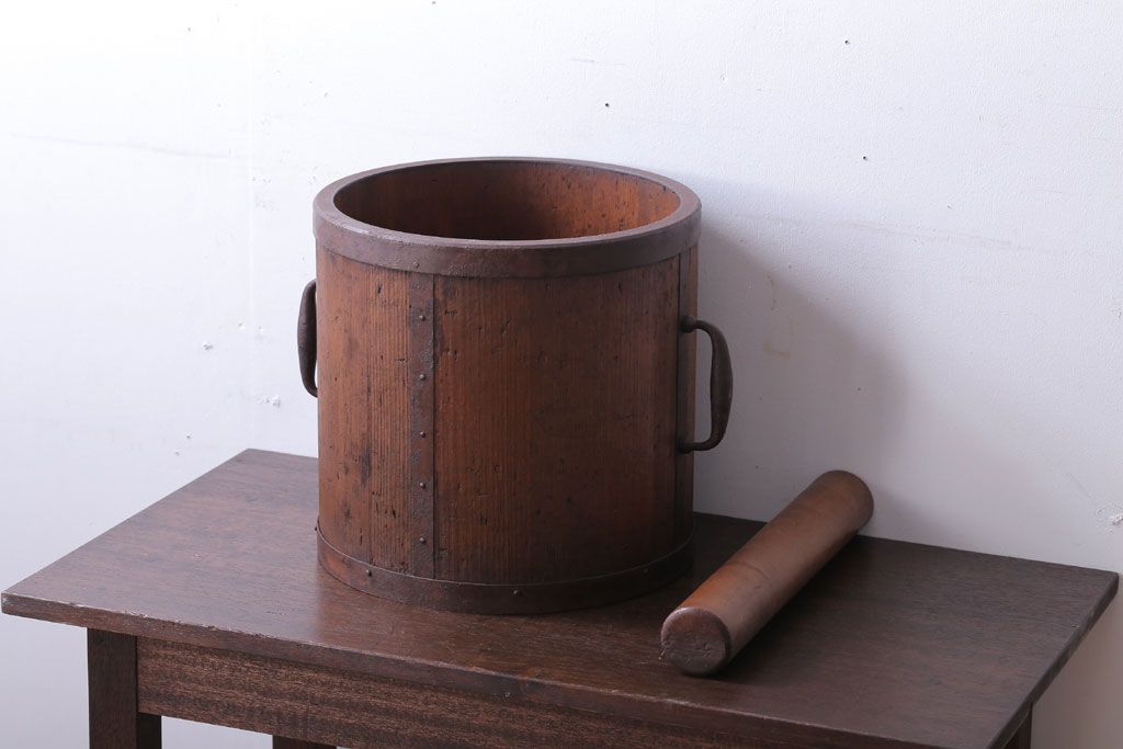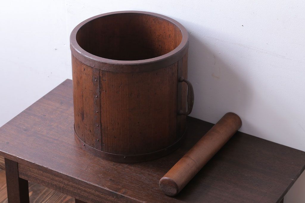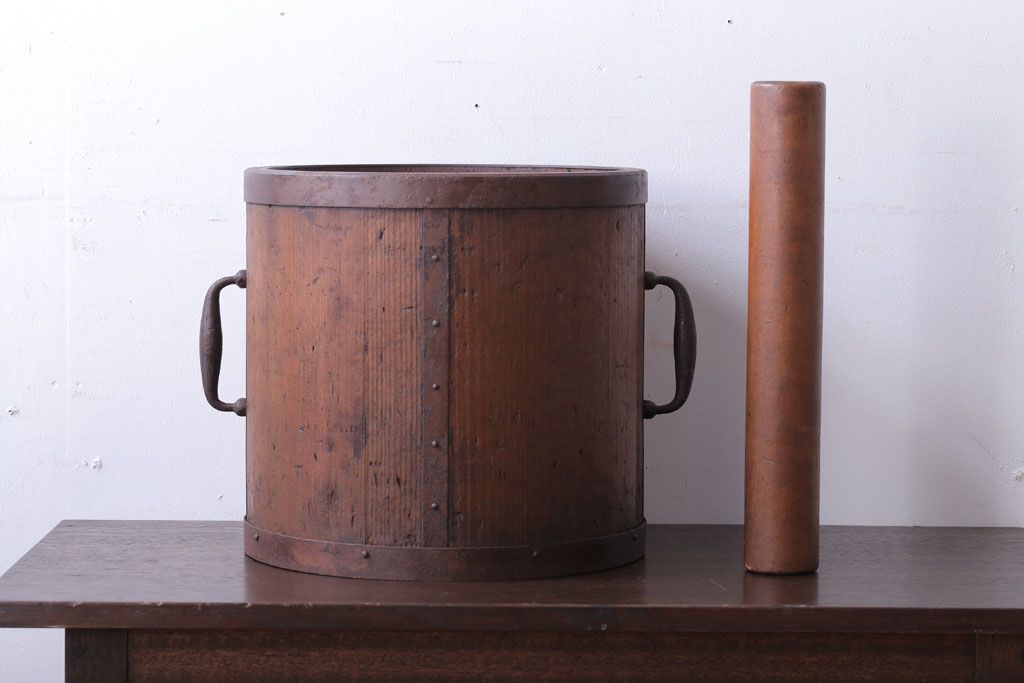 アンティーク雑貨 古民具・骨董 金具付き!古い木のアンティーク一斗枡・斗棒