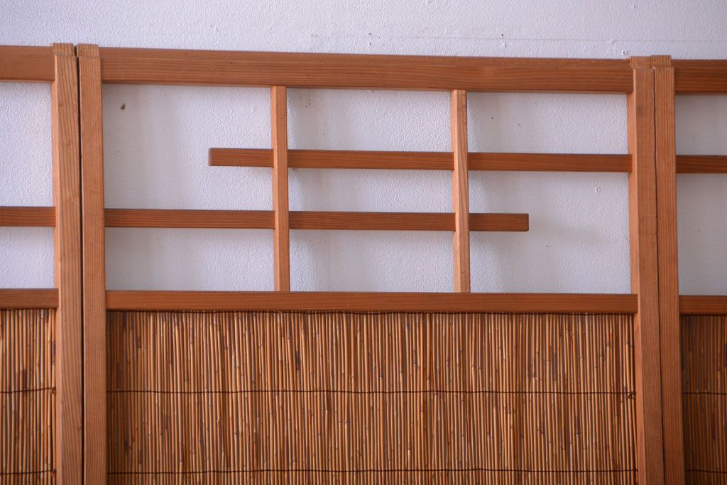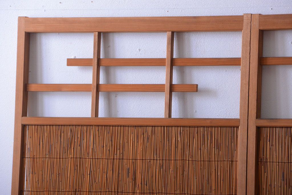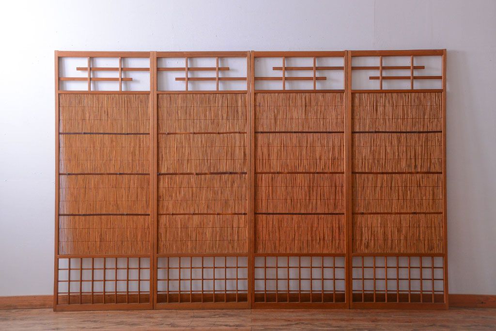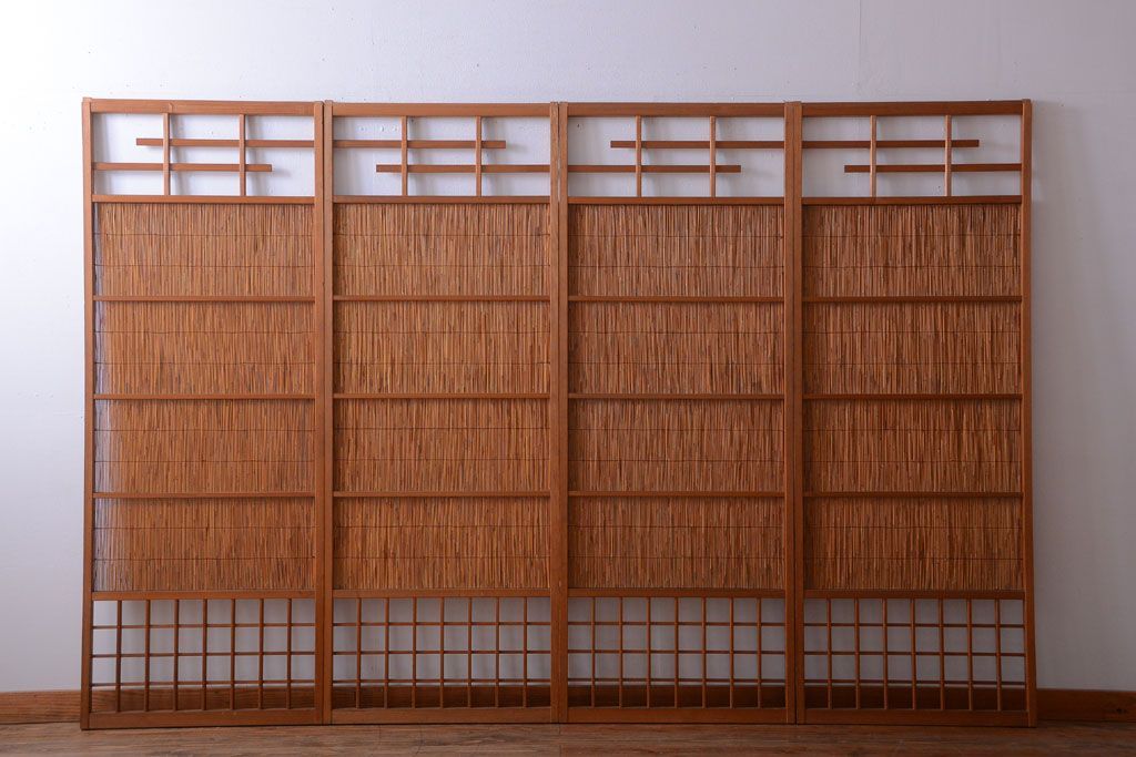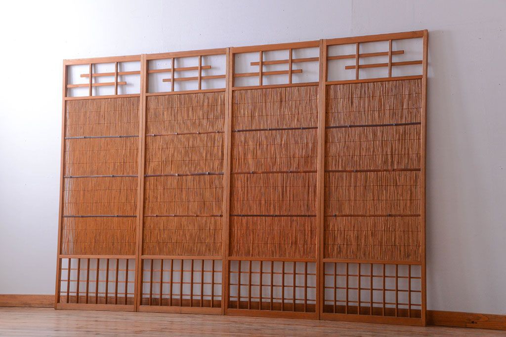 ラフジュ工房> 衝立・パーテーション> スタンド式衝立 > 古民具・骨董 風情あるアンティーク簾戸(簀戸、葦戸)4枚セット(2)