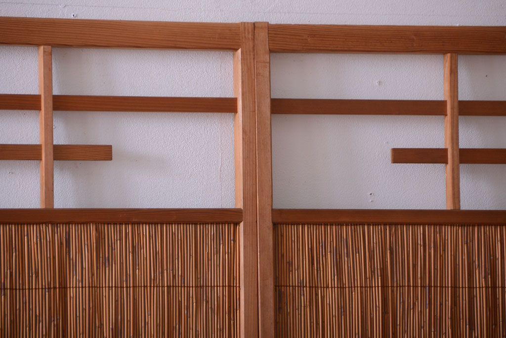 ラフジュ工房> 衝立・パーテーション> スタンド式衝立 > 和製アンティーク 和の雰囲気が良い簾戸(簀戸、葦戸)4枚セット(2)