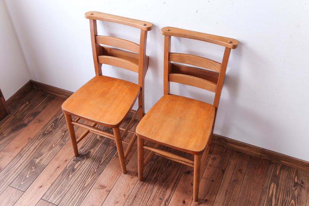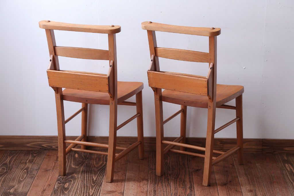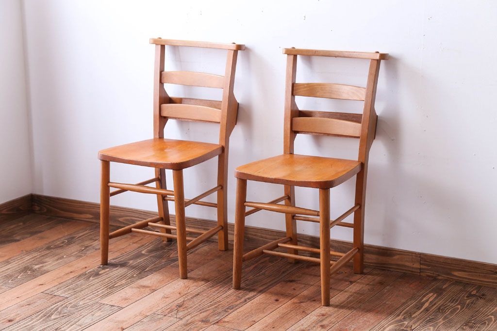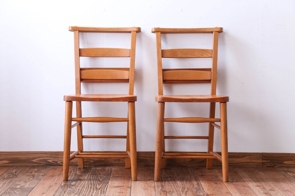 アンティーク家具 イギリスアンティーク ビーチ材のチャーチチェア2脚セット(チャペルチェア)