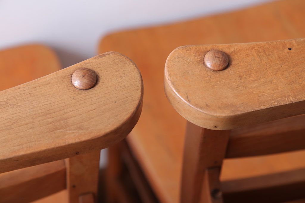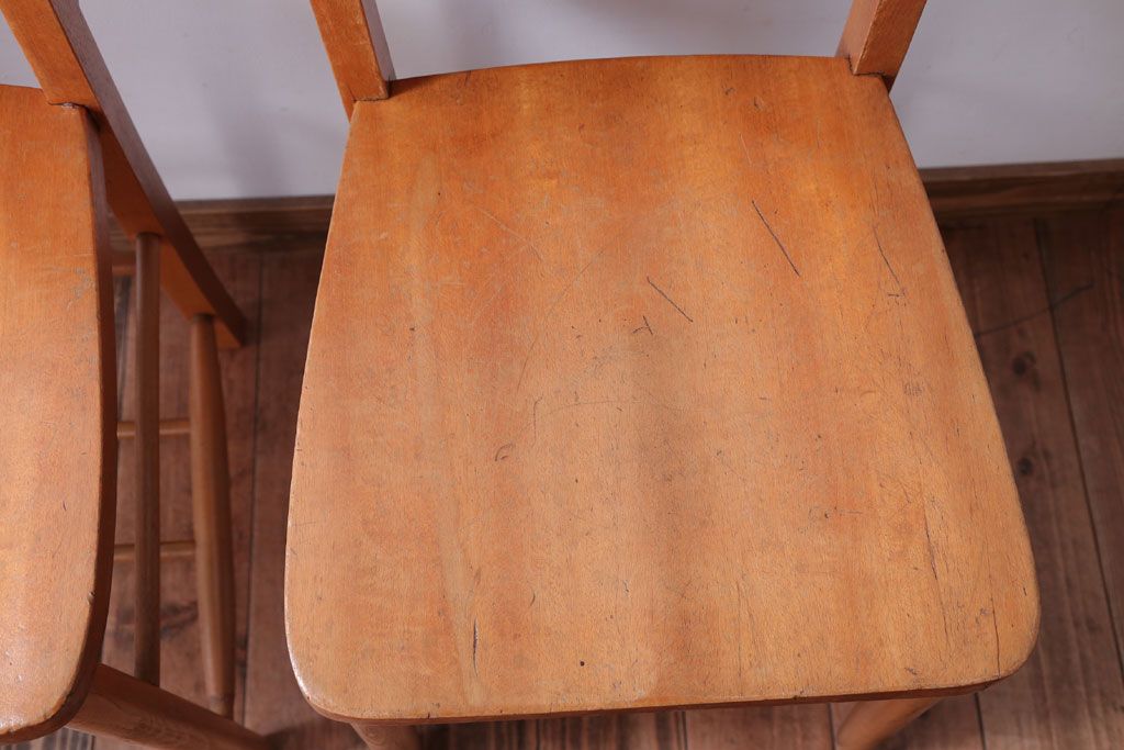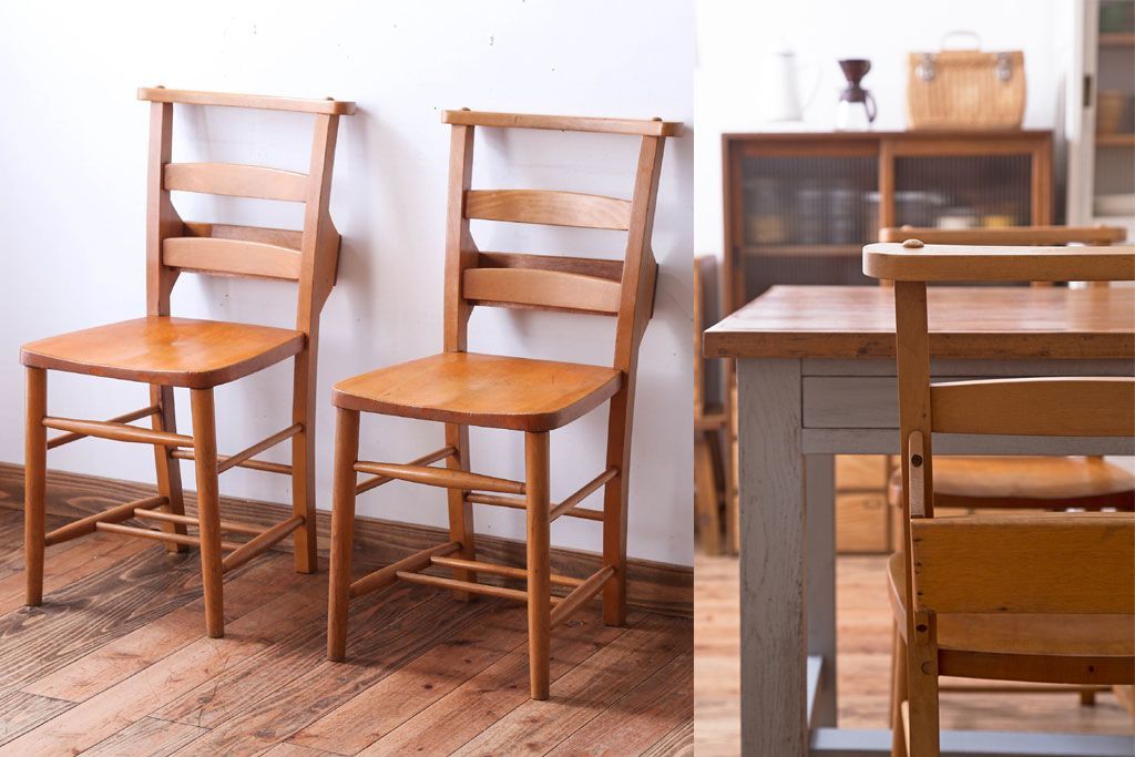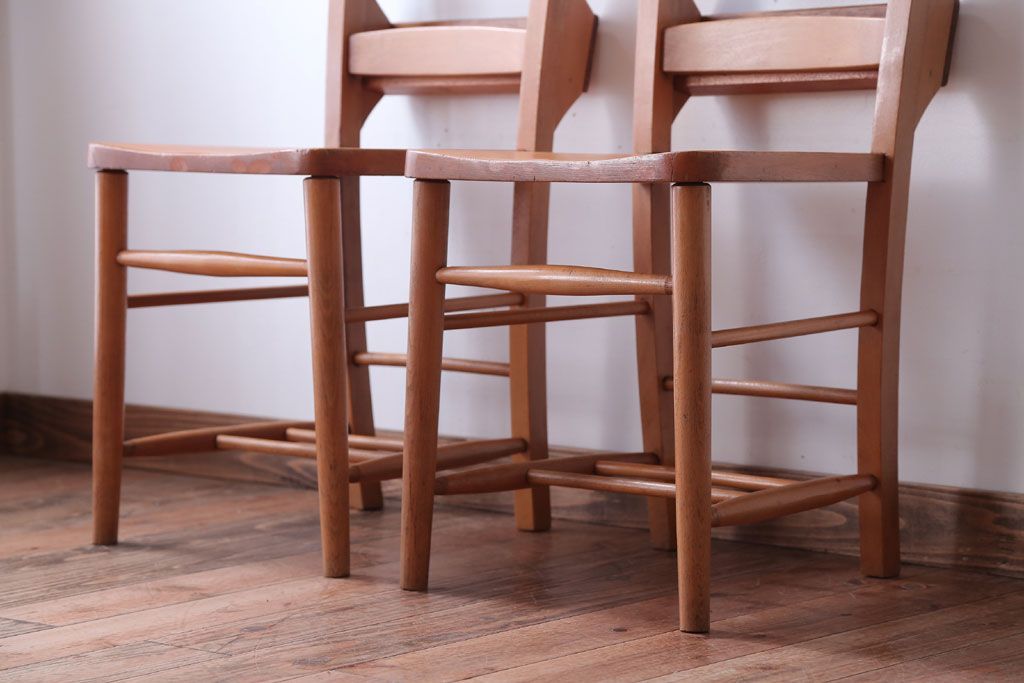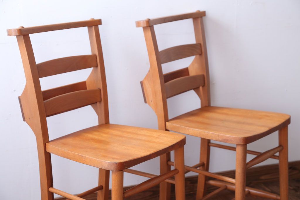 アンティーク家具 イギリスアンティーク ビーチ材のチャーチチェア2脚セット(チャペルチェア)