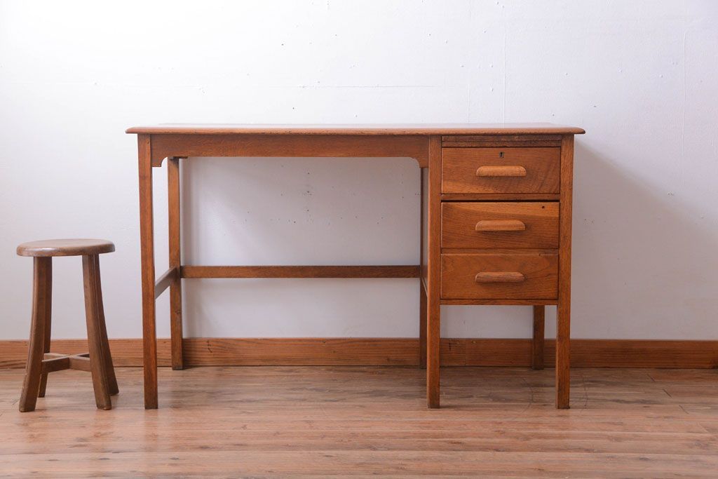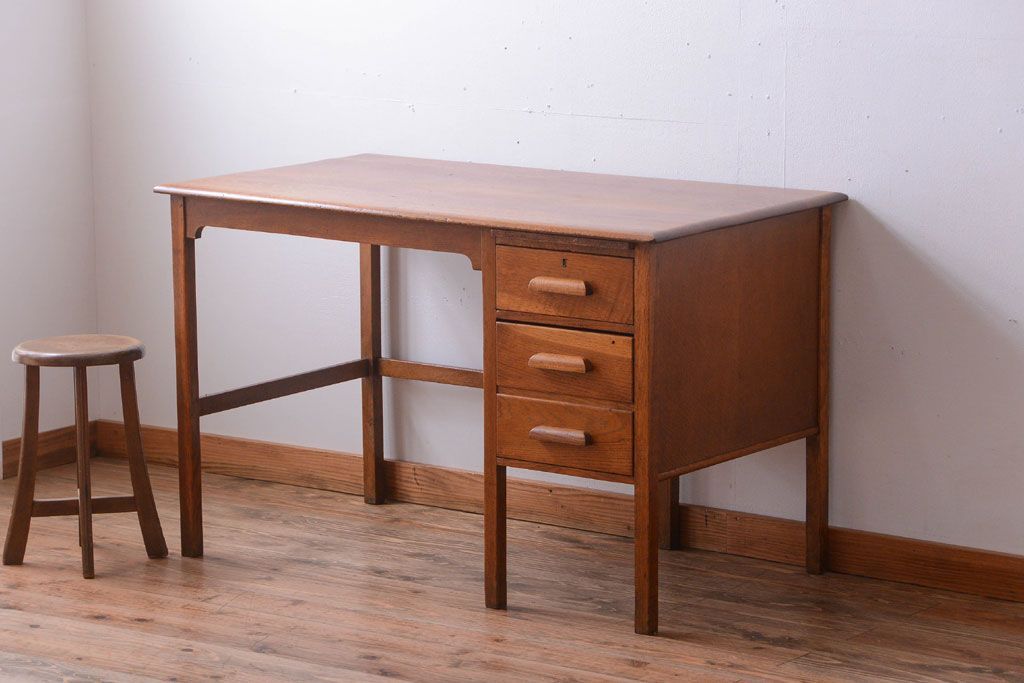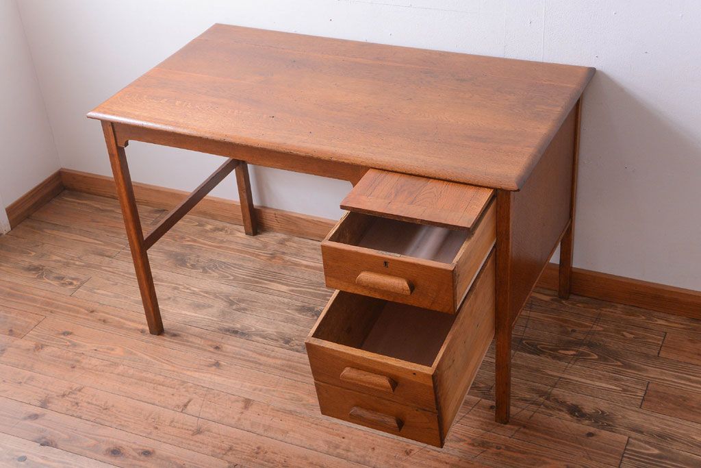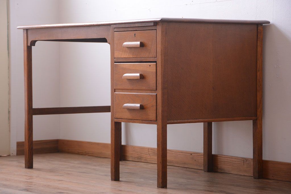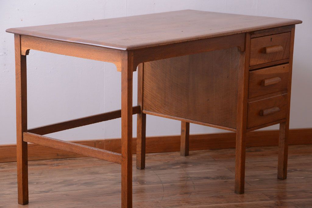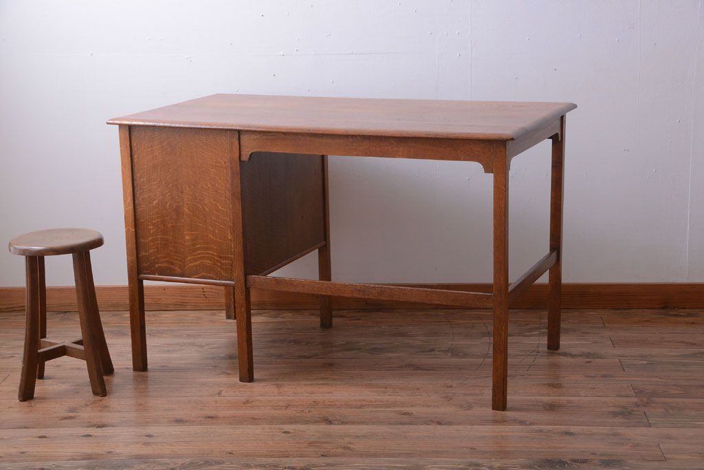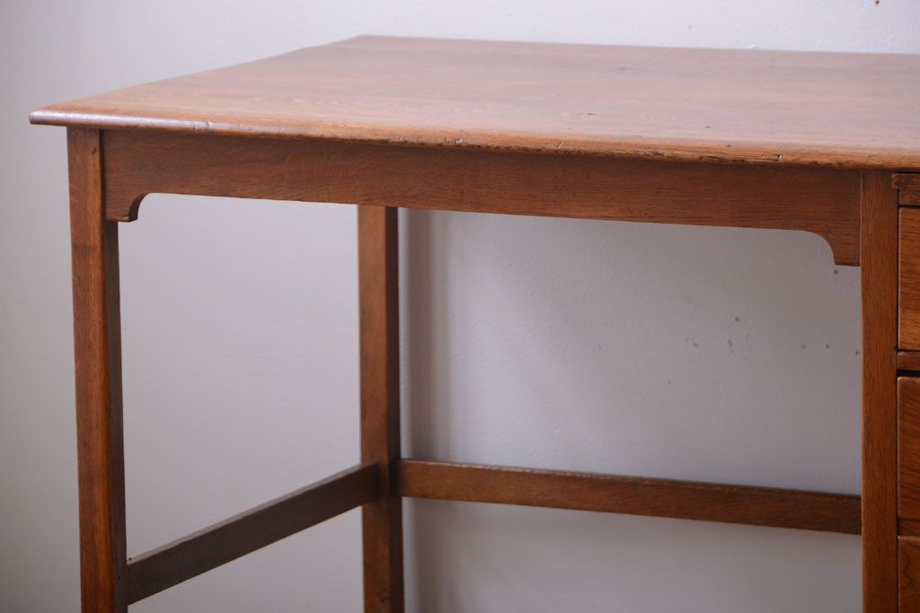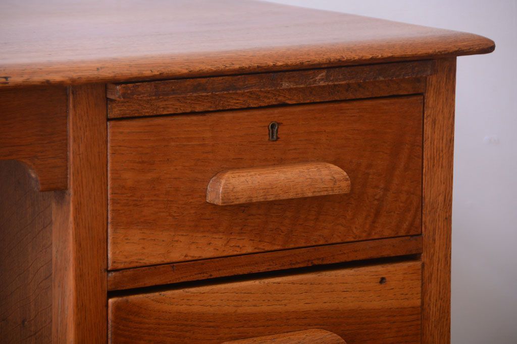 アンティーク家具 イギリスアンティーク 上品なナラ材の片袖机(デスク)