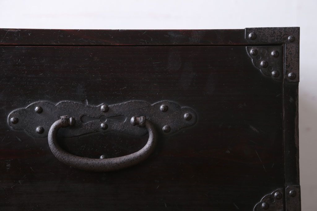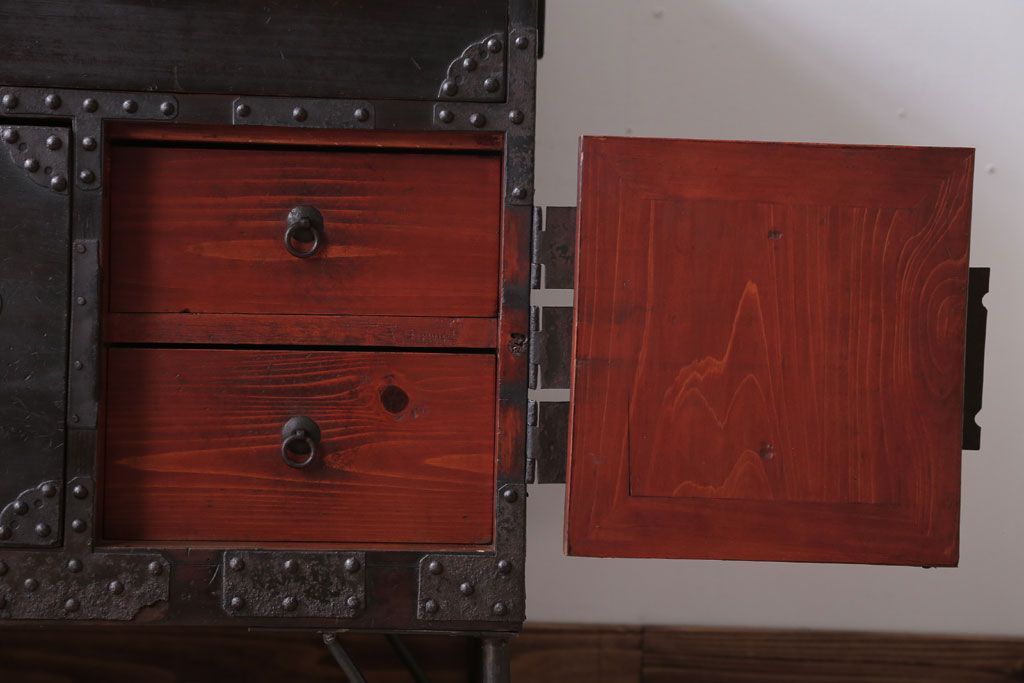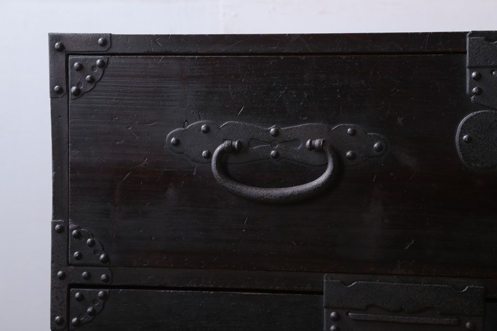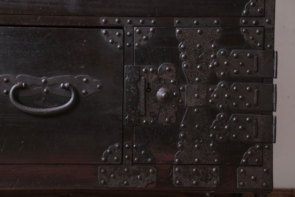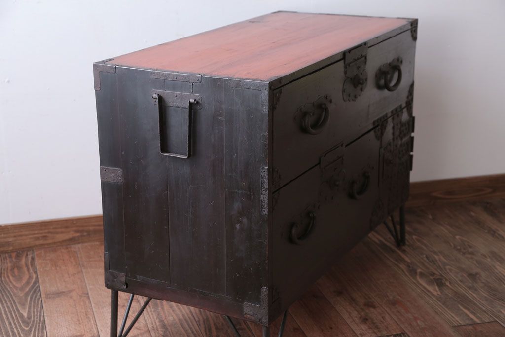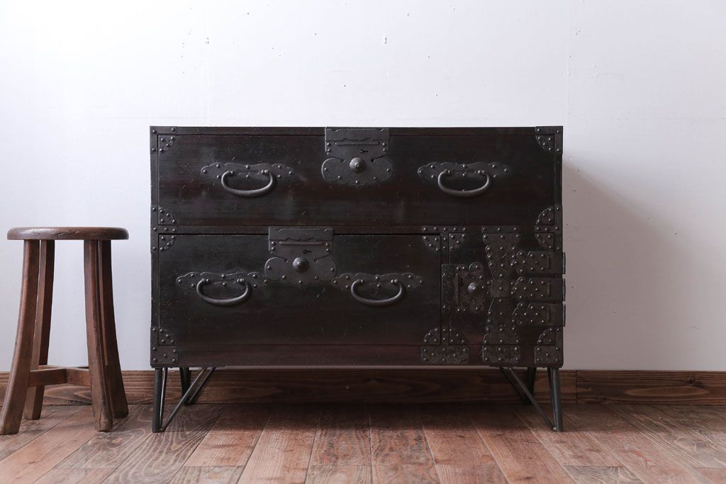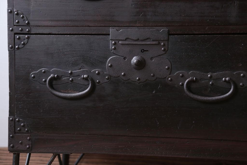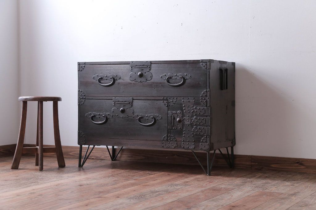 アンティーク家具 アンティーク 鉄脚付き!重厚な金具の時代箪笥ローボード(1)
