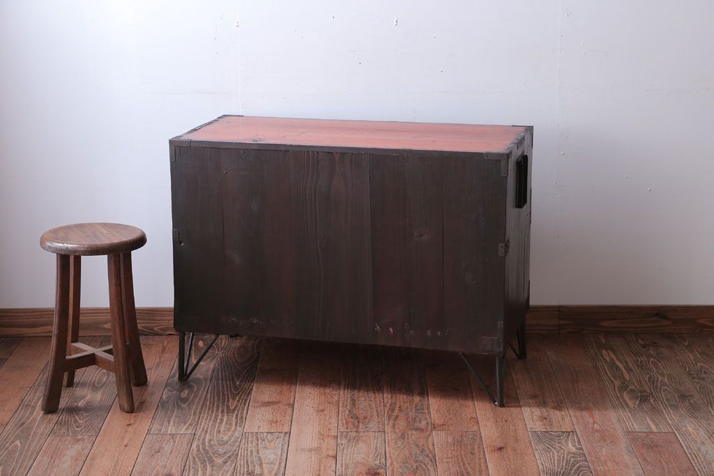 ラフジュ工房> キャビネット・戸棚> テレビ台・ローボード > アンティーク家具 アンティーク 鉄脚付き!重厚な金具の時代箪笥ローボード(1)