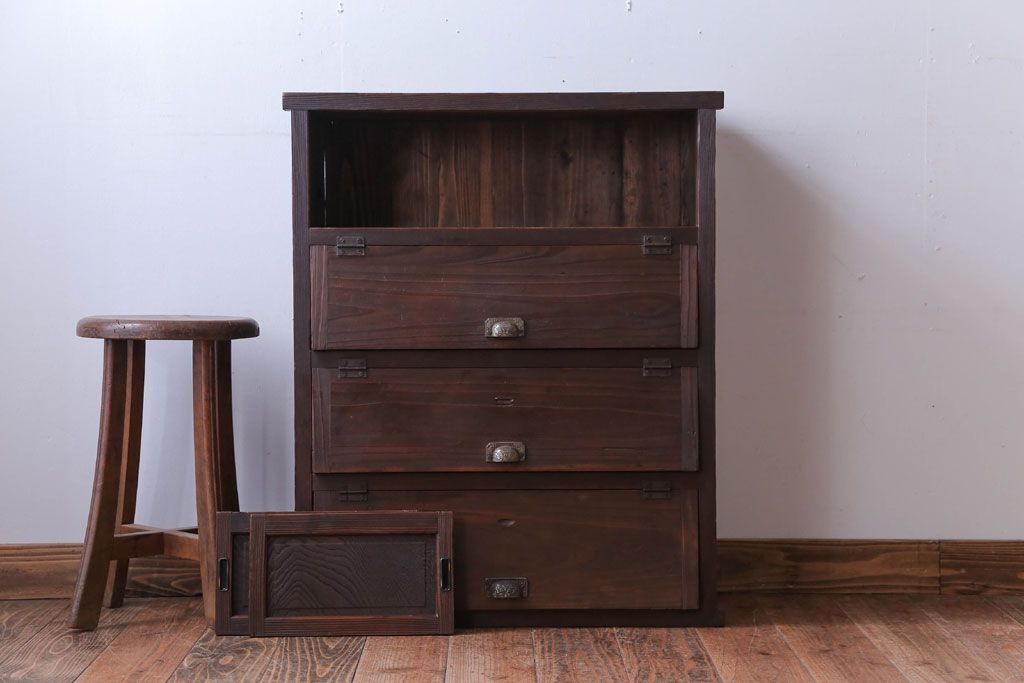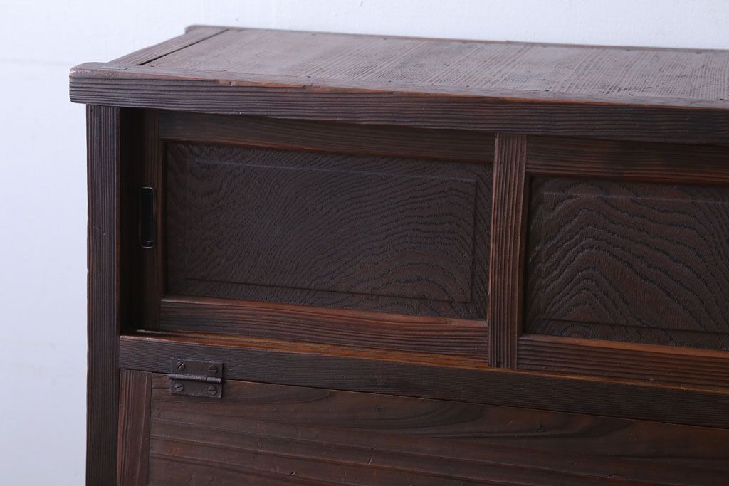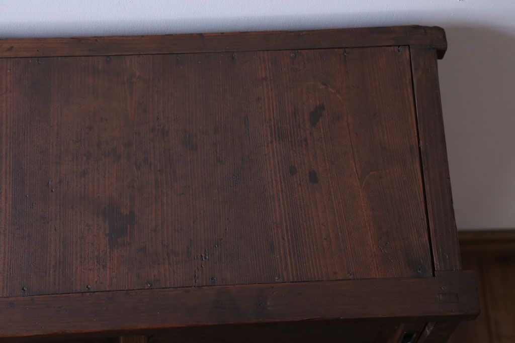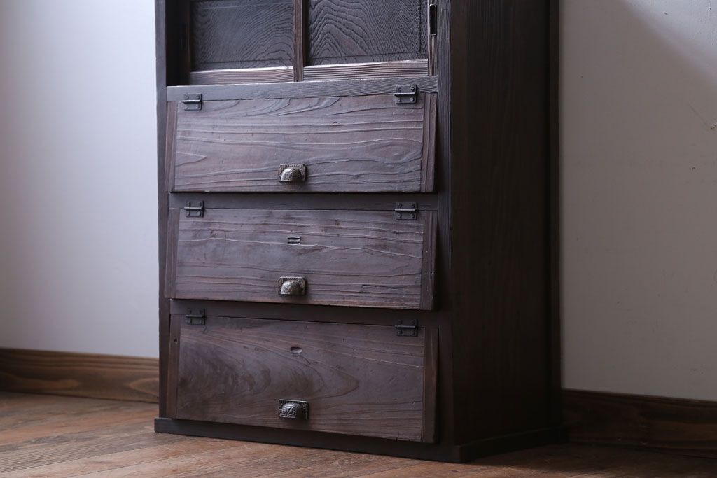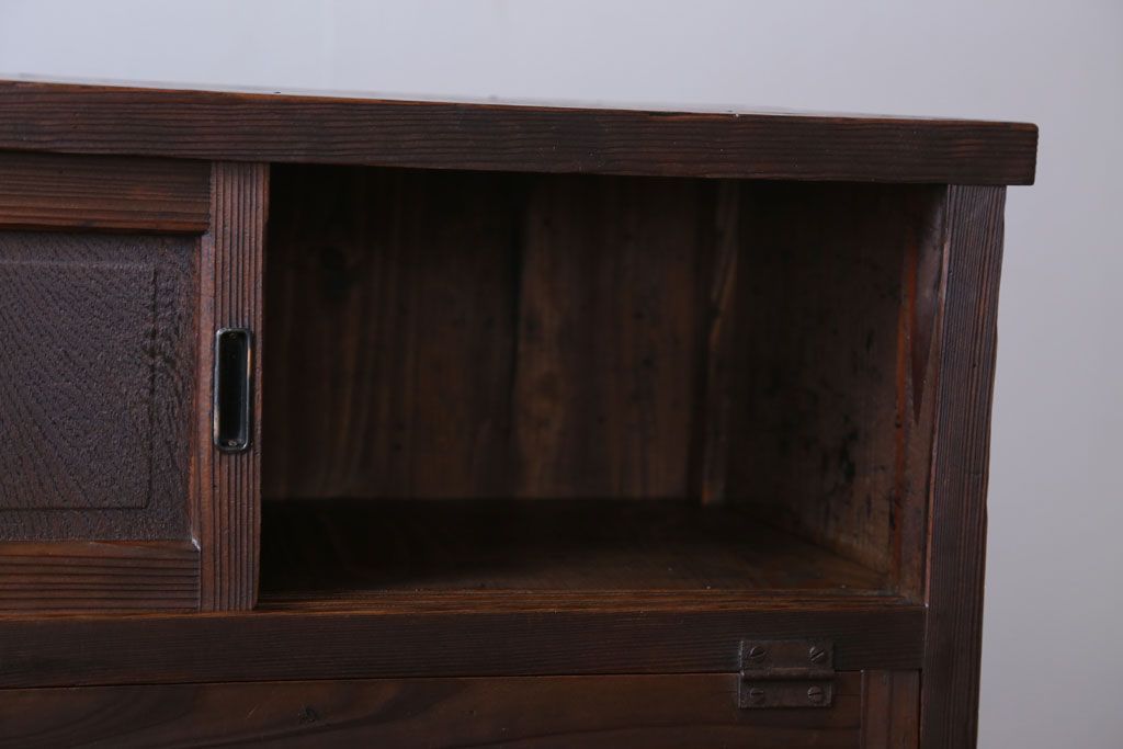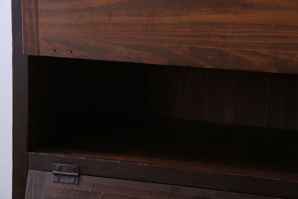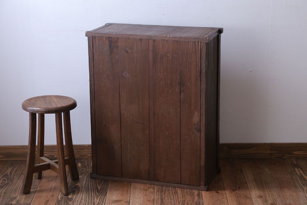 レトロ家具 昭和レトロ 古い木の小ぶりなパタパタ収納棚(下駄箱)