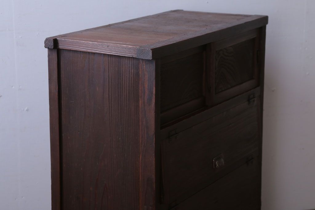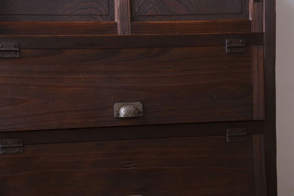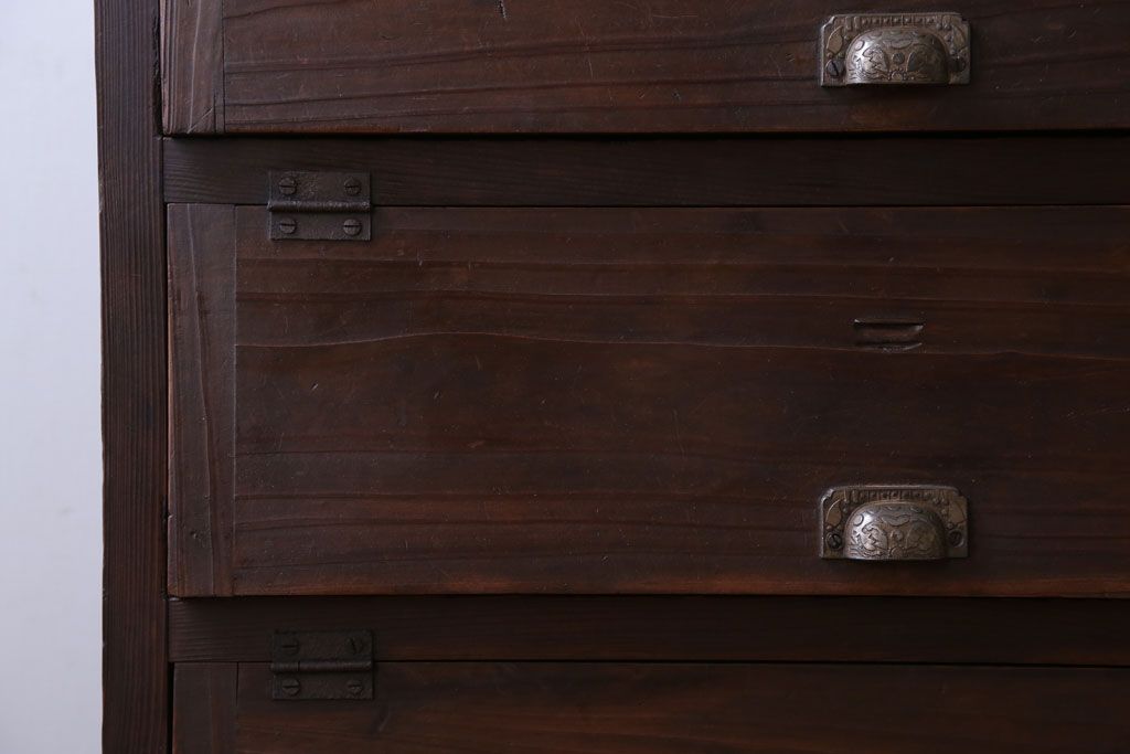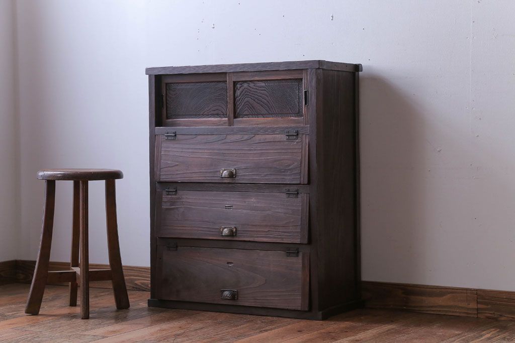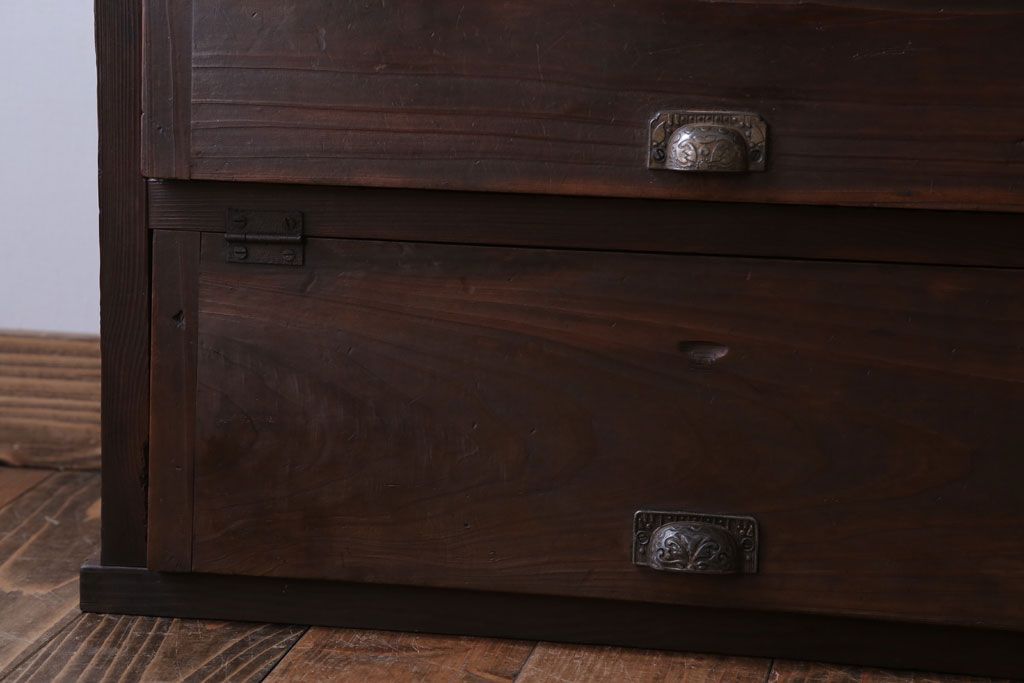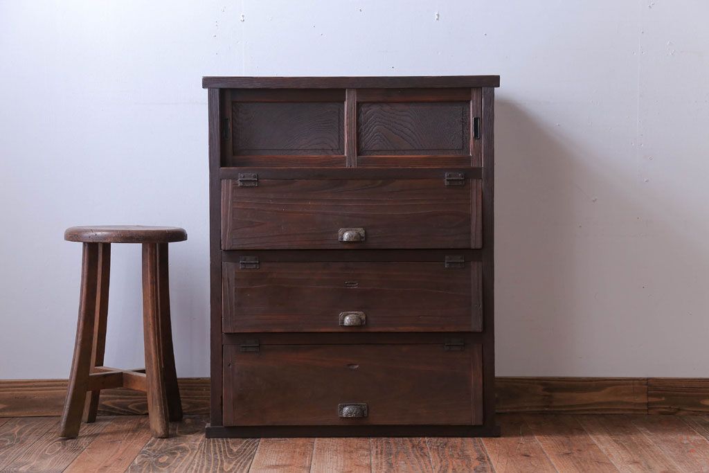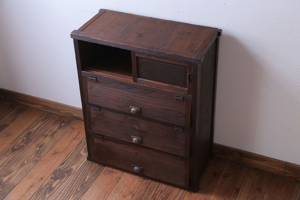 レトロ家具 昭和レトロ 古い木の小ぶりなパタパタ収納棚(下駄箱)