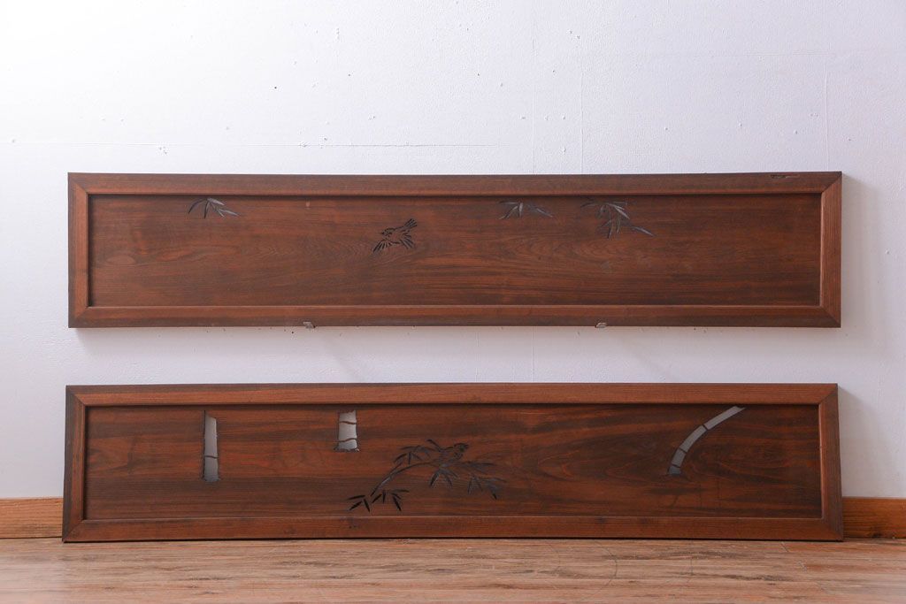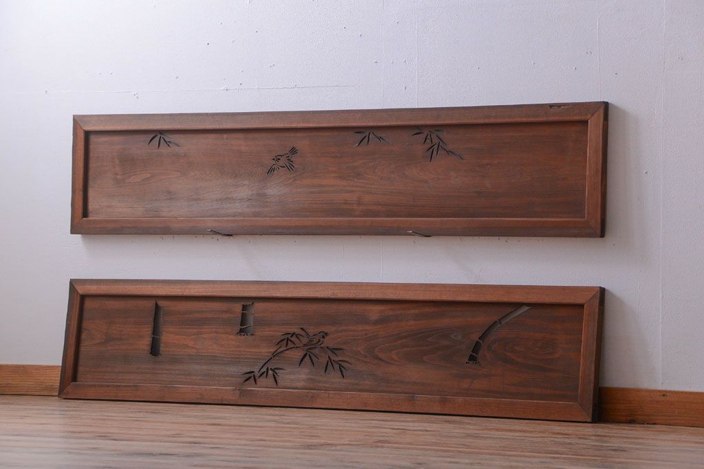 古民具・骨董 趣溢れる透かし彫りのアンティーク欄間2枚セット