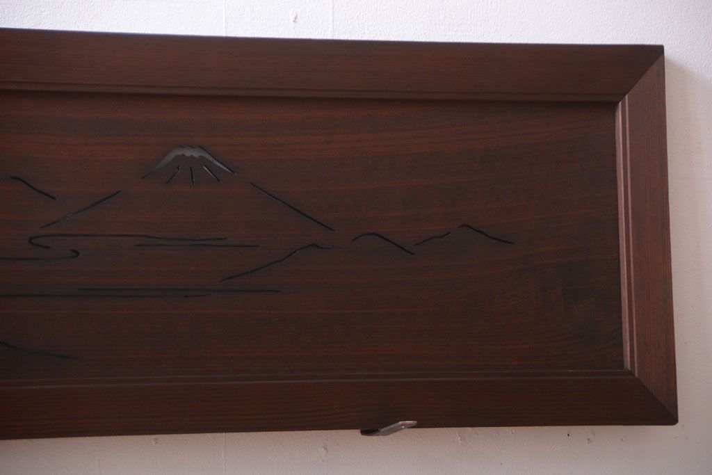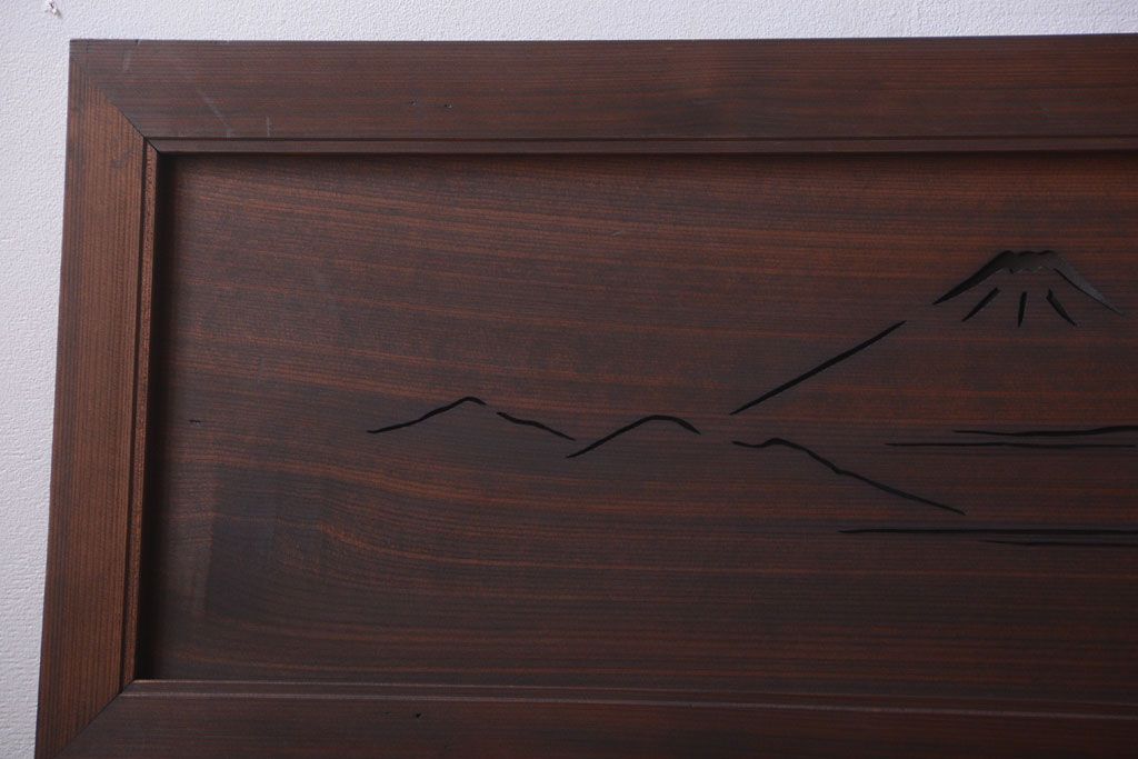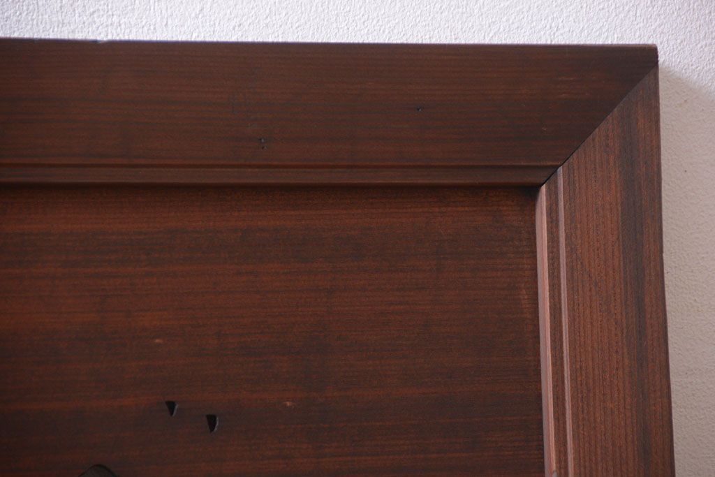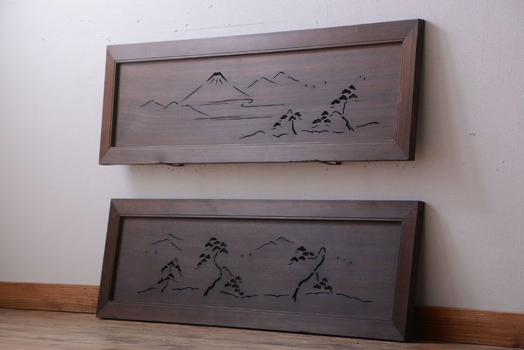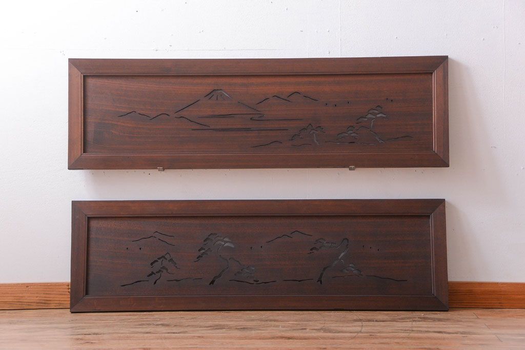 ----※ご注意ください※-------------------------------------- こちらの商品は、玄関先でのお渡しとなります。 また、お届けの際のお日にち指定・お時間指定・代金引換(コレクト)にも対応しておりません。 予めご了承ください。 ----------------------------------------------------------- 古民具・骨董 趣溢れる透かし彫りのアンティーク欄間2枚セット(2)です。 素朴な透かし彫りが風情を感じさせる、 和製アンティークの欄間です。 古い木の質感が味わい深い、 和風インテリアにぴったりのお品です。 壁掛けのディスプレイとしてもおすすめです。 本体の幅がわずかに違います。 使用上問題のあるダメージはありません。 ■本体の幅 1260〜1270mm ■重量 約2kg ■框サイズ 上55mm/下55mm/左50mm/右50mm