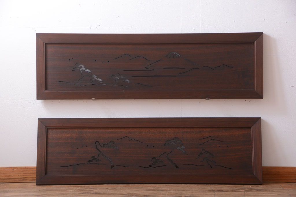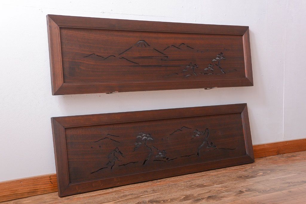 古民具・骨董 趣溢れる透かし彫りのアンティーク欄間2枚セット(2)