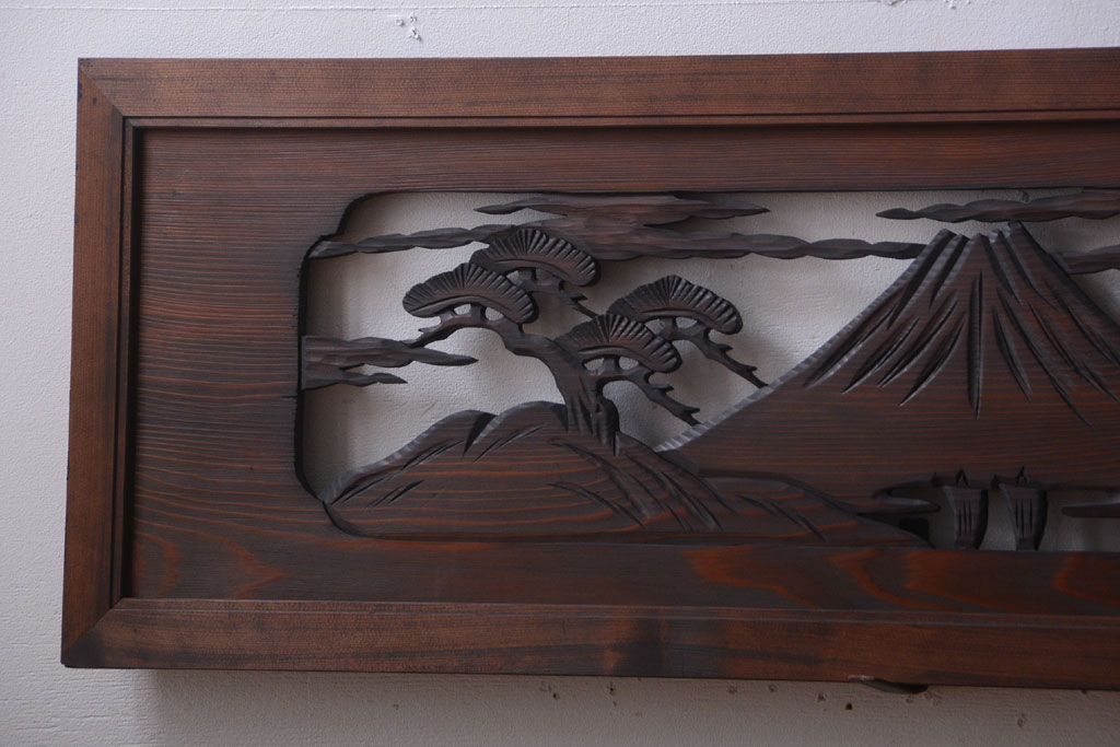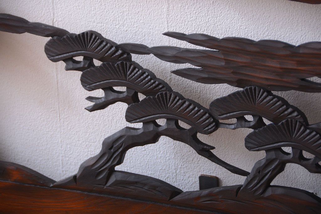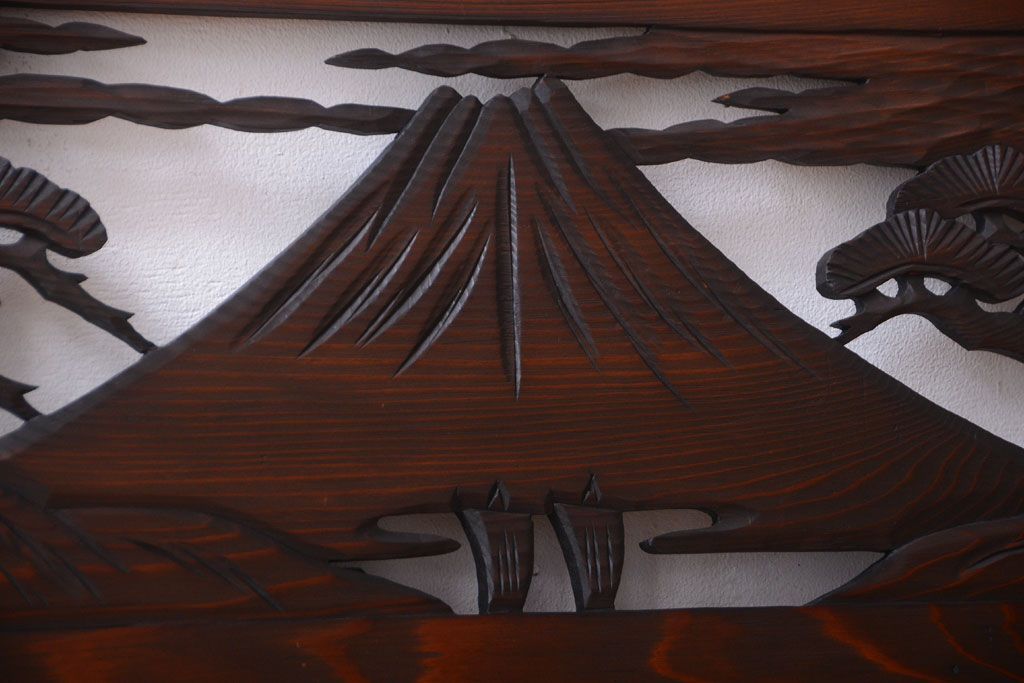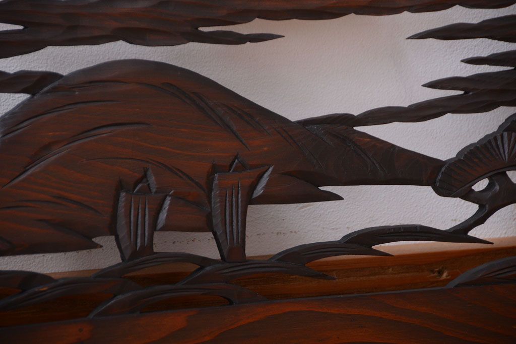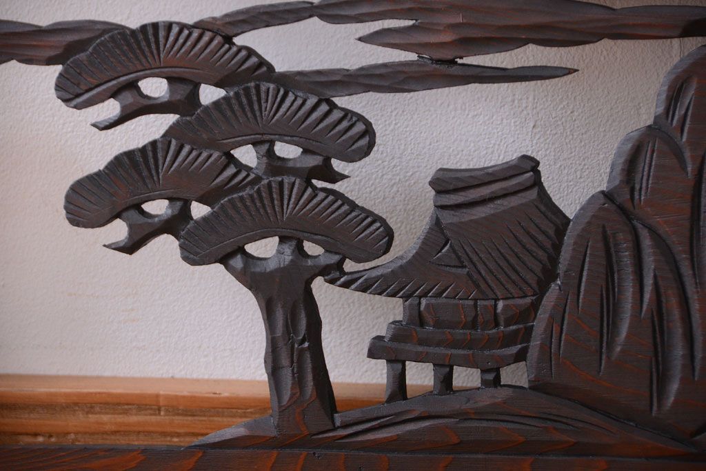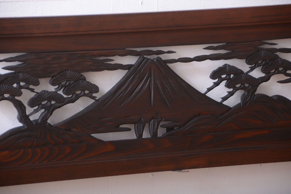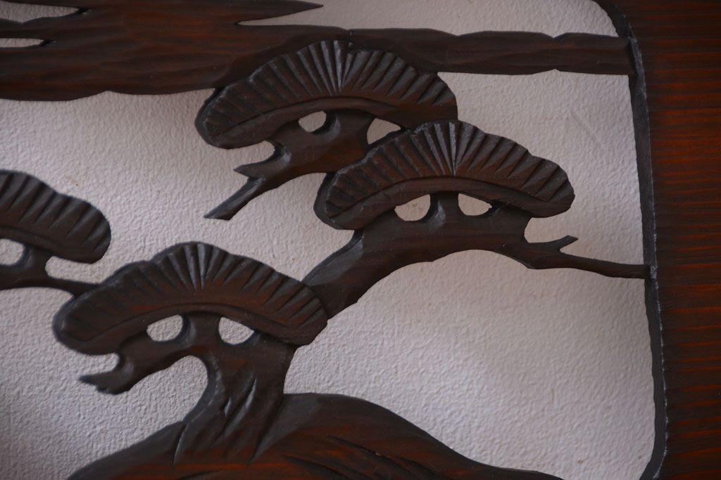 ----※ご注意ください※-------------------------------------- こちらの商品は、玄関先でのお渡しとなります。 また、お届けの際のお日にち指定・お時間指定・代金引換(コレクト)にも対応しておりません。 予めご了承ください。 ----------------------------------------------------------- 和製アンティーク 透かし彫りの欄間2枚セット(2)です。 和風なモチーフがふんだんに盛り込まれた、 透かし彫りが美しい、欄間2枚セットです。 和モダンスタイルのインテリアの、 壁掛けディスプレイとしてもおすすめの一品です。 本体の幅がわずかに違います。 使用上問題のあるダメージはありません。 ■本体の幅 1705〜1715mm ■重量 約3kg ■框サイズ 上40mm/下40mm/左40mm/右40mm