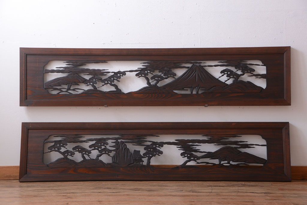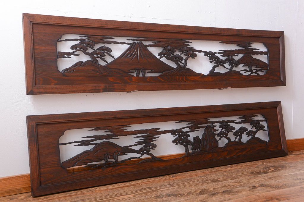 和製アンティーク 透かし彫りの欄間2枚セット(2)