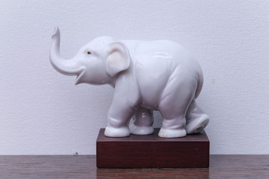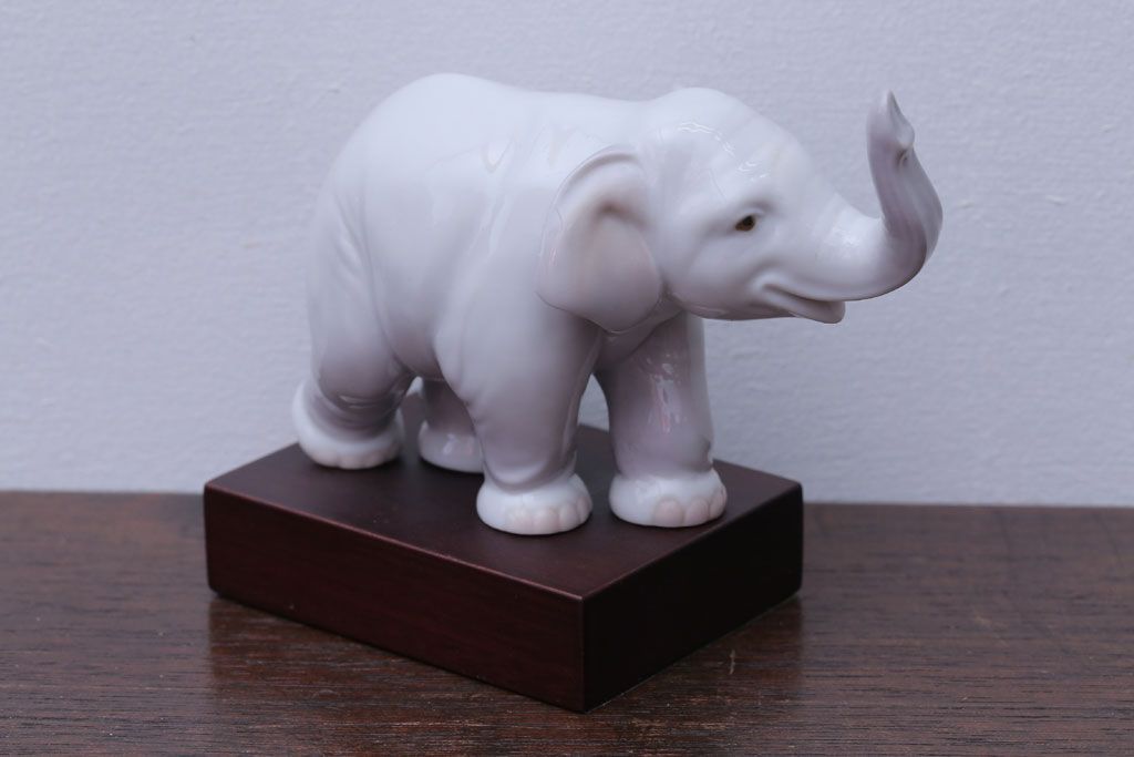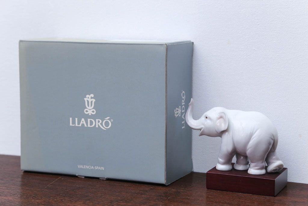 アンティーク雑貨 美品・リヤドロ(LLADRO)象の置物(幸運のゾウ/ラッキーエレファント)・箱付き