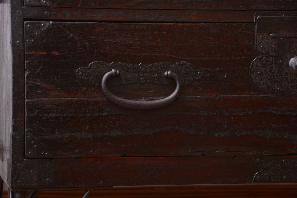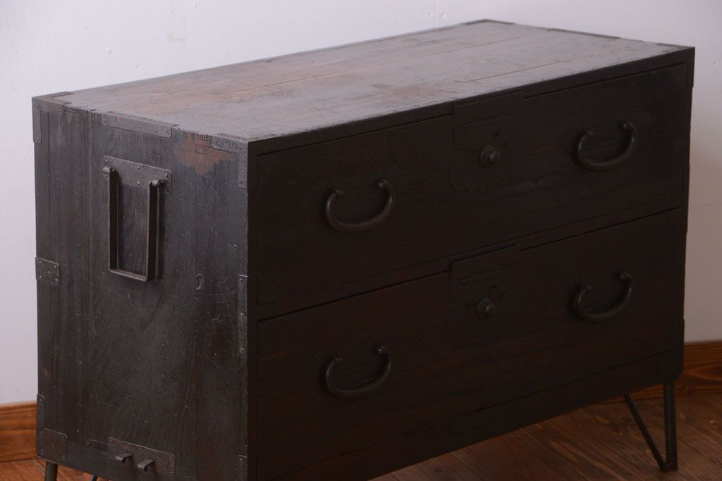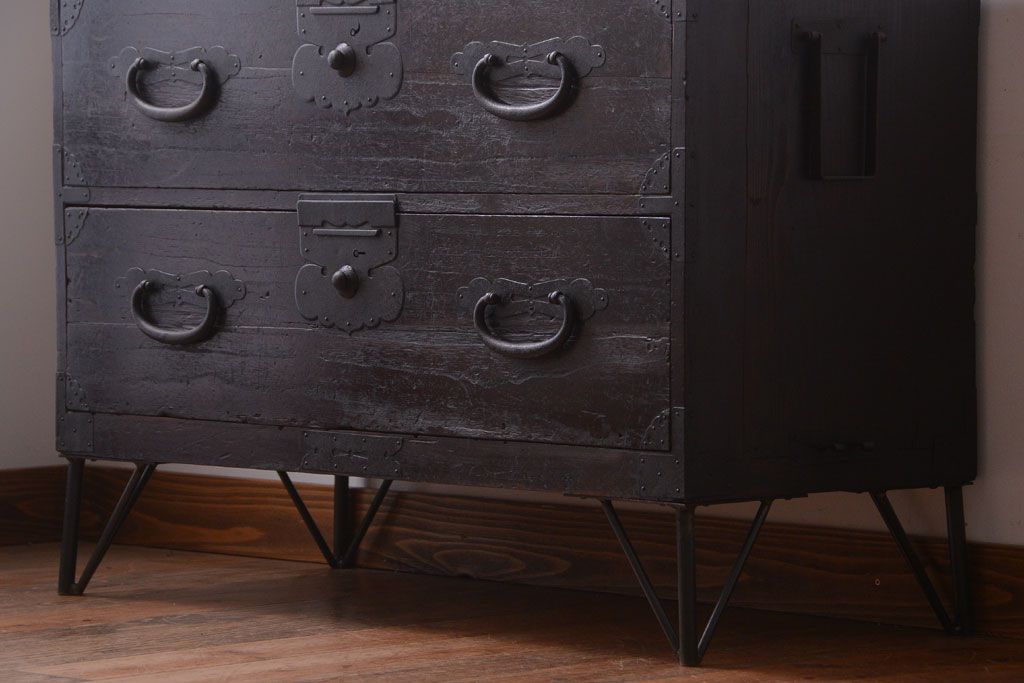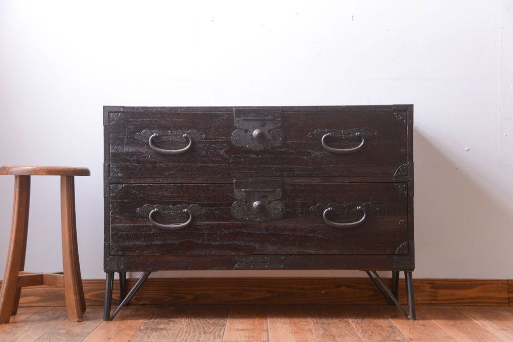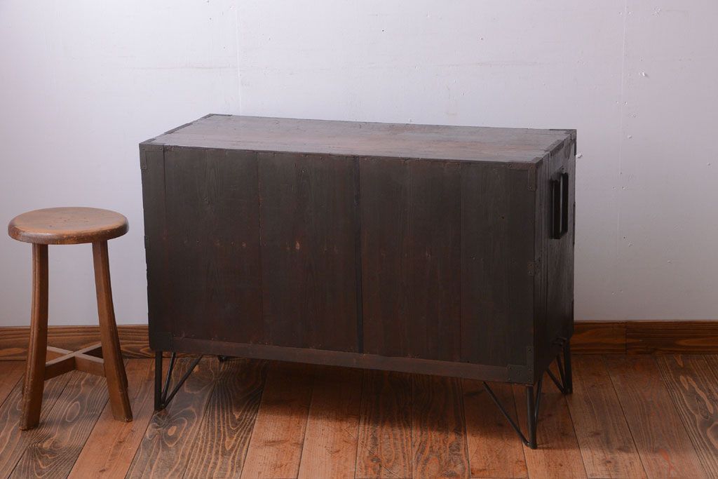 アンティーク家具 アンティーク 古い木の質感が味わい深い、鉄脚付き時代箪笥ローボード(1)