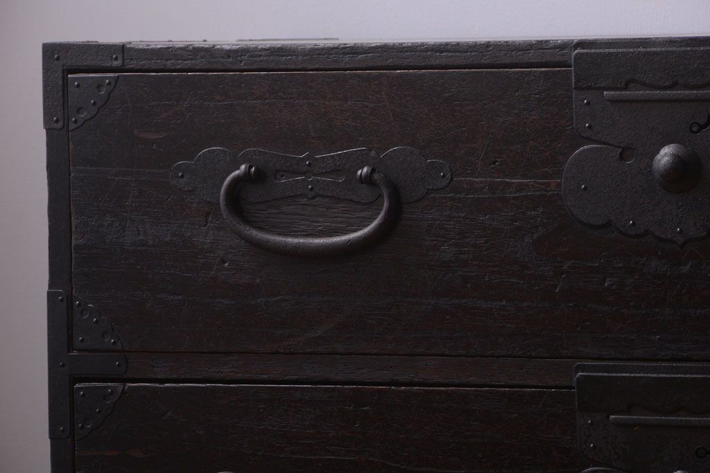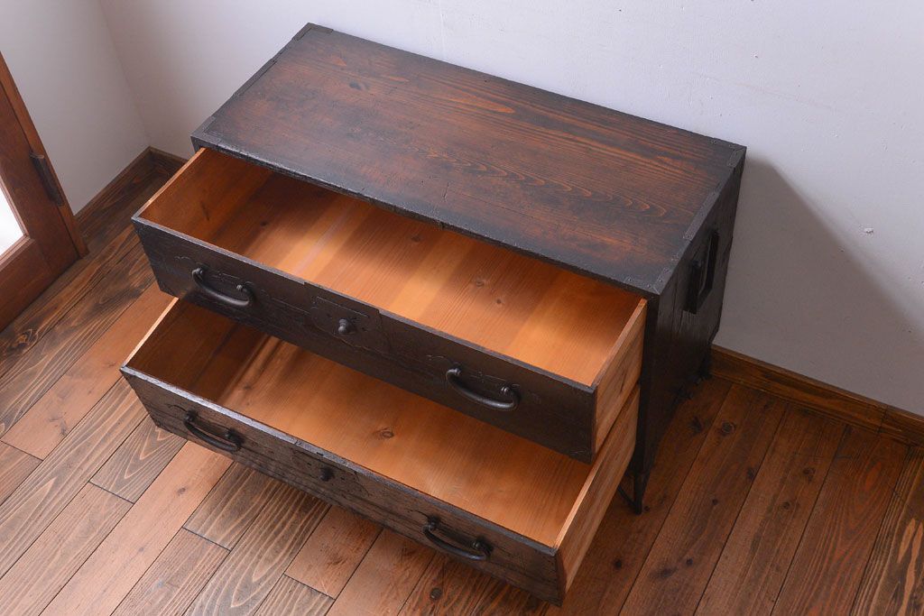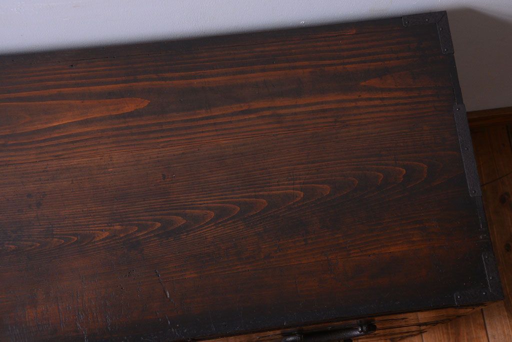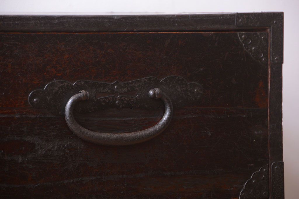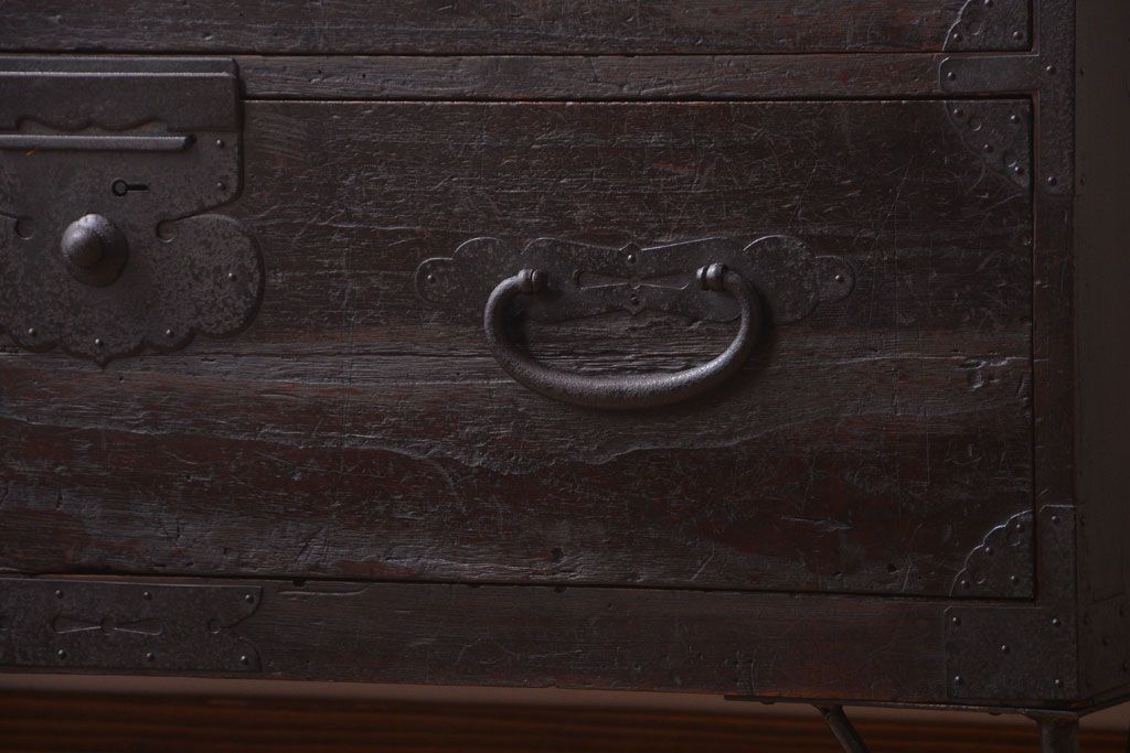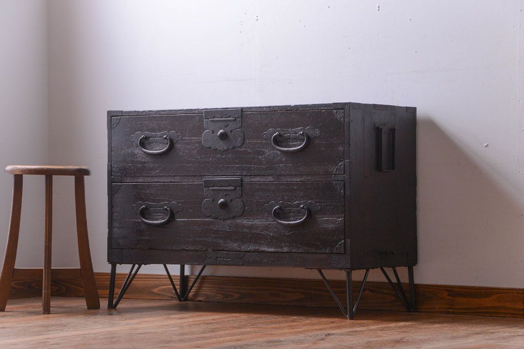 アンティーク家具 アンティーク 古い木の質感が味わい深い、鉄脚付き時代箪笥ローボード(1)