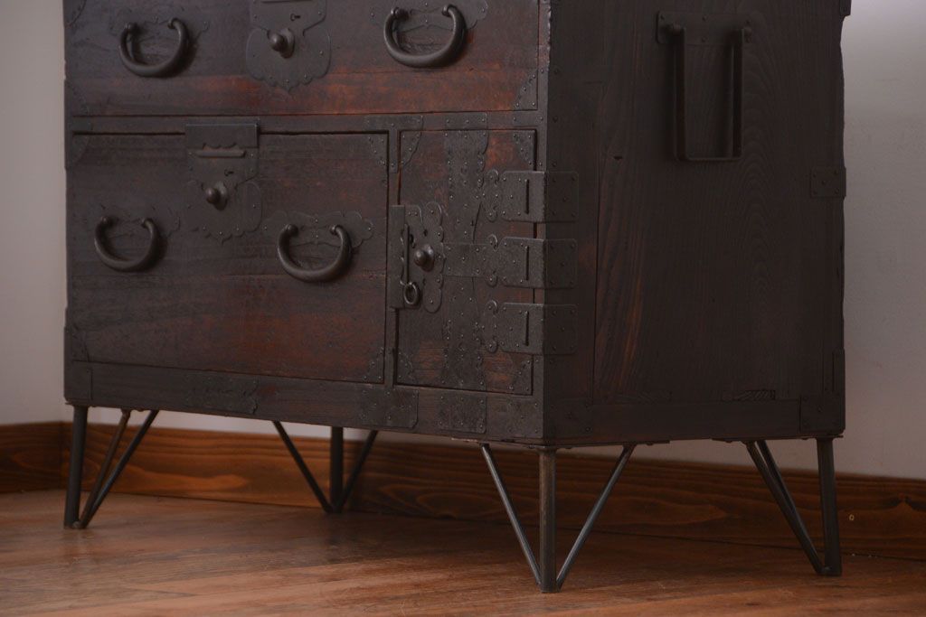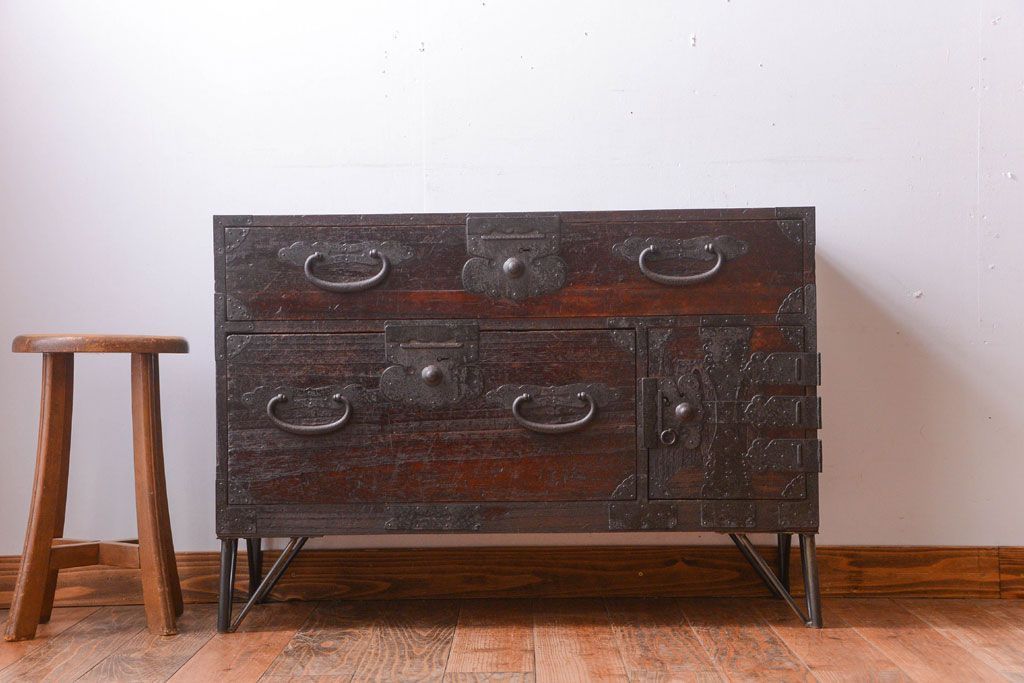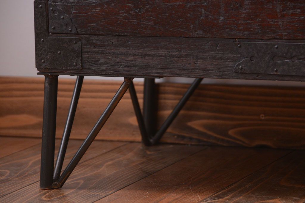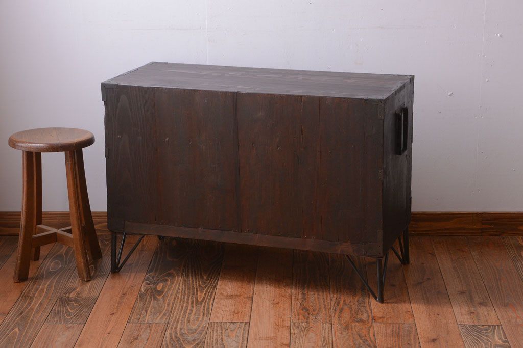 アンティーク家具 アンティーク 古い木の質感が味わい深い鉄脚付き時代箪笥ローボード(2)
