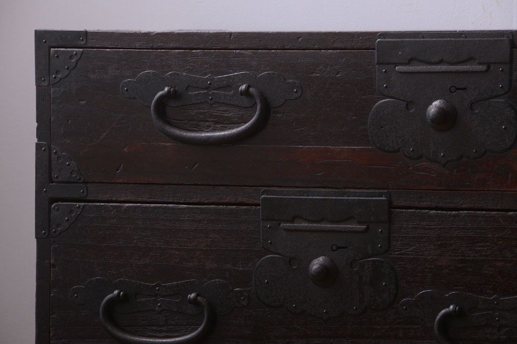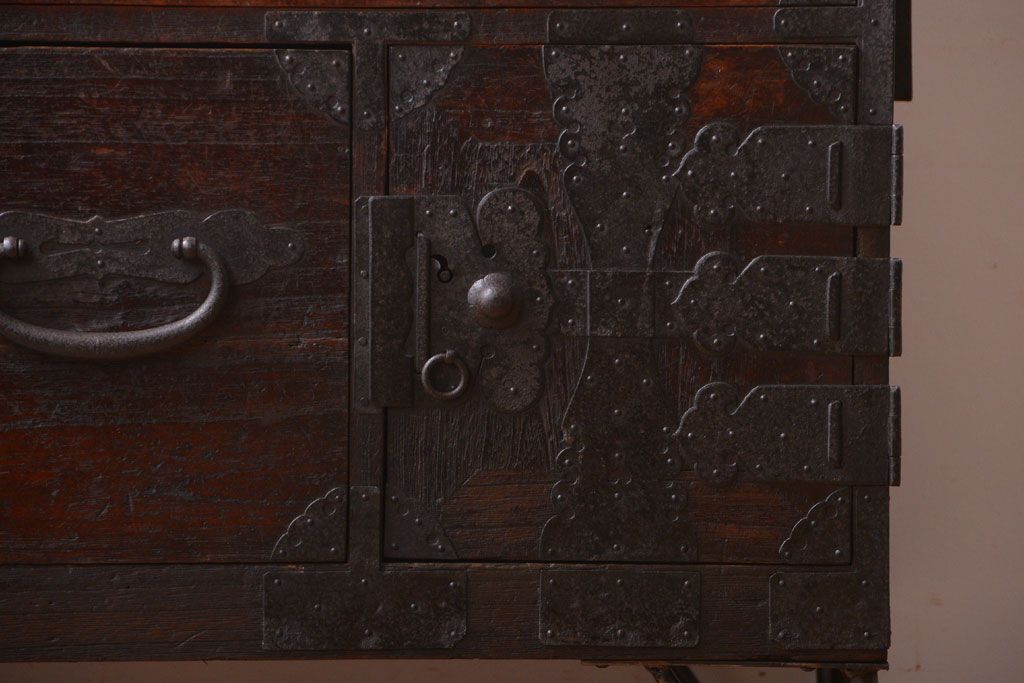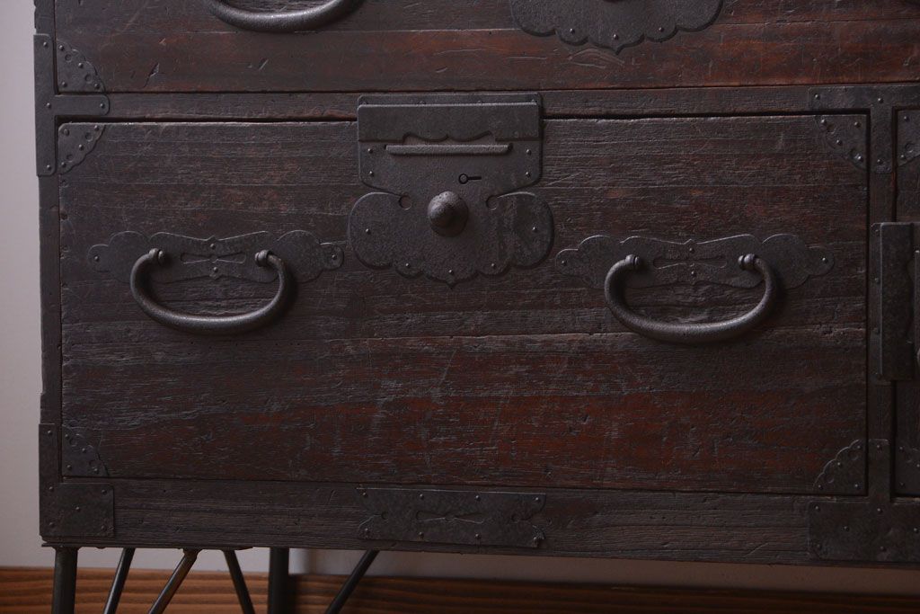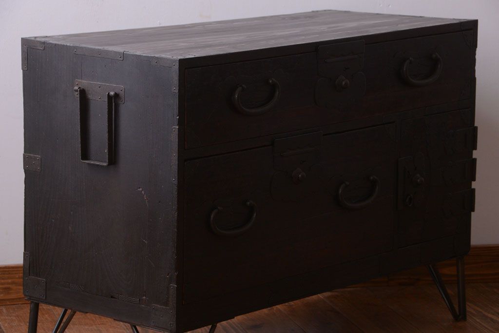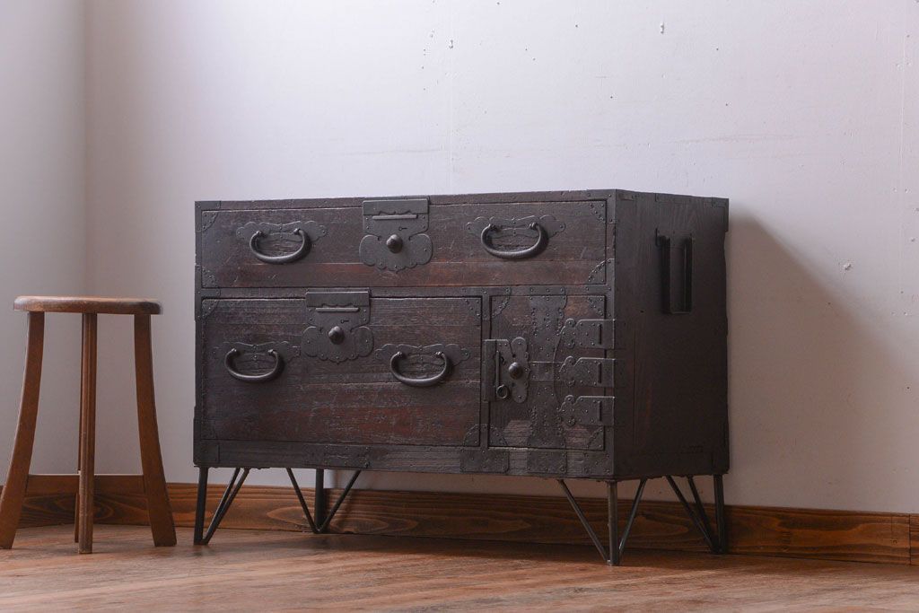 アンティーク家具 アンティーク 古い木の質感が味わい深い鉄脚付き時代箪笥ローボード(2)