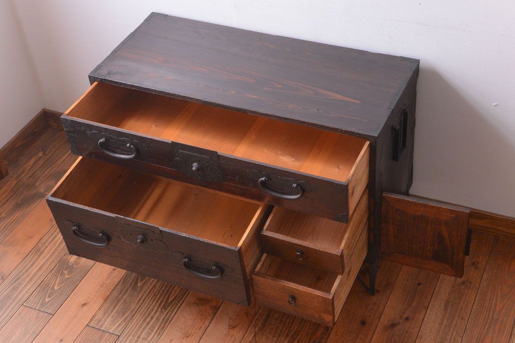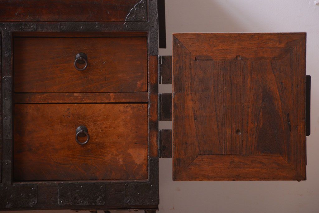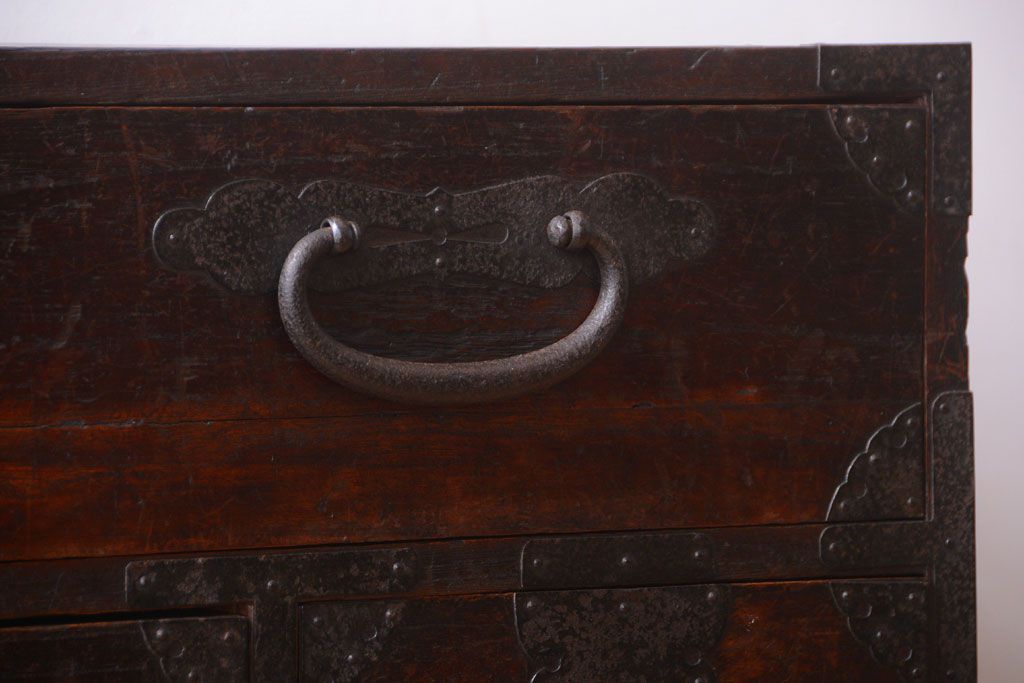 ラフジュ工房> 和箪笥 > アンティーク家具 アンティーク 古い木の質感が味わい深い鉄脚付き時代箪笥ローボード(2)