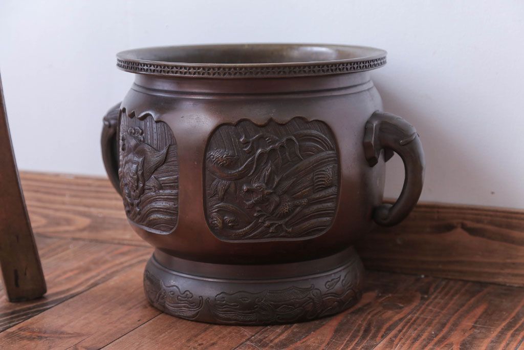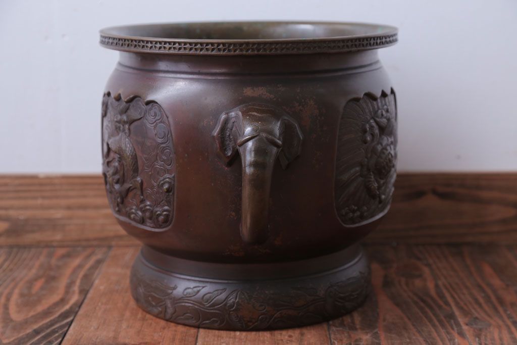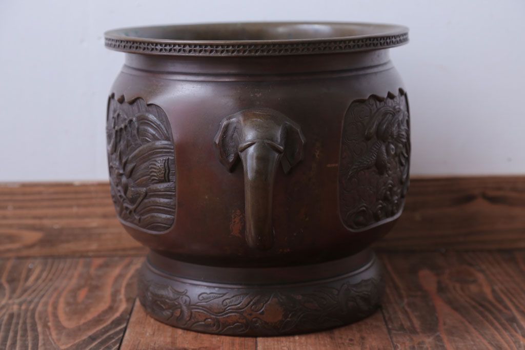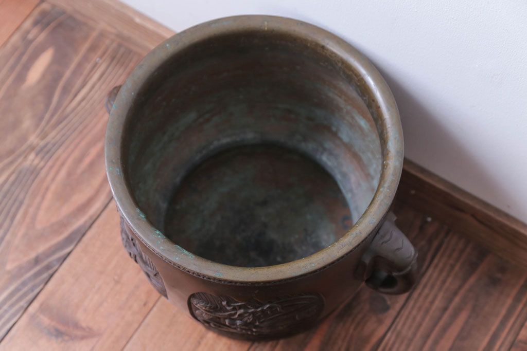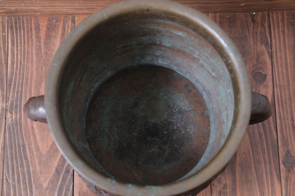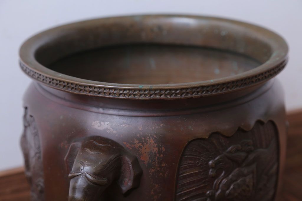 古民具・骨董 上手物!厚手の真鍮製高級アンティーク火鉢(3)です。