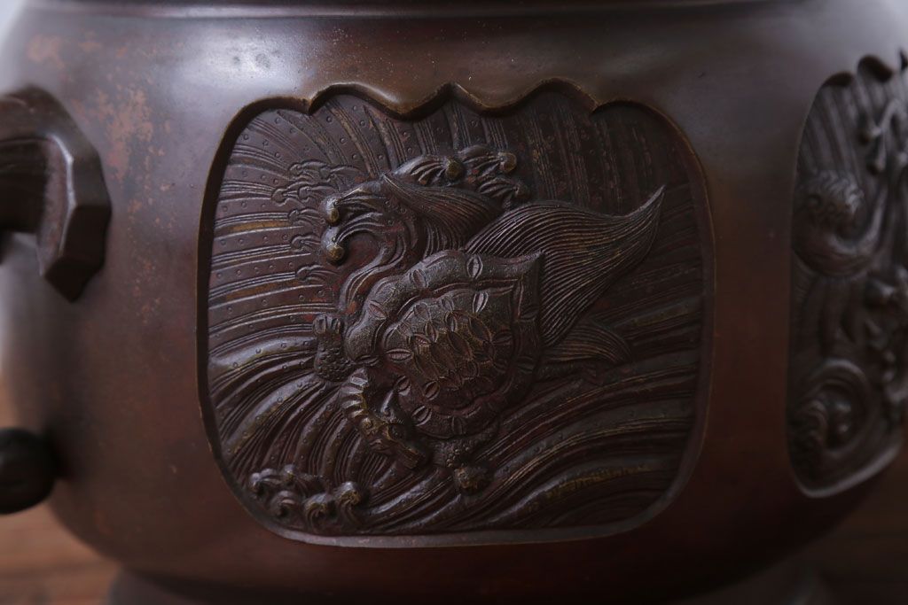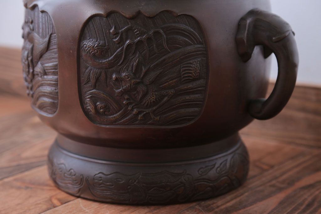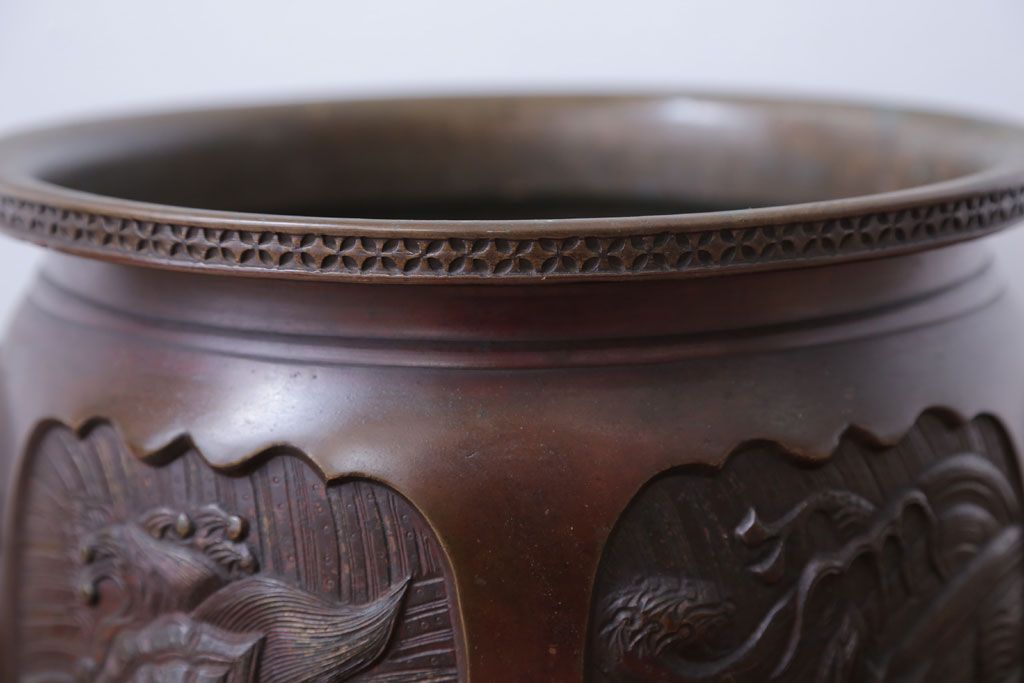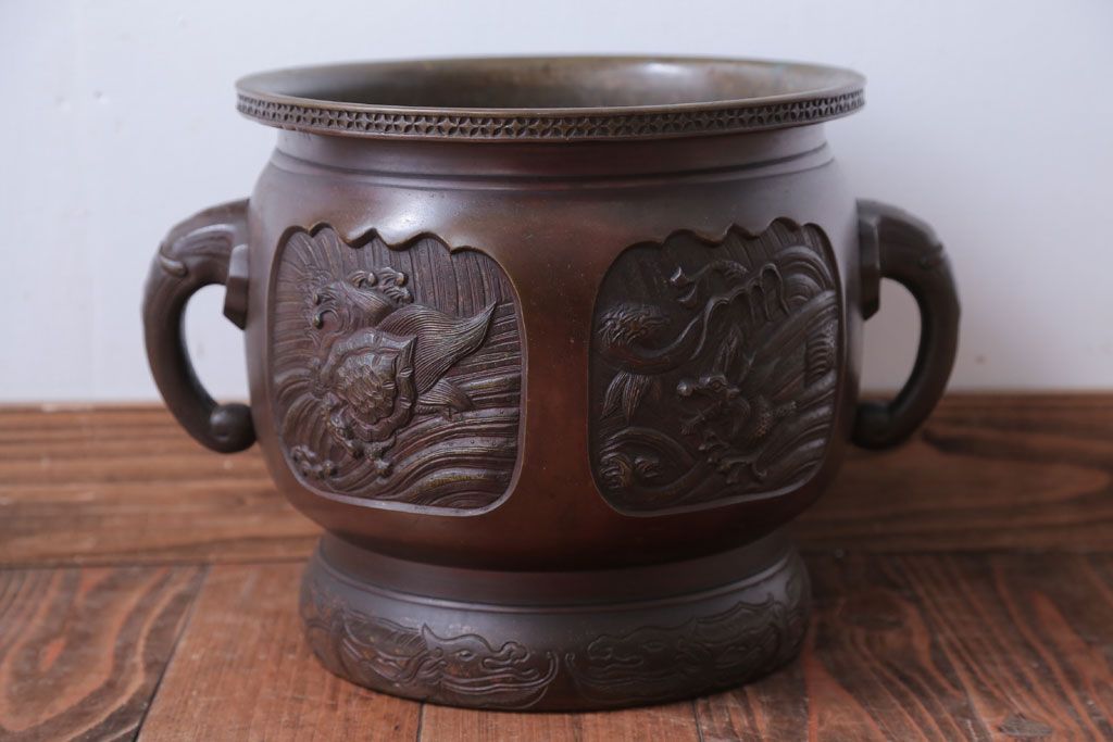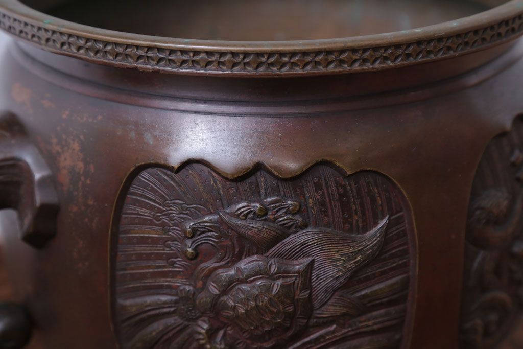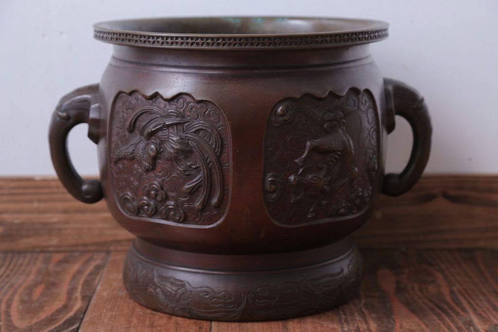 古民具・骨董 上手物!厚手の真鍮製高級アンティーク火鉢(3)です。