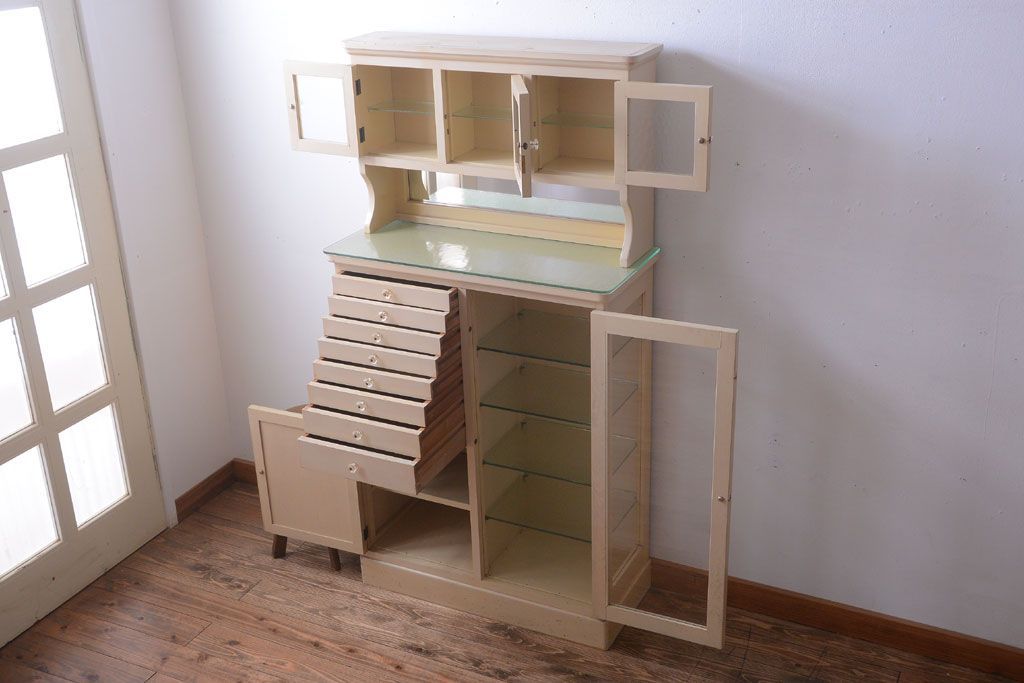 ラフジュ工房> 店舗什器 > アンティーク家具 アンティーク 清潔感のあるデンタルキャビネット(ケビント)