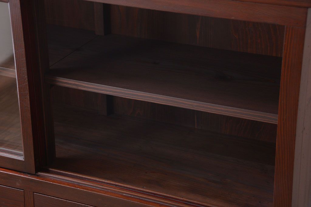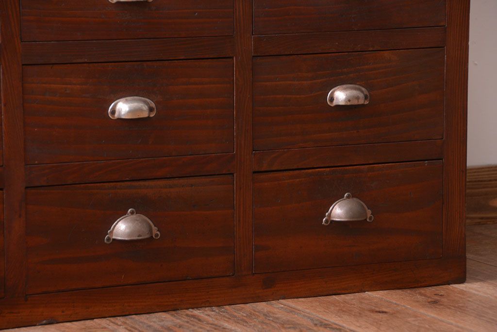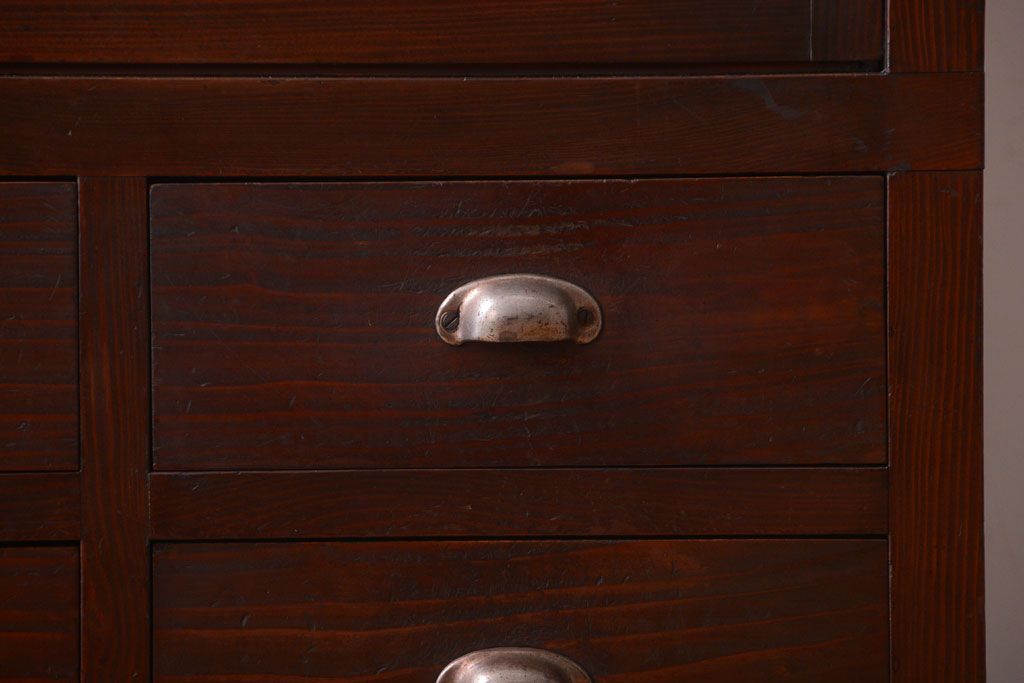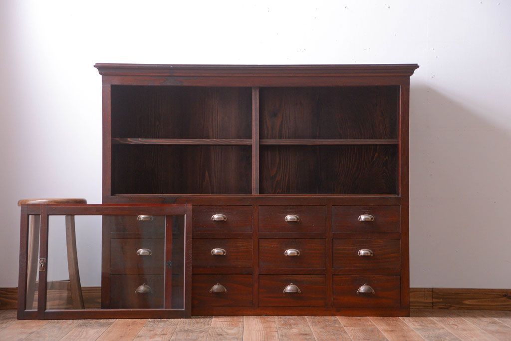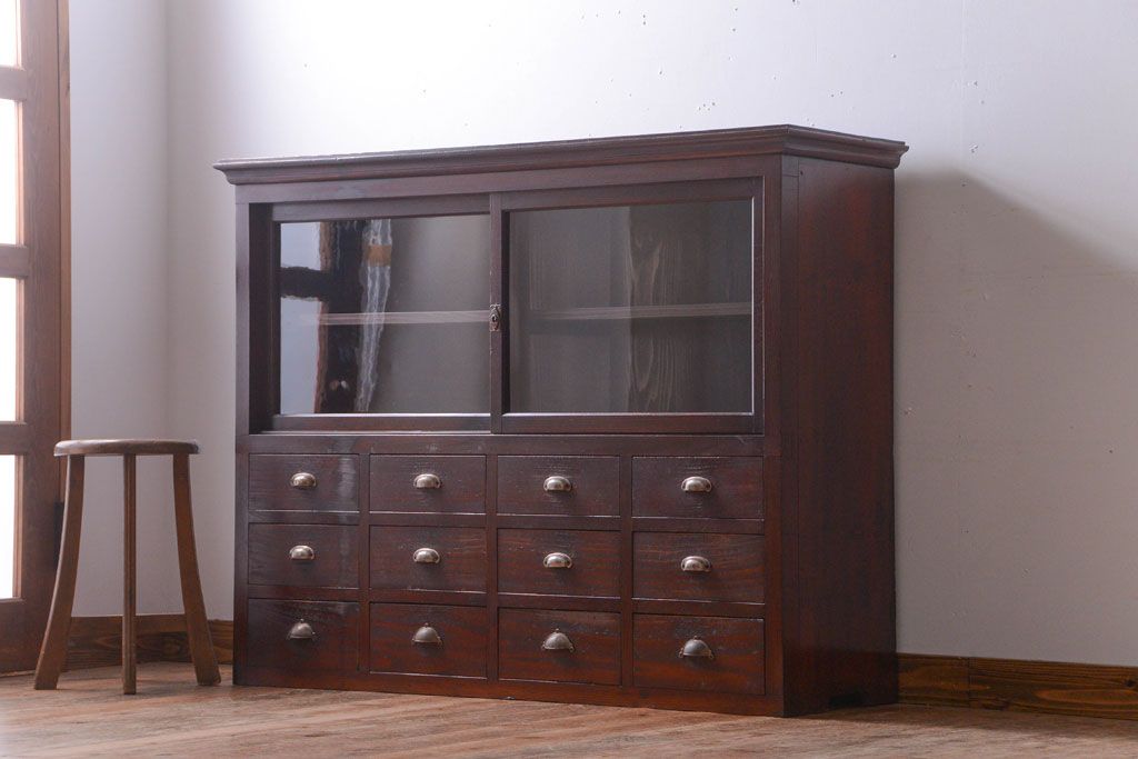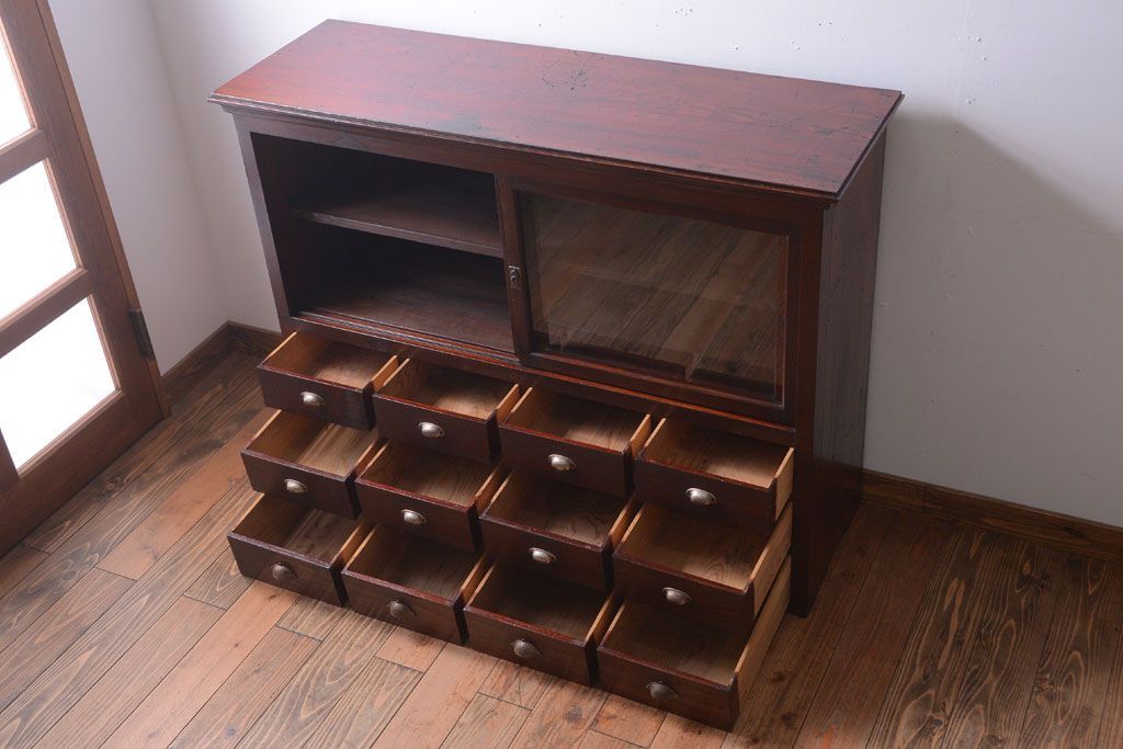 和製アンティーク 引き出し12杯付き!シックなガラス戸棚です。